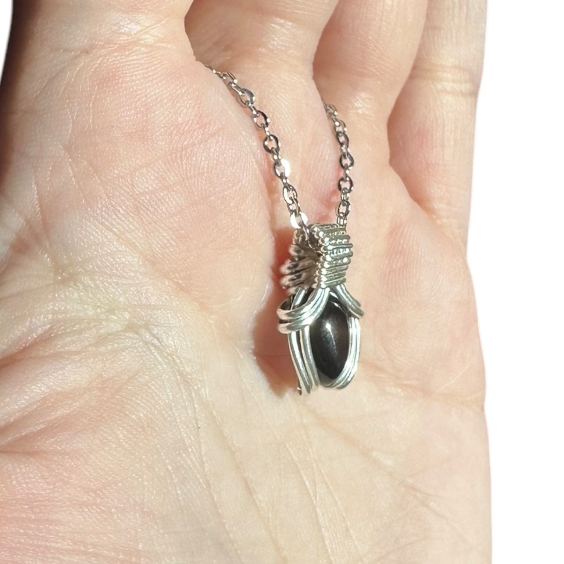 Sterling Silver | 14KT Gold Filled Mini Teardrop Onyx Wire Wrapped Wishbone 2.0 Pendant