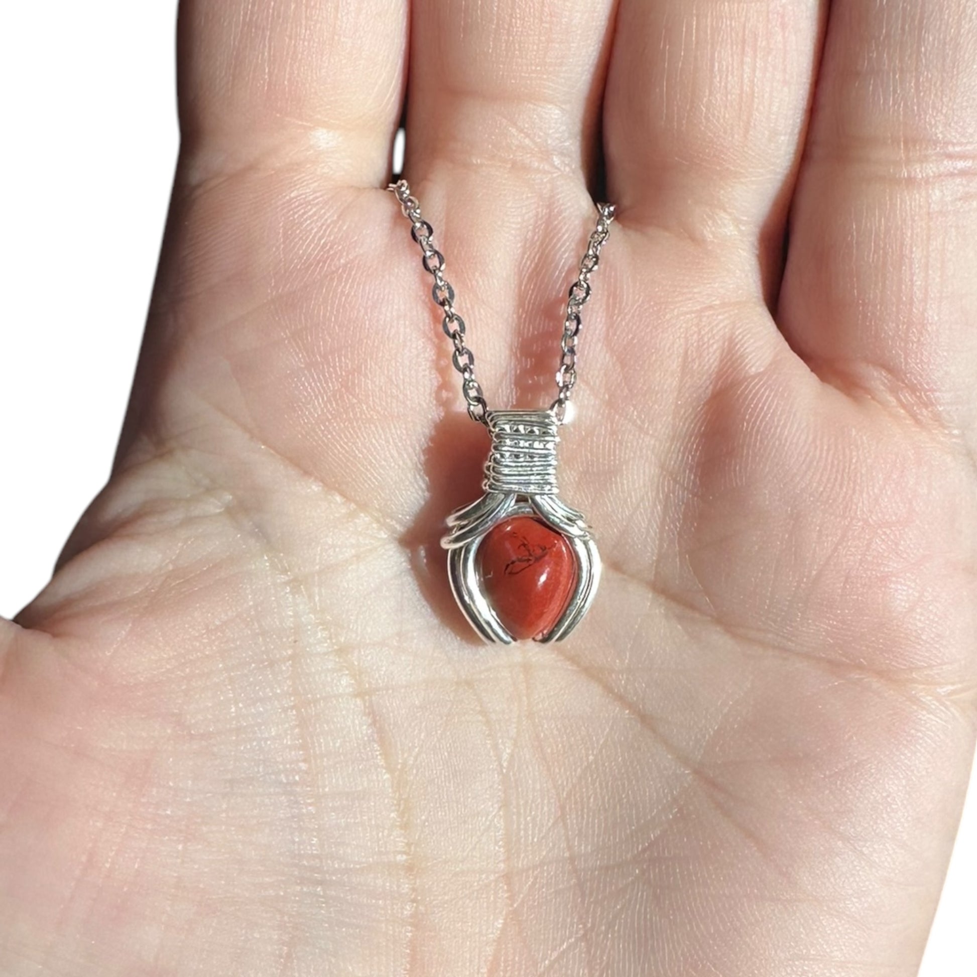 Sterling Silver | 14KT Gold Filled Mini Teardrop Red Jasper Wire Wrapped Wishbone 2.0 Pendant