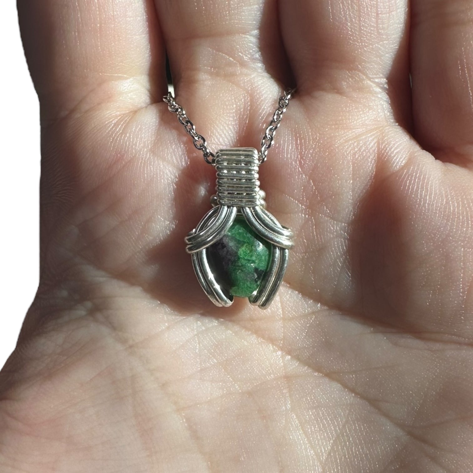Sterling Silver | 14KT Gold Filled Mini Teardrop Ruby Zoisite Wire Wrapped Wishbone 2.0 Pendant