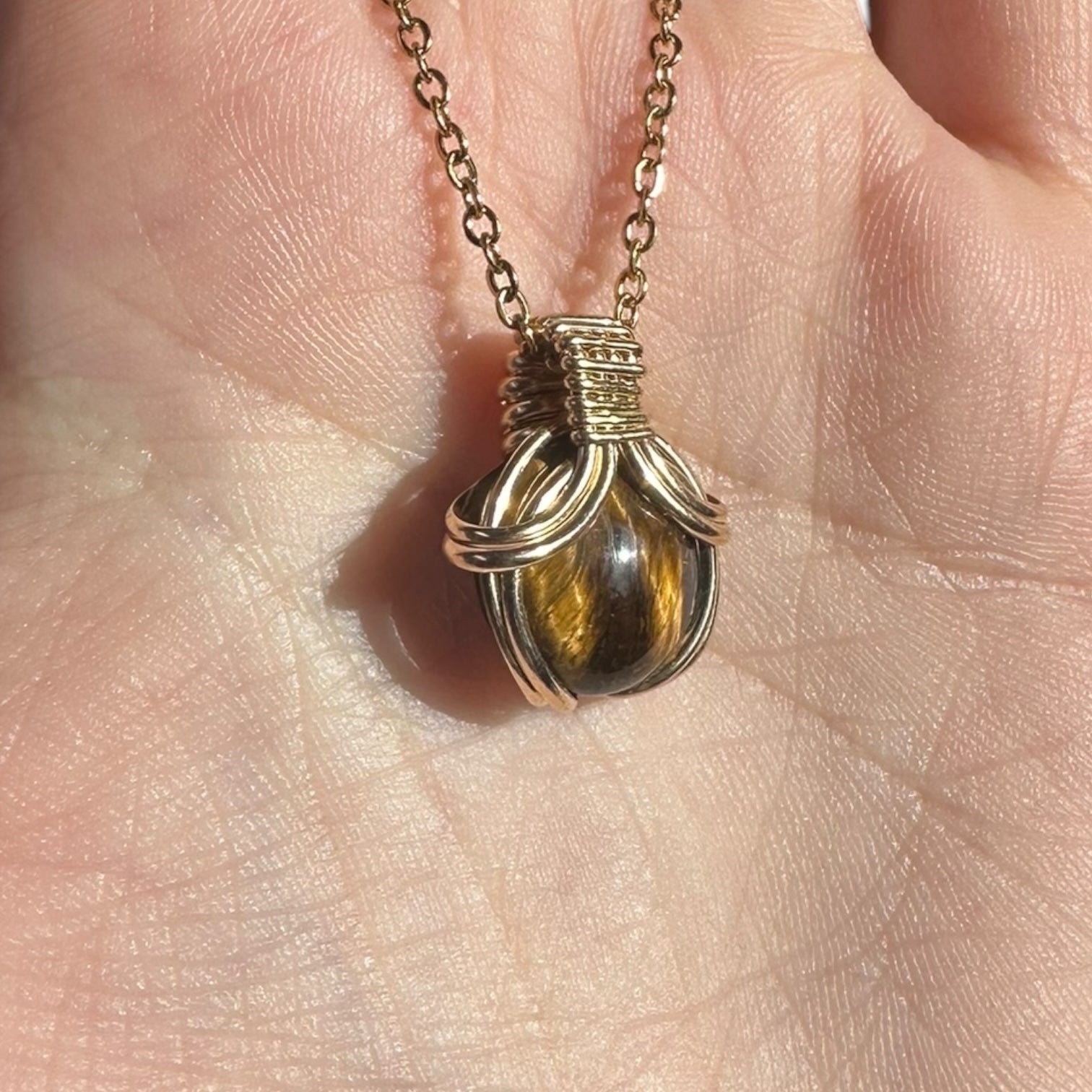 Sterling Silver | 14KT Gold Filled Mini Teardrop Tiger's Eye Wire Wrapped Wishbone 2.0 Pendant