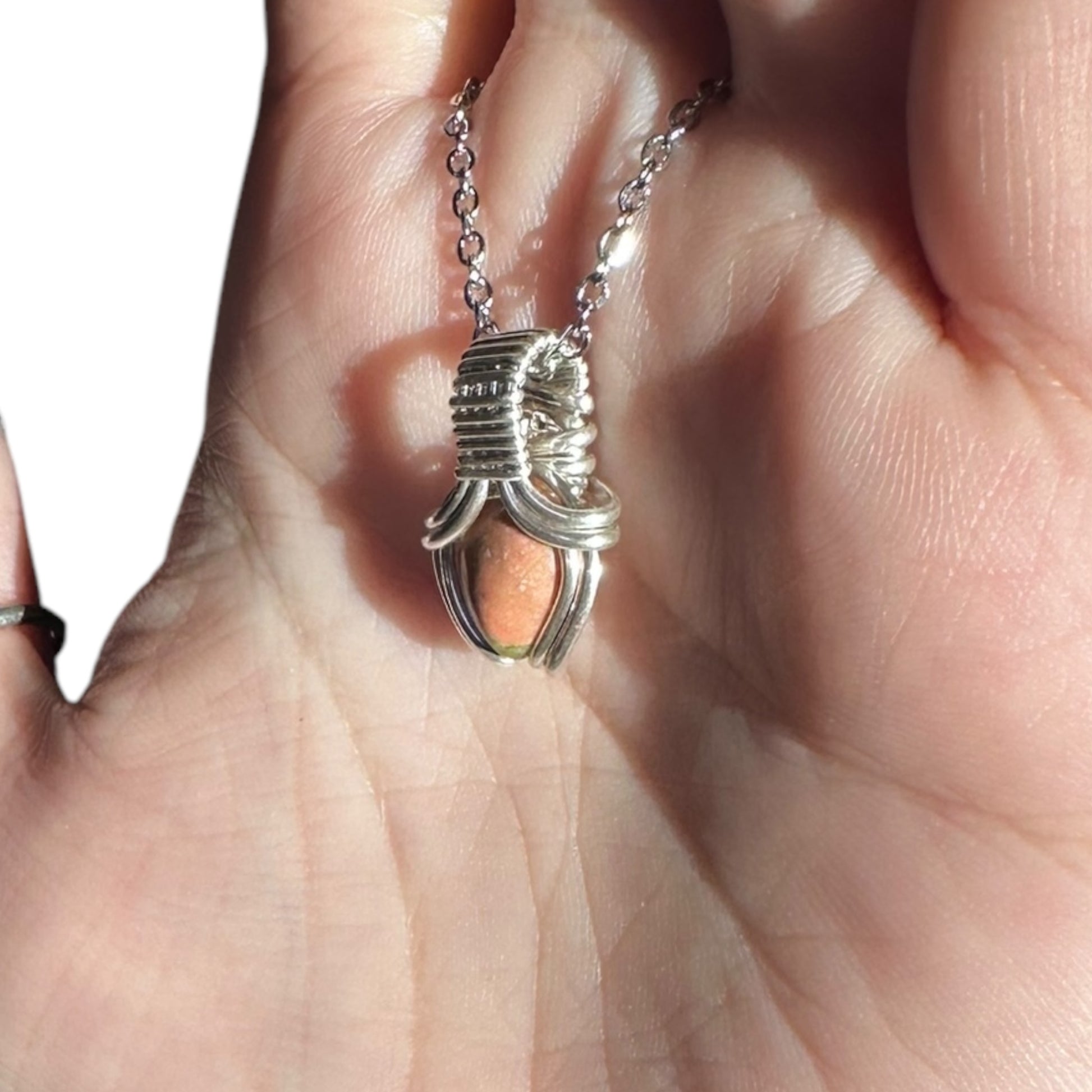 This crystal is wrapped in Sterling Silver or 14KT Gold Filled wire to make it into a wearable piece of art!  This beautiful stone matched with the silver/gold accent makes a great statement necklace!  It has such a simplistic look to it, yet very elegant! You're bound to get many compliments with this one!  Such a great gift idea for Mother's Day, Birthdays, Anniversaries, Weddings, Christmas or just something you pick up for yourself!!  It is okay to treat yourself every now and again!  Take home this one of a kind necklace wrapped by yours truly!  It is unique just like the person who wears it!!