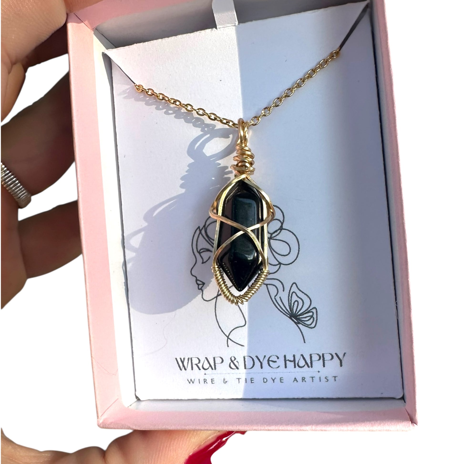 This Crystal is wrapped in 14KT gold filled wire to make it into a wearable piece of art!  This beautiful stone matched with the gold accent makes a great statement necklace!  It has such a simplistic look to it, yet very elegant! You're bound to get many compliments with this one!  Such a great gift idea for Mother's Day, Birthdays, Anniversaries, Weddings, Christmas or just something you pick up for yourself!!  It is okay to treat yourself every now and again!  Take home this one of a kind necklace wrapped by yours truly!  It is unique just like the person who wears it!!