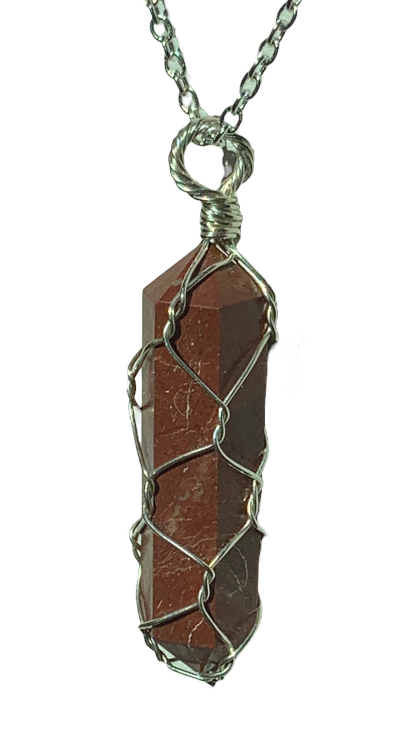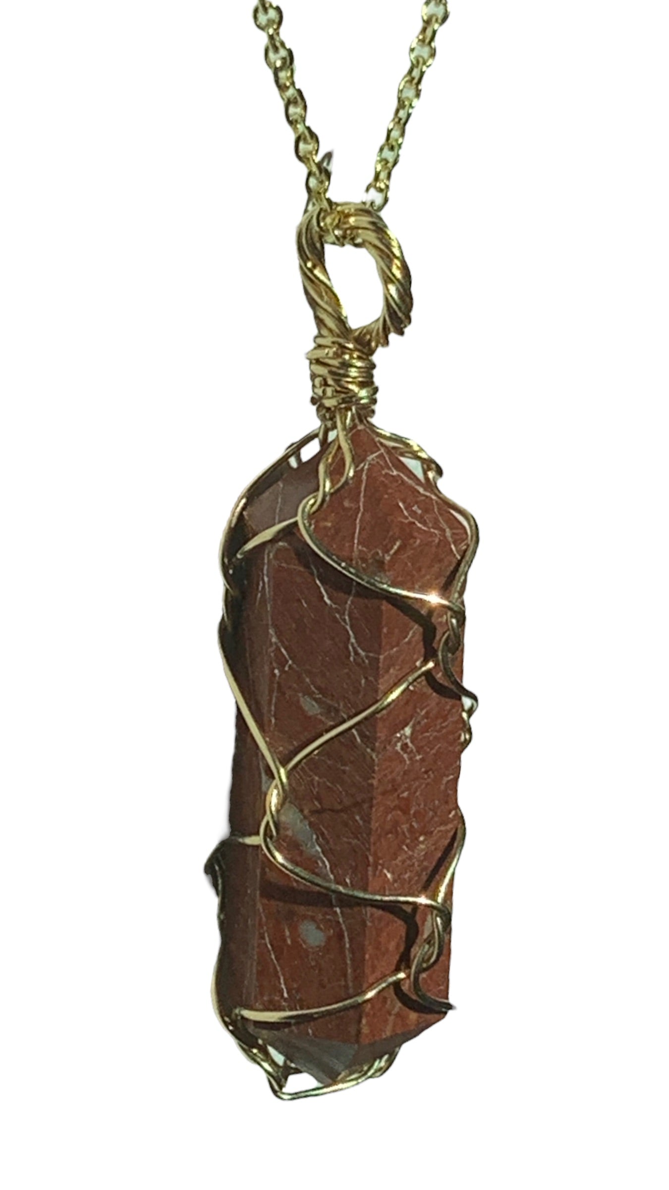 This Red Jasper Crystal is wrapped in your choice of sterling silver or 14KT gold Filled wire to make it into a wearable piece of art!  This beautiful stone matched with the silver or gold accent makes a great statement necklace!  It has such a simplistic look to it, yet very elegant! You're bound to get many compliments with this one!  Such a great gift idea for Mother's Day, Birthdays, Anniversaries, Weddings, Christmas or just something you pick up for yourself!!  It is okay to treat yourself every now and again!  Take home this one of a kind necklace wrapped by yours truly!  It is unique just like the person who wears it!!
