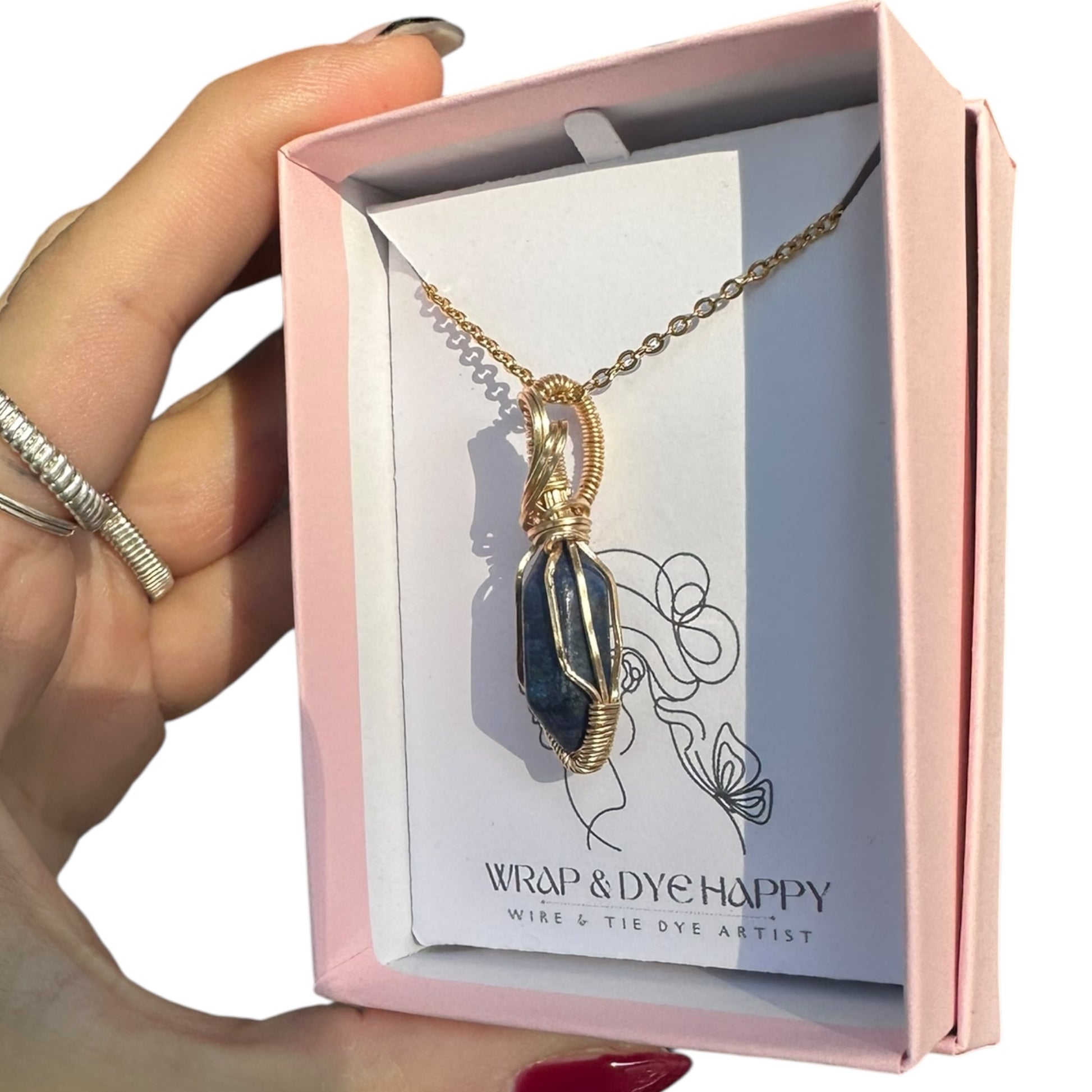 This Crystal is wrapped in 14KT gold filled wire to make it into a wearable piece of art!  This beautiful stone matched with the gold accent makes a great statement necklace!  It has such a simplistic look to it, yet very elegant! You're bound to get many compliments with this one!  Such a great gift idea for Mother's Day, Birthdays, Anniversaries, Weddings, Christmas or just something you pick up for yourself!!  It is okay to treat yourself every now and again!  Take home this one of a kind necklace wrapped by yours truly!  It is unique just like the person who wears it!!
