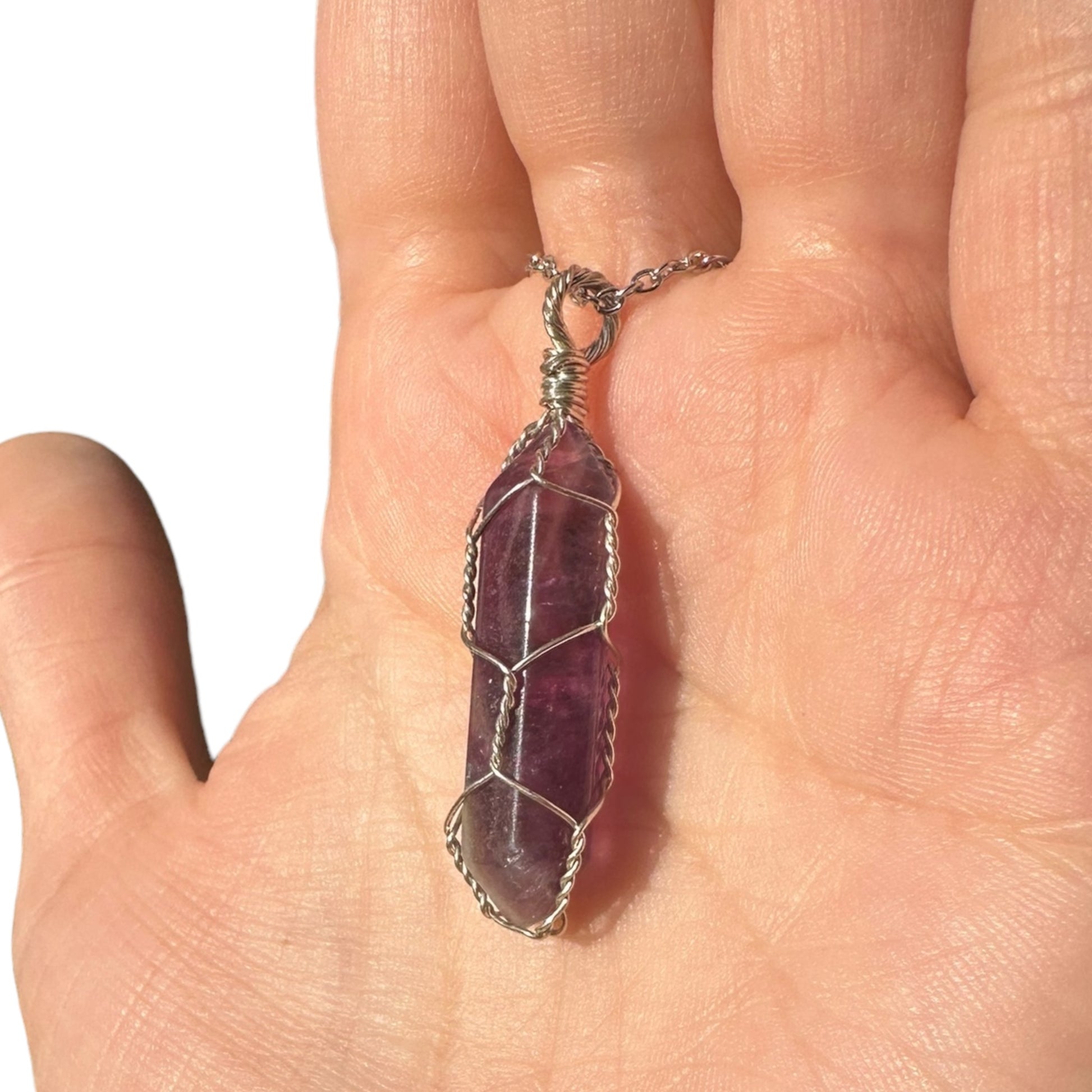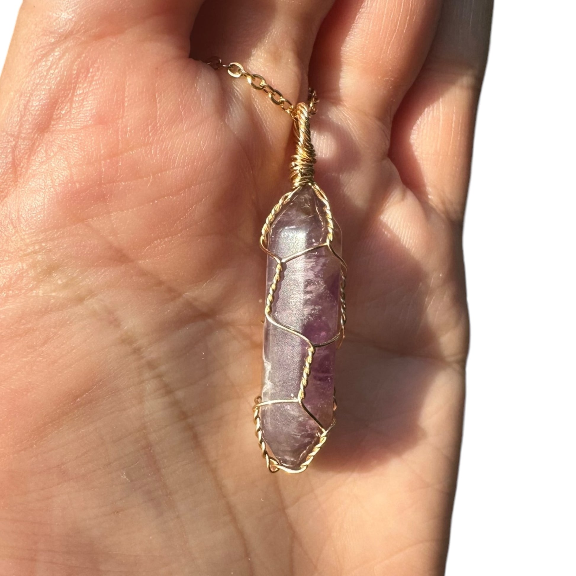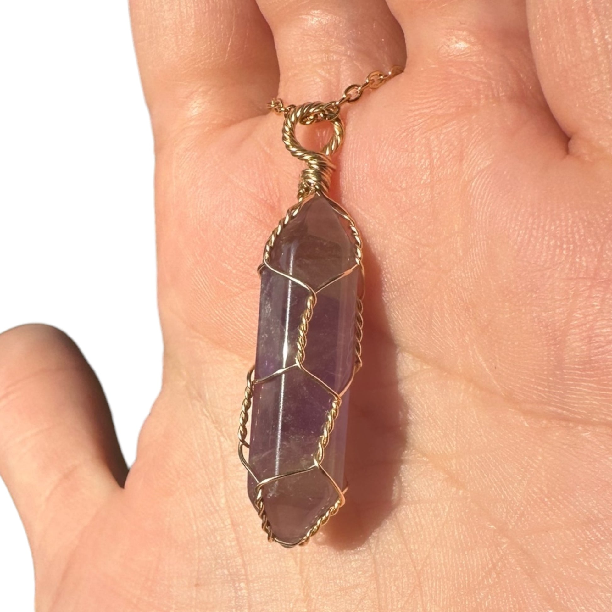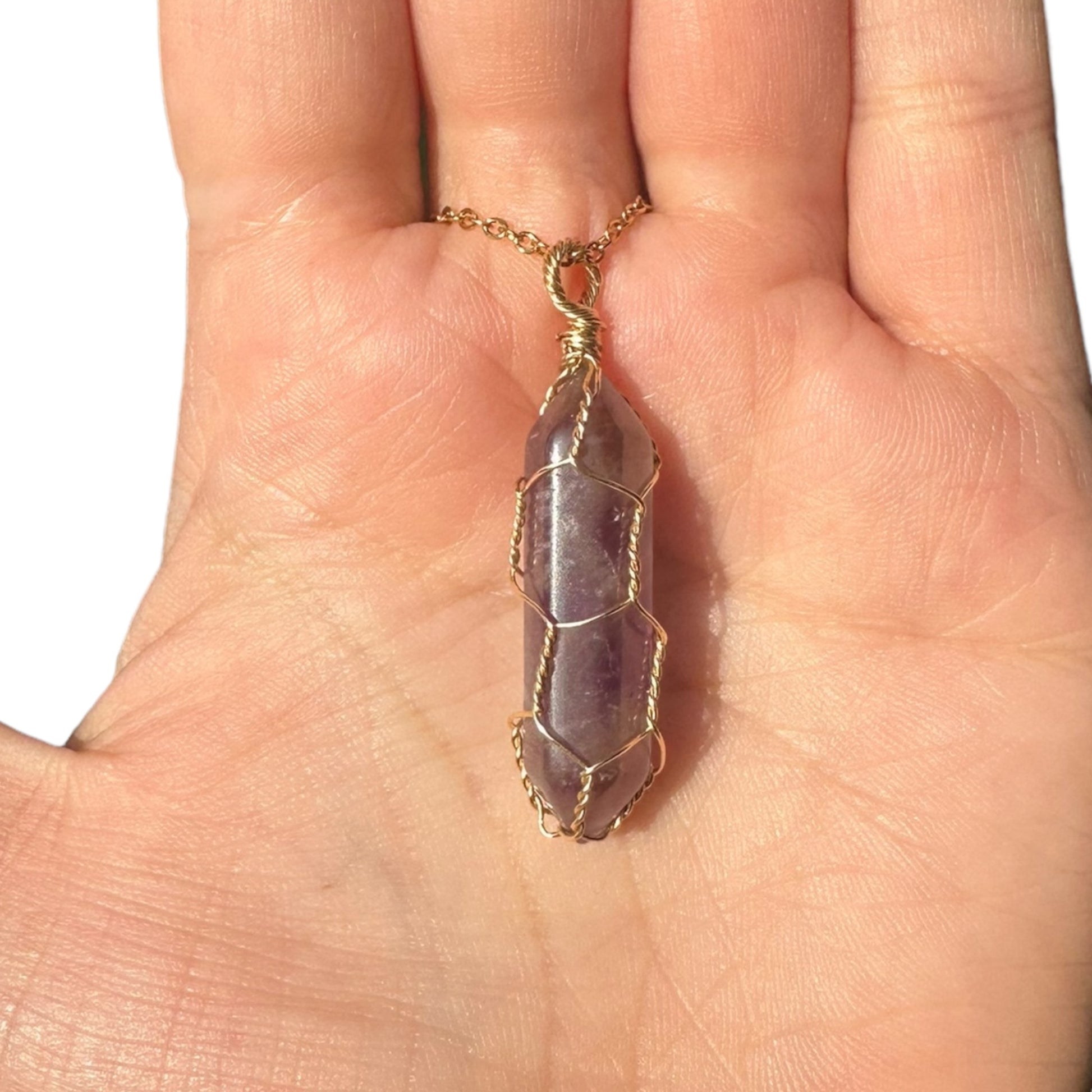 Sterling Silver | 14KT Gold Filled Wire Wrapped Amethyst Caged Pendant