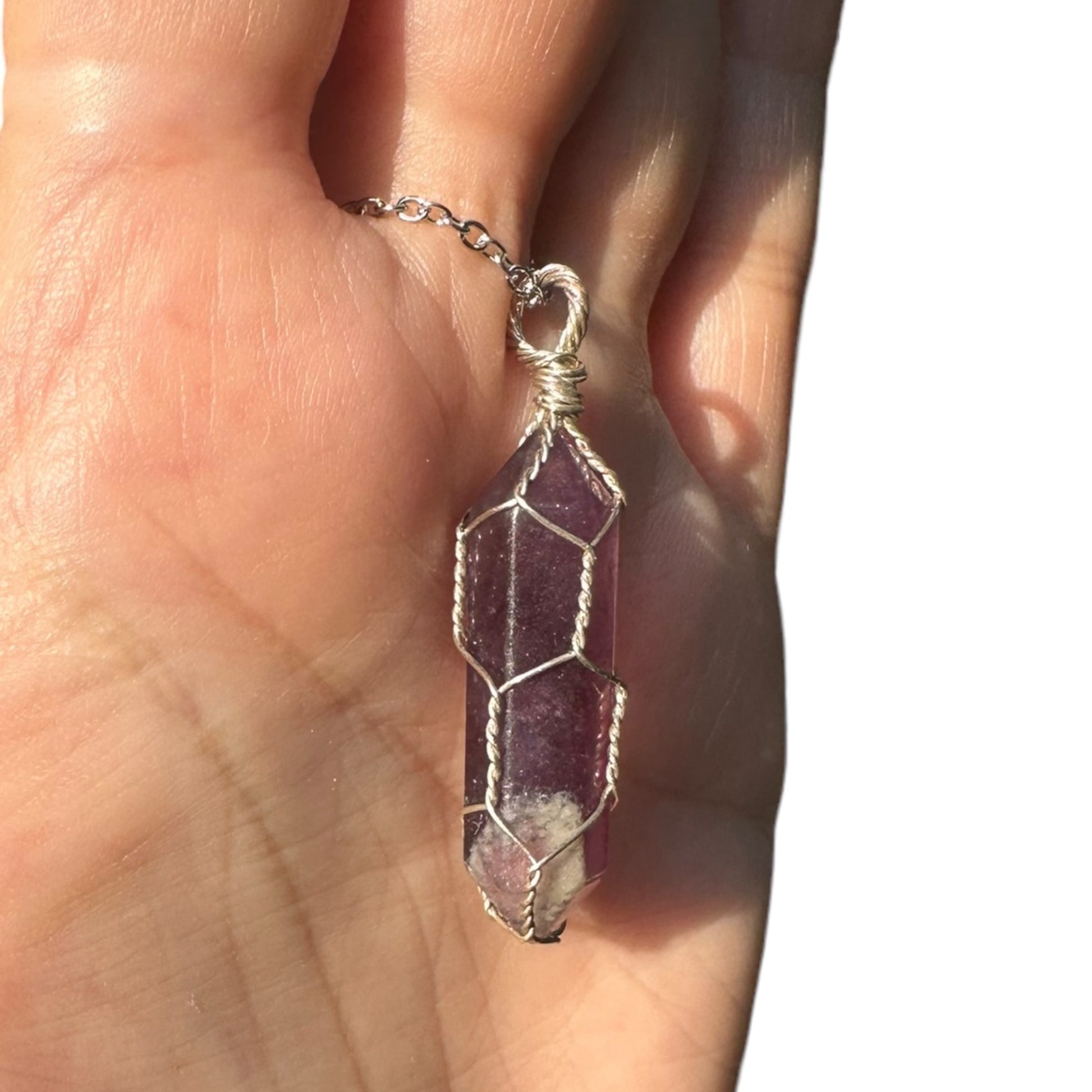 This Crystal is wrapped in Sterling Silver or 14KT gold filled wire to make it into a wearable piece of art!  This beautiful stone matched with the silver/gold accent makes a great statement necklace!  It has such a simplistic look to it, yet very elegant! You're bound to get many compliments with this one!  Such a great gift idea for Mother's Day, Birthdays, Anniversaries, Weddings, Christmas or just something you pick up for yourself!!  It is okay to treat yourself every now and again!  Take home this one of a kind necklace wrapped by yours truly!  It is unique just like the person who wears it!!