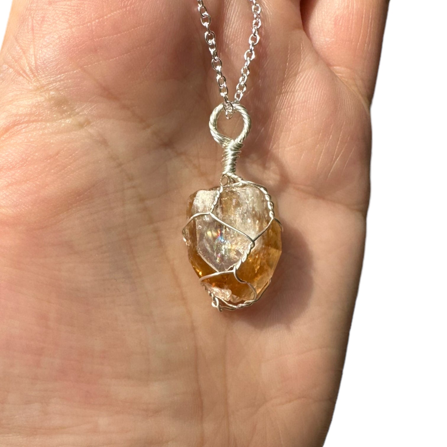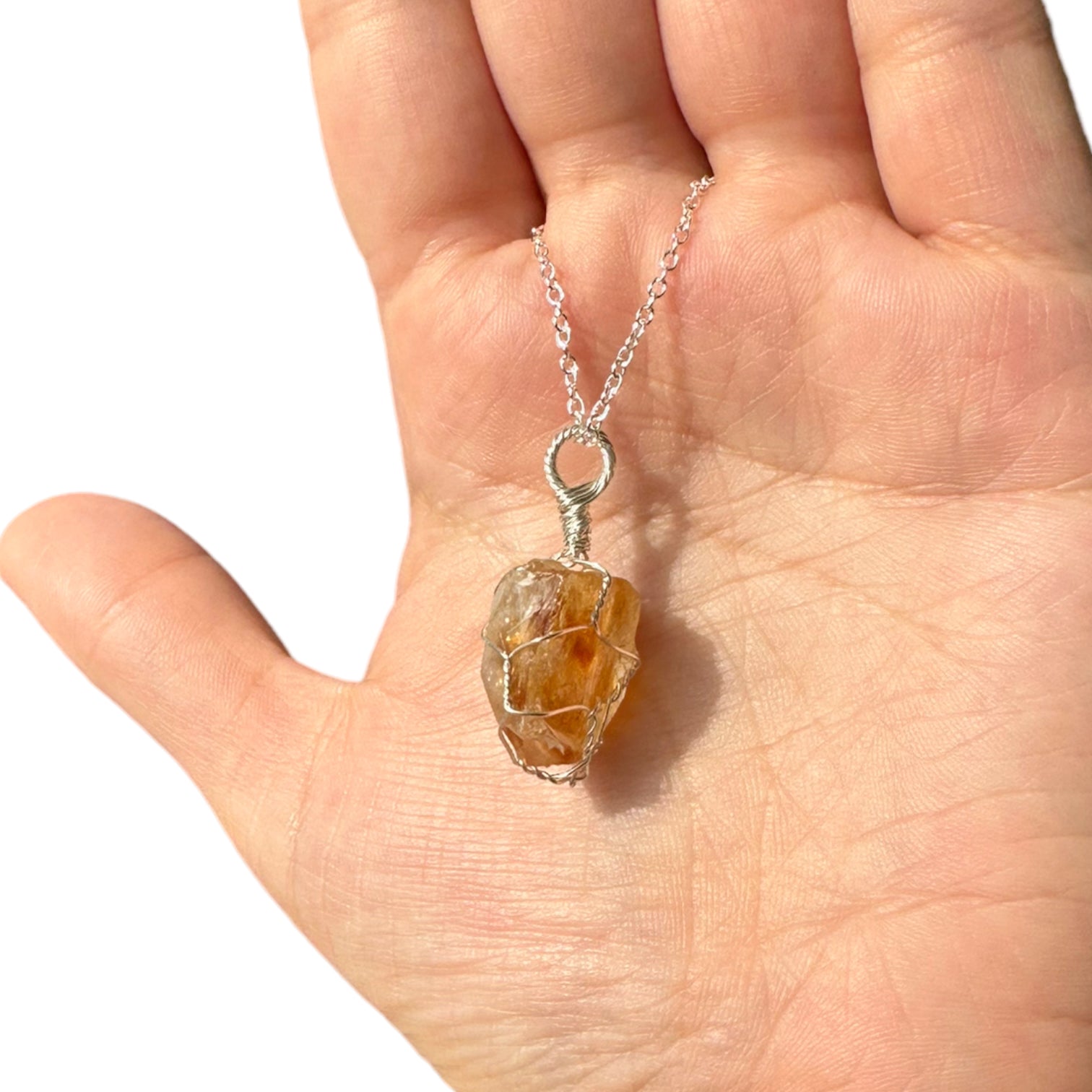 This Raw Citrine Crystal is wrapped in Sterling Silver or 14KT gold filled wire to make it into a wearable piece of art!  This beautiful stone matched with the silver/gold accent makes a great statement necklace!  It has such a simplistic look to it, yet very elegant! You're bound to get many compliments with this one!  Such a great gift idea for Mother's Day, Birthdays, Anniversaries, Weddings, Christmas or just something you pick up for yourself!!  It is okay to treat yourself every now and again!  Take home this one of a kind necklace wrapped by yours truly!  It is unique just like the person who wears it!!
