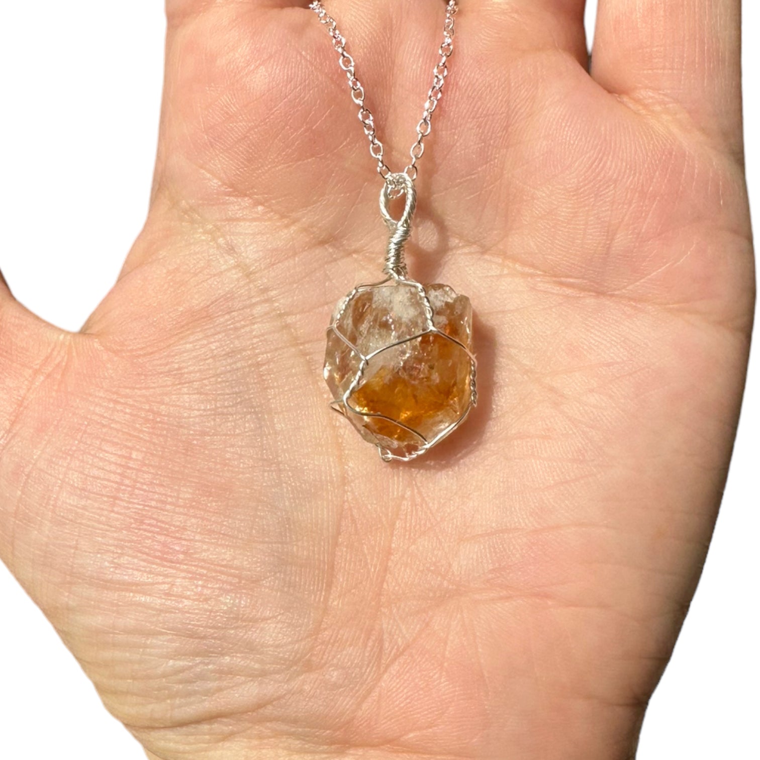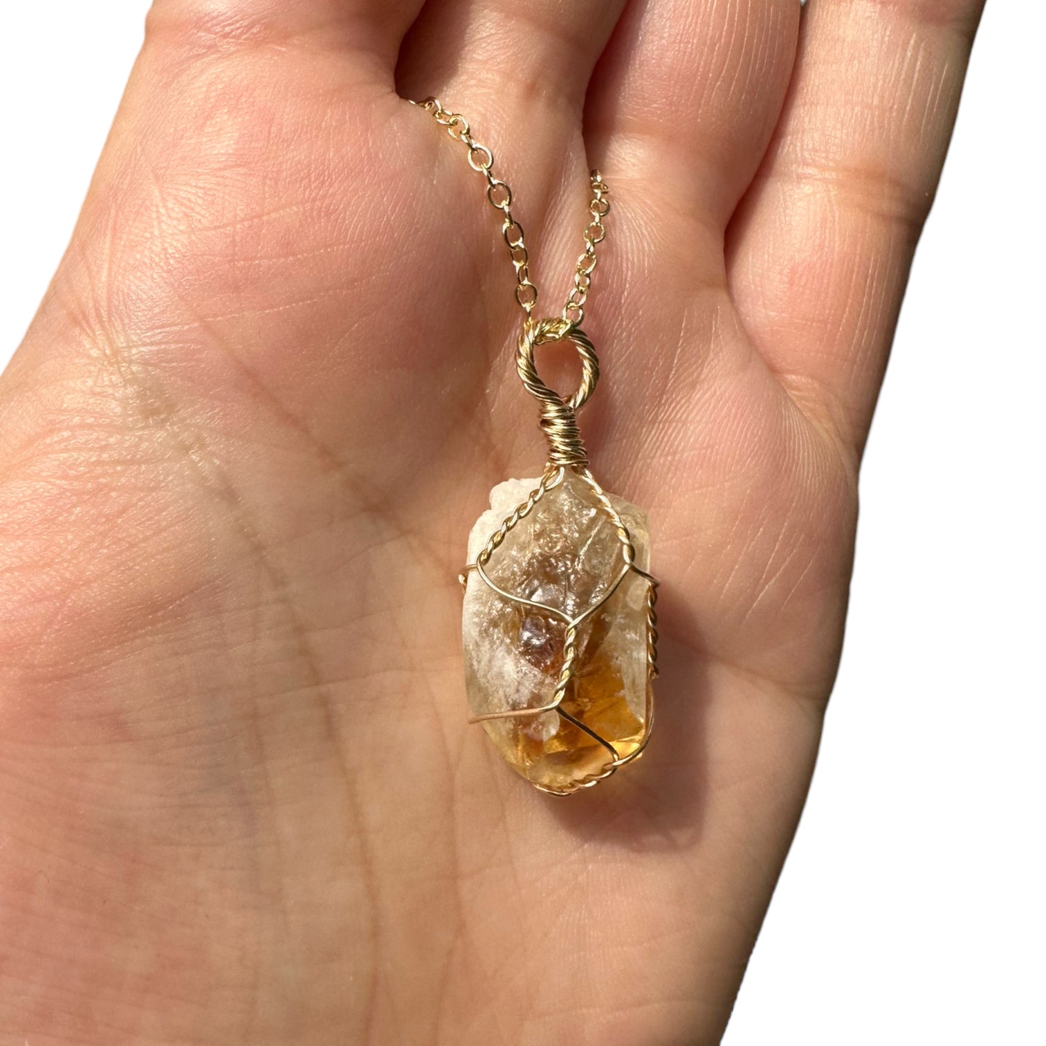 Sterling Silver | 14KT Gold Filled Wire Wrapped Raw Citrine Caged Pendant