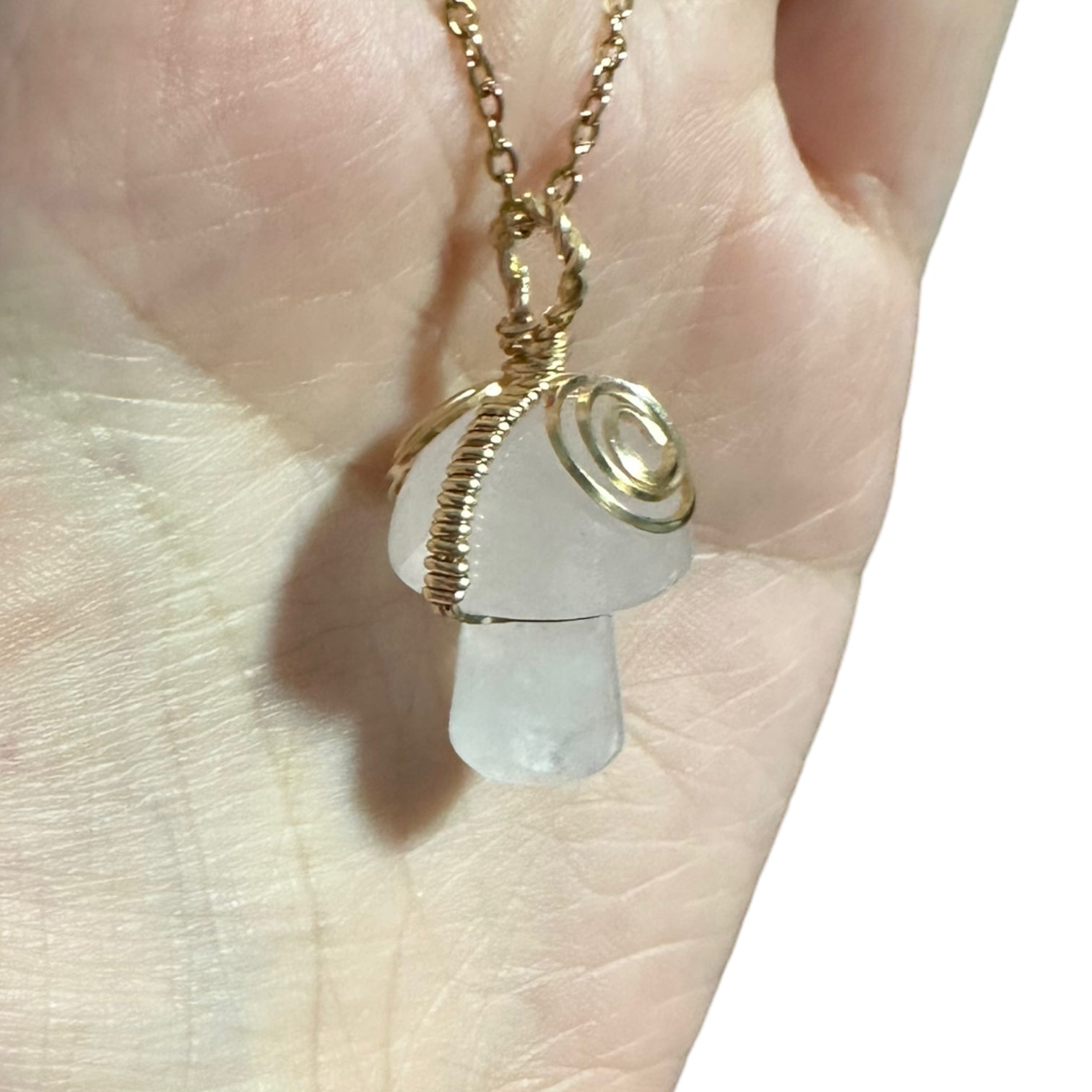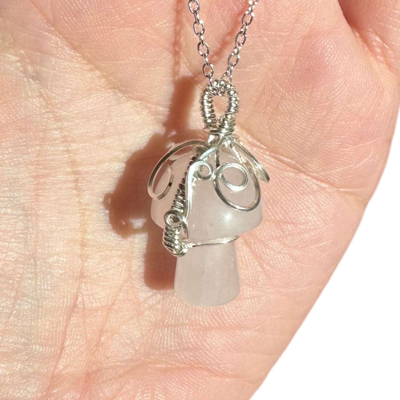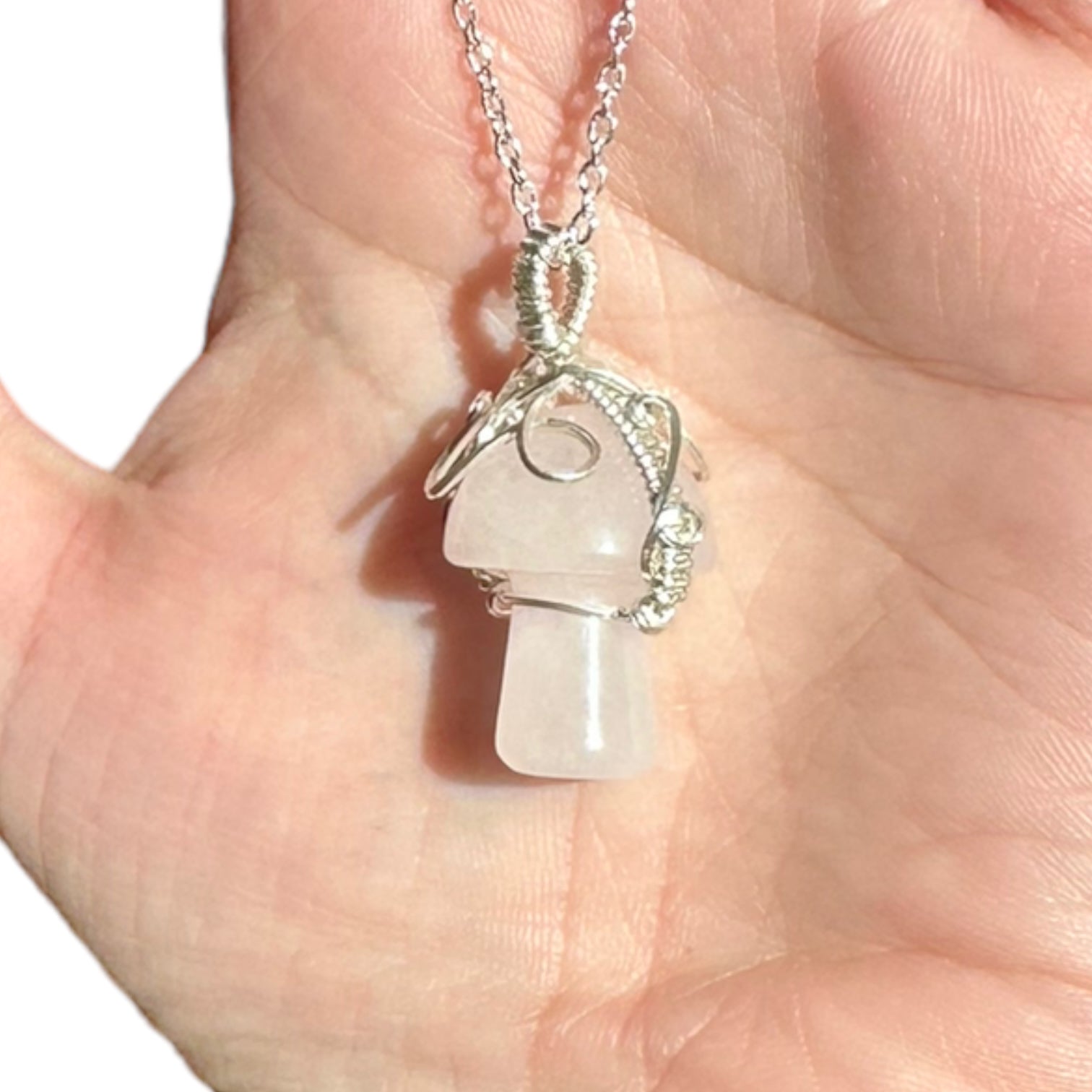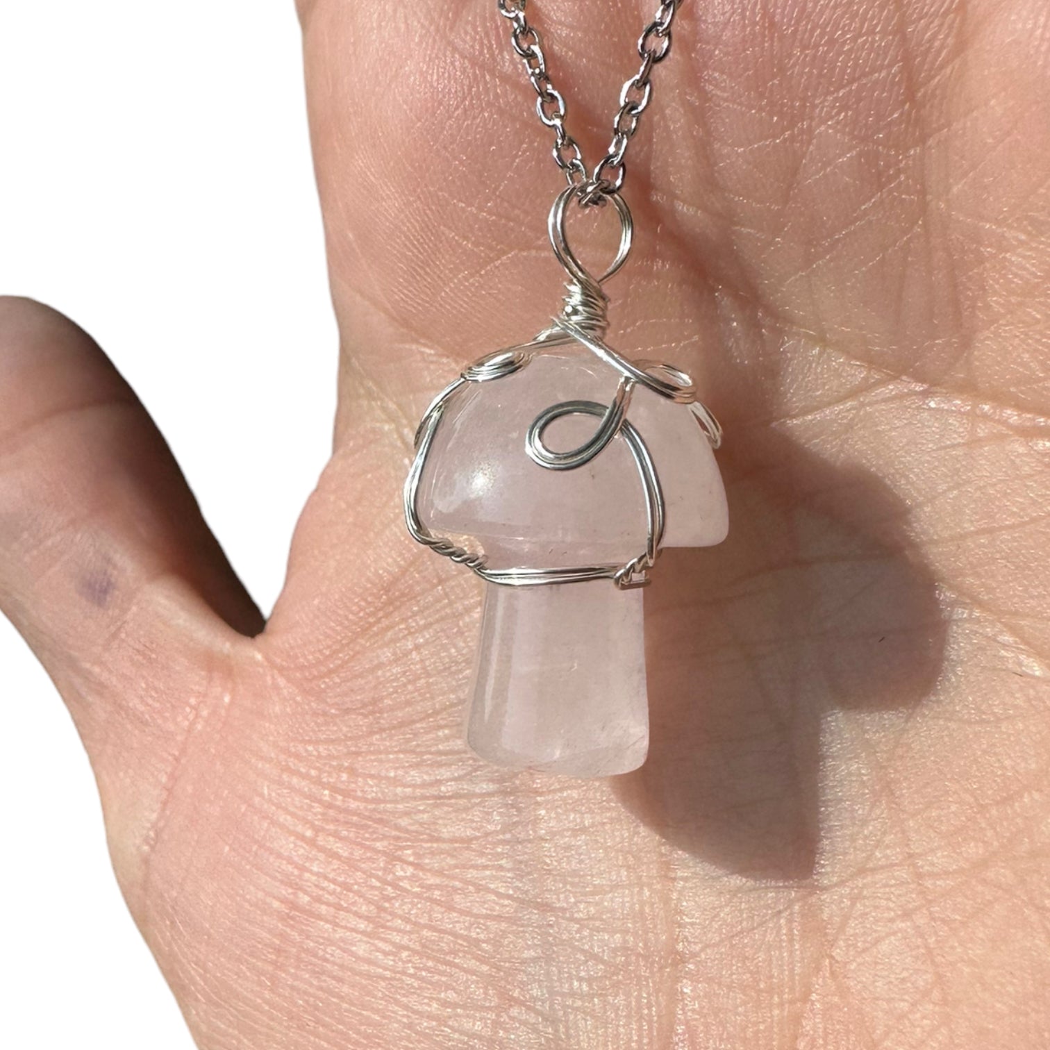 Sterling Silver | 14KT Gold Filled Wire Wrapped Rose Quartz Crystal Mushroom Pendant