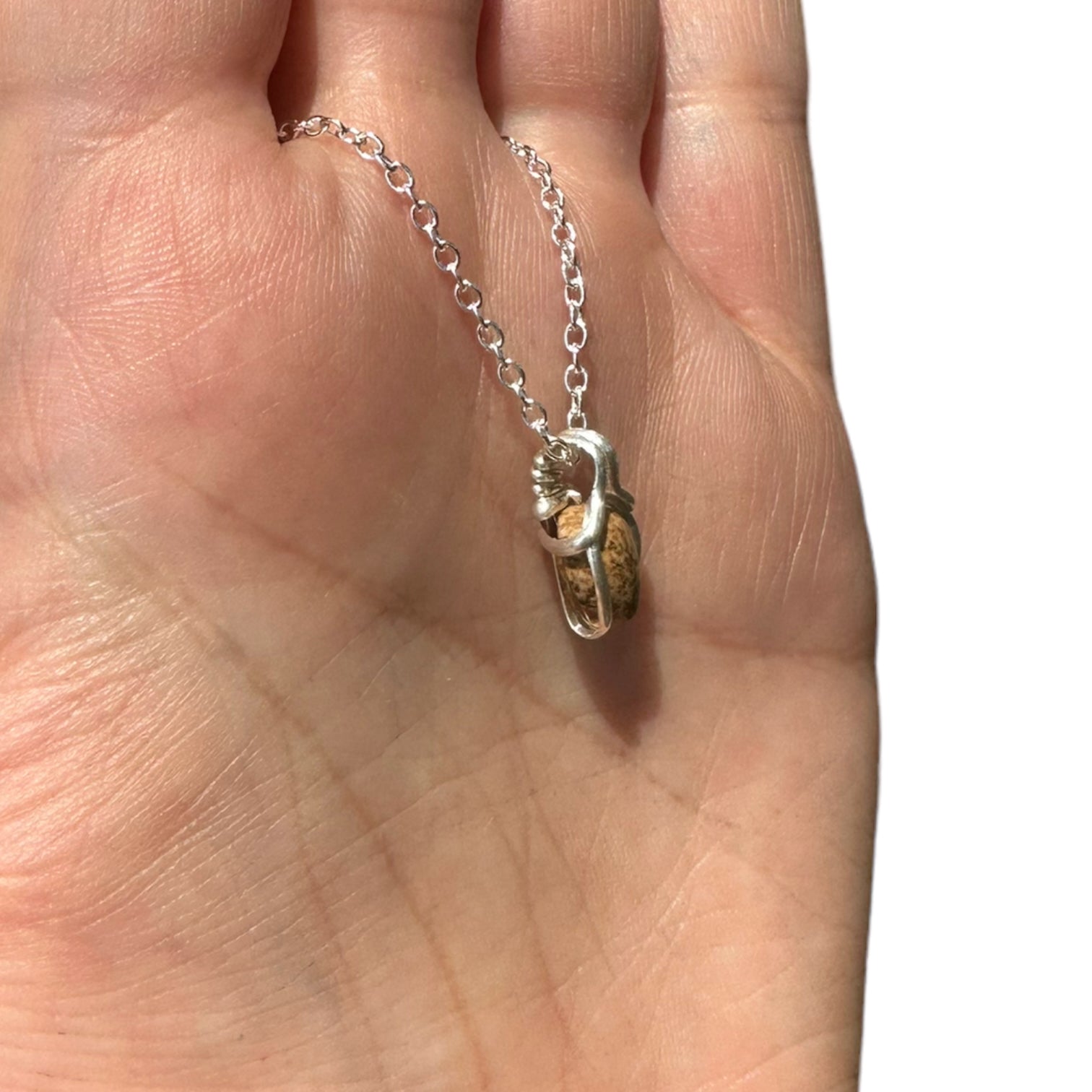 Sterling Silver | 14KT Gold Filled Mini Teardrop Picture Jasper Wishbone Wire Wrapped Pendant