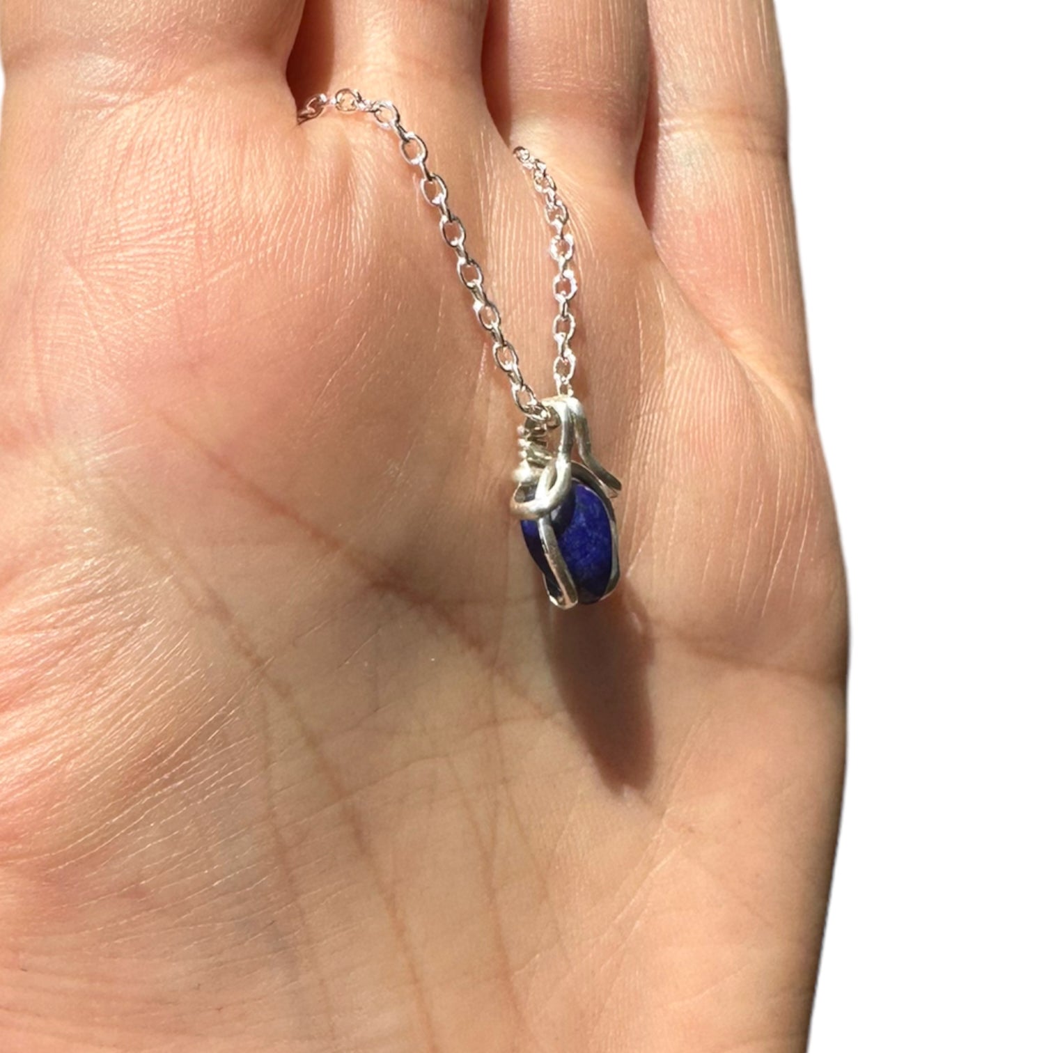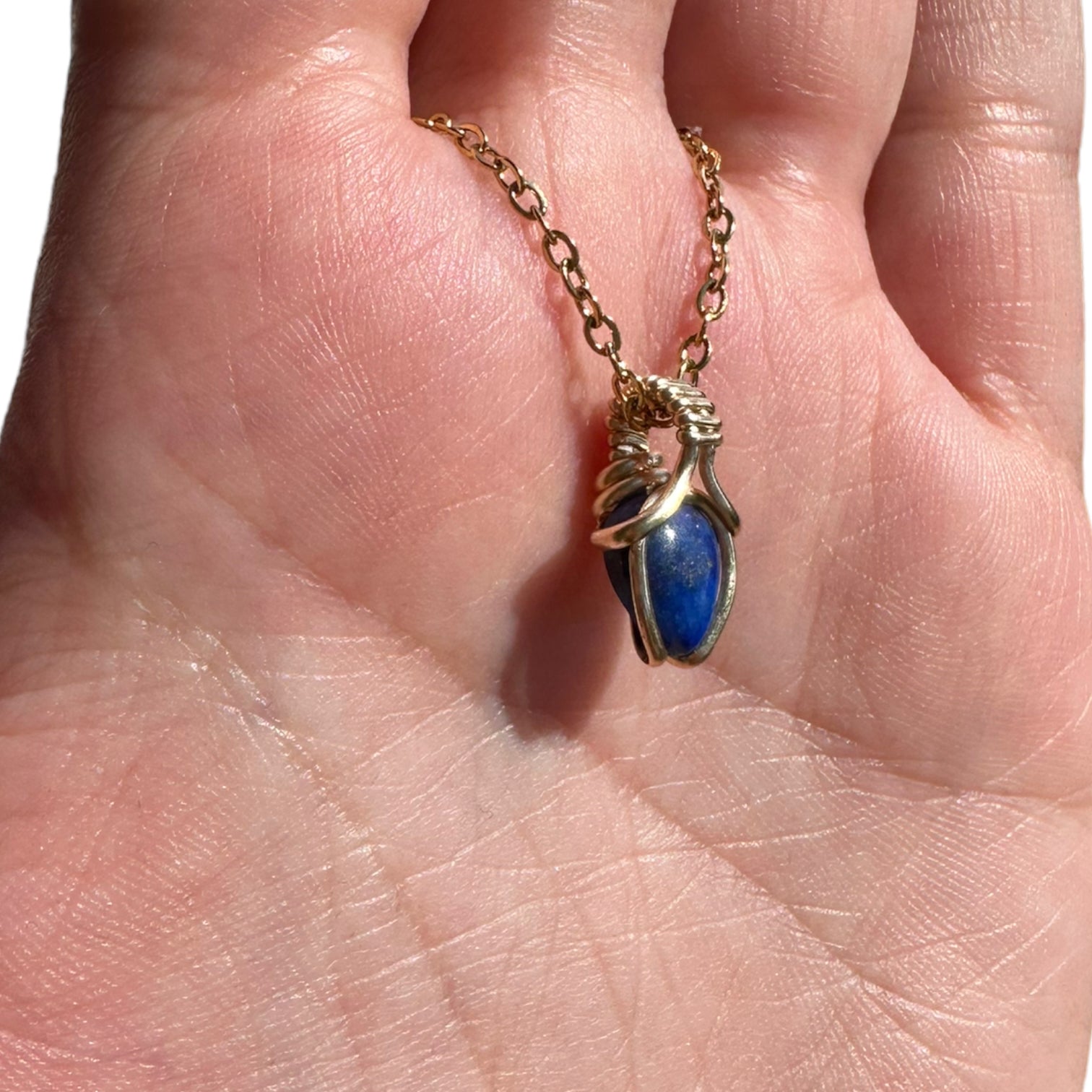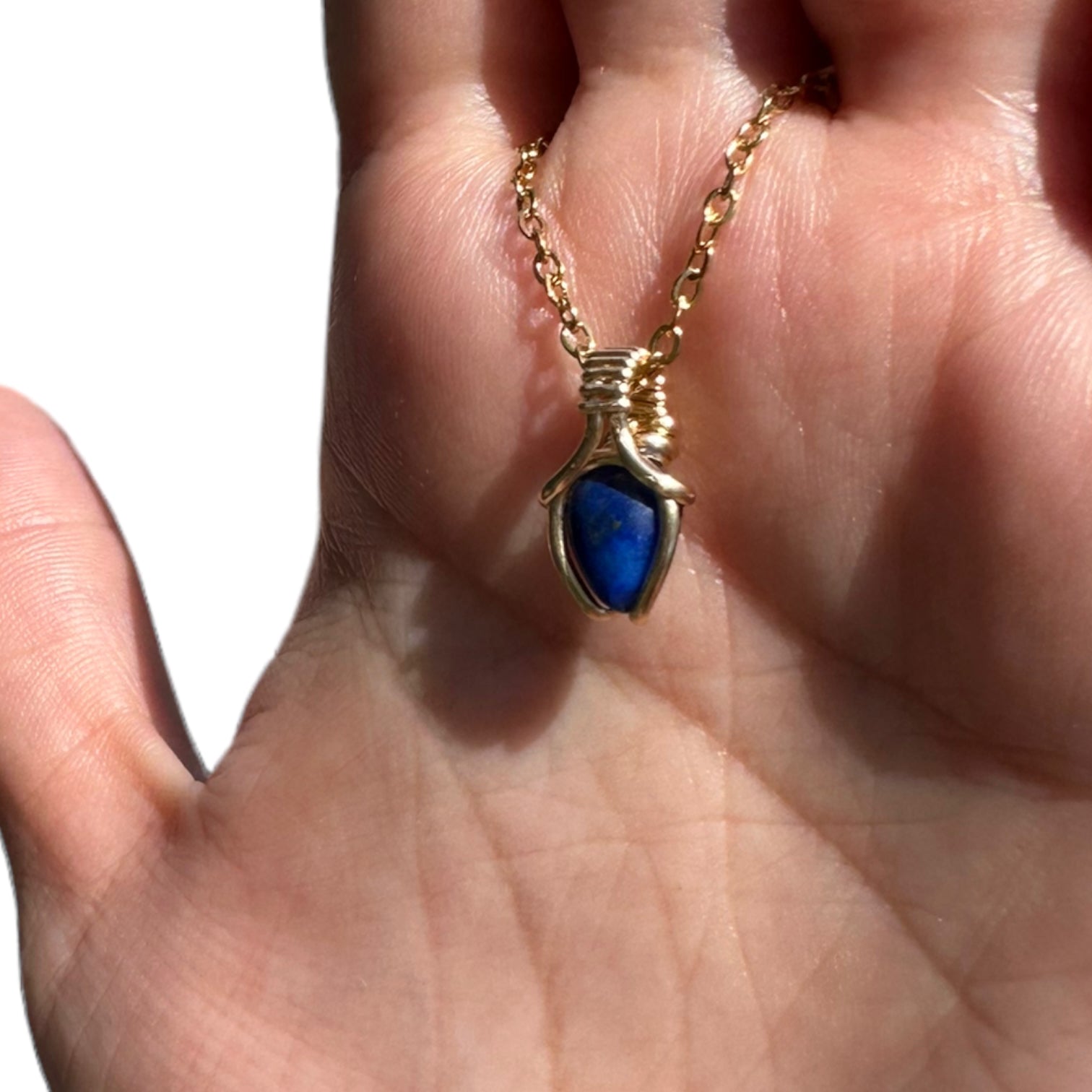 Sterling Silver | 14KT Gold Filled Mini Teardrop Lapis Lazuli Wishbone Wire Wrapped Pendant