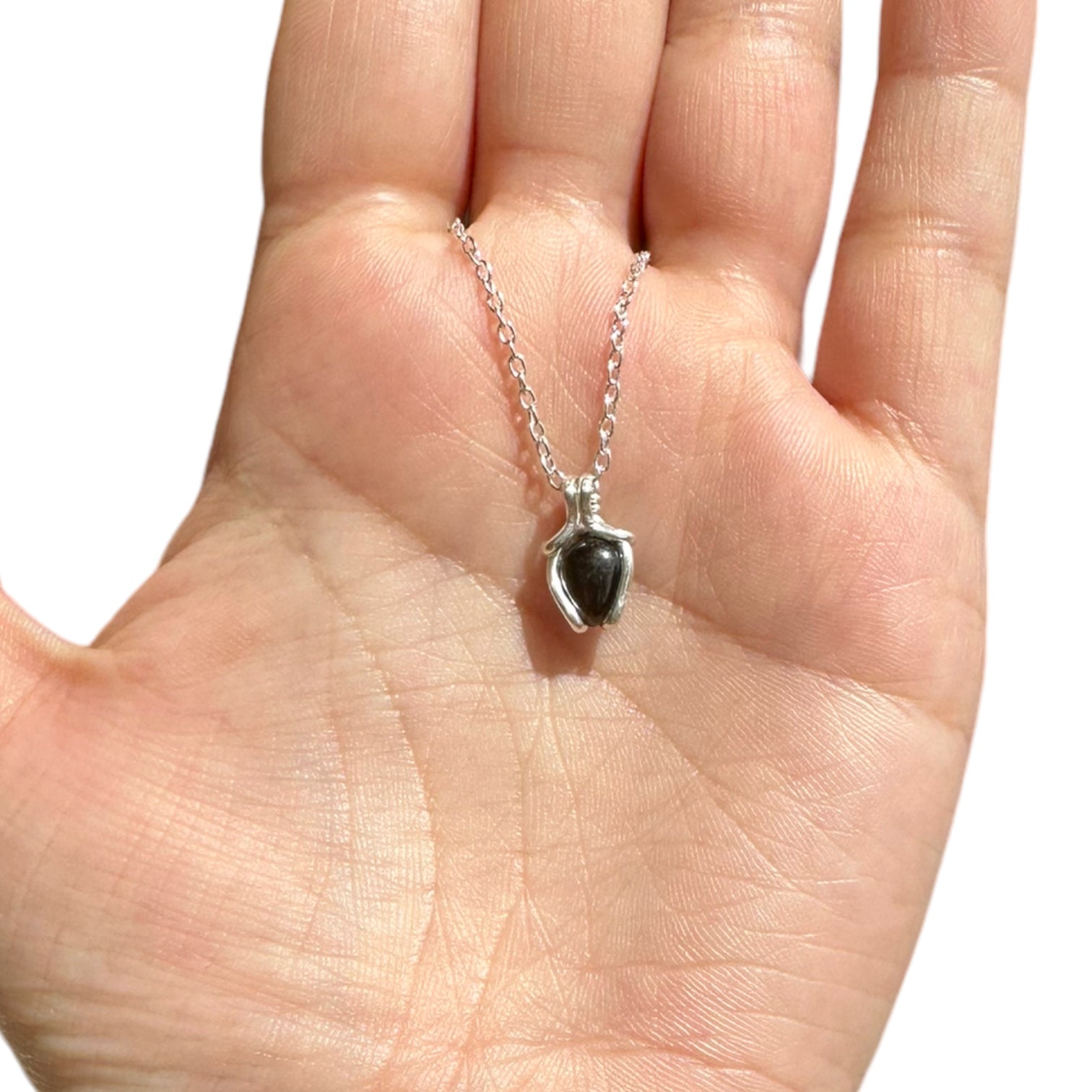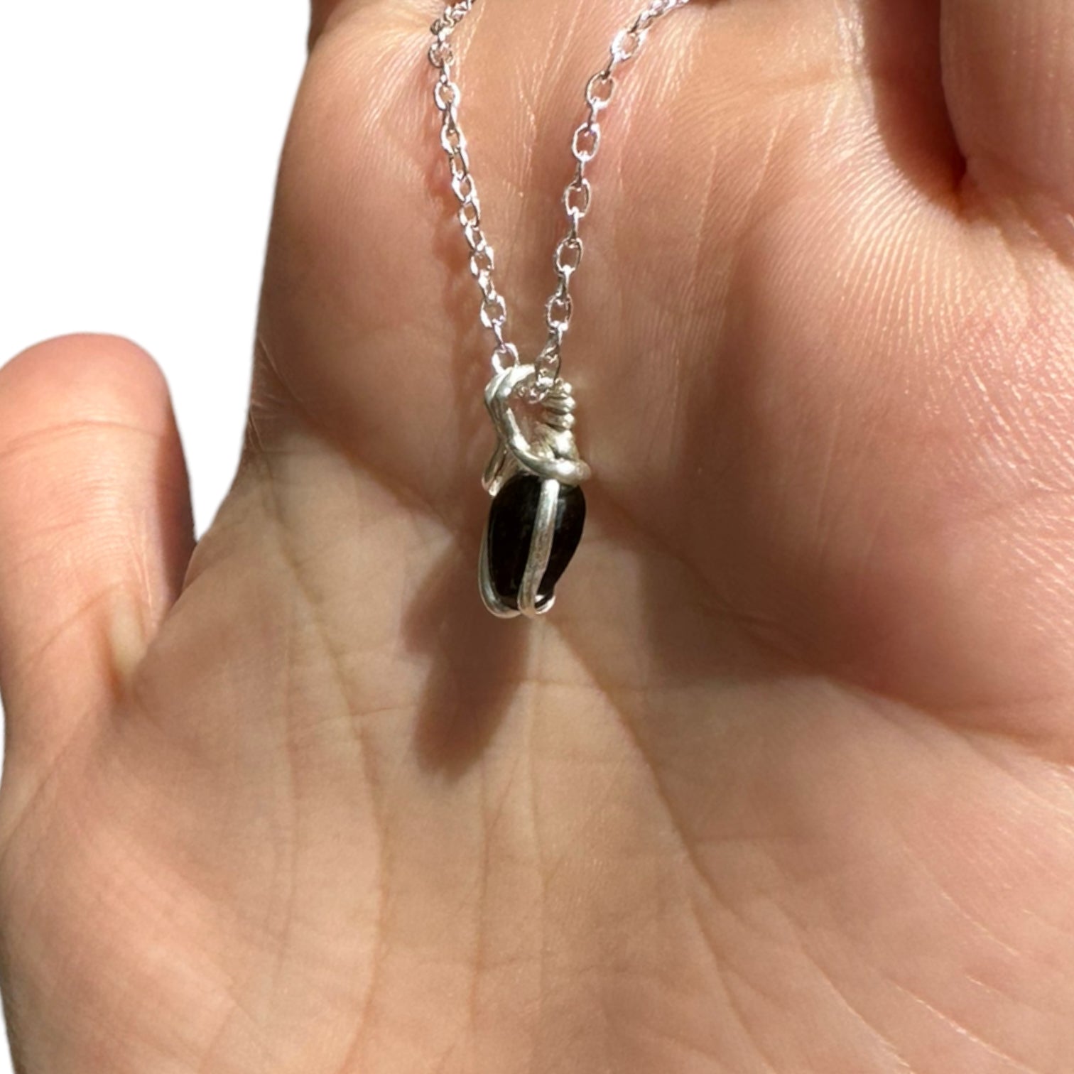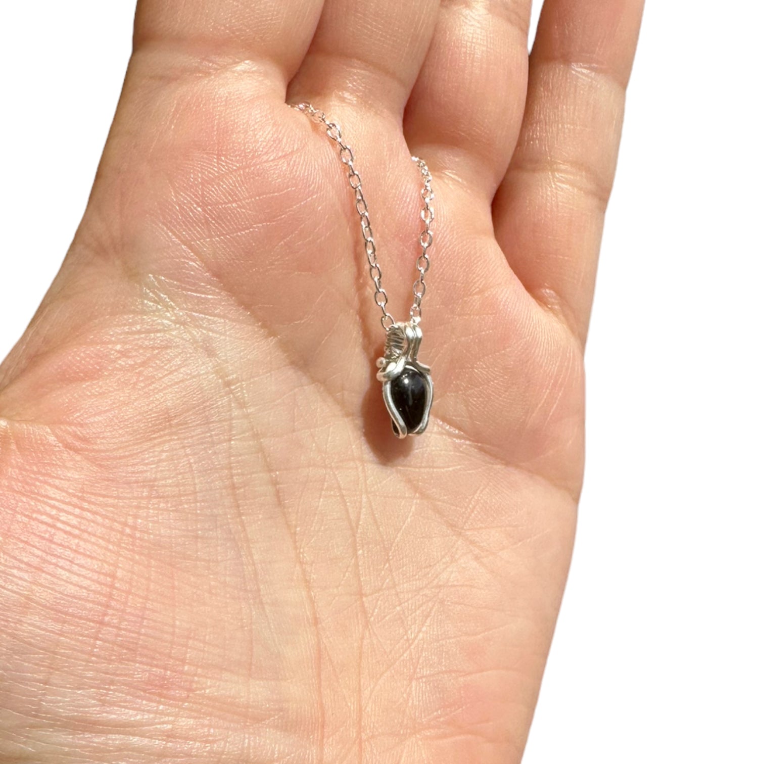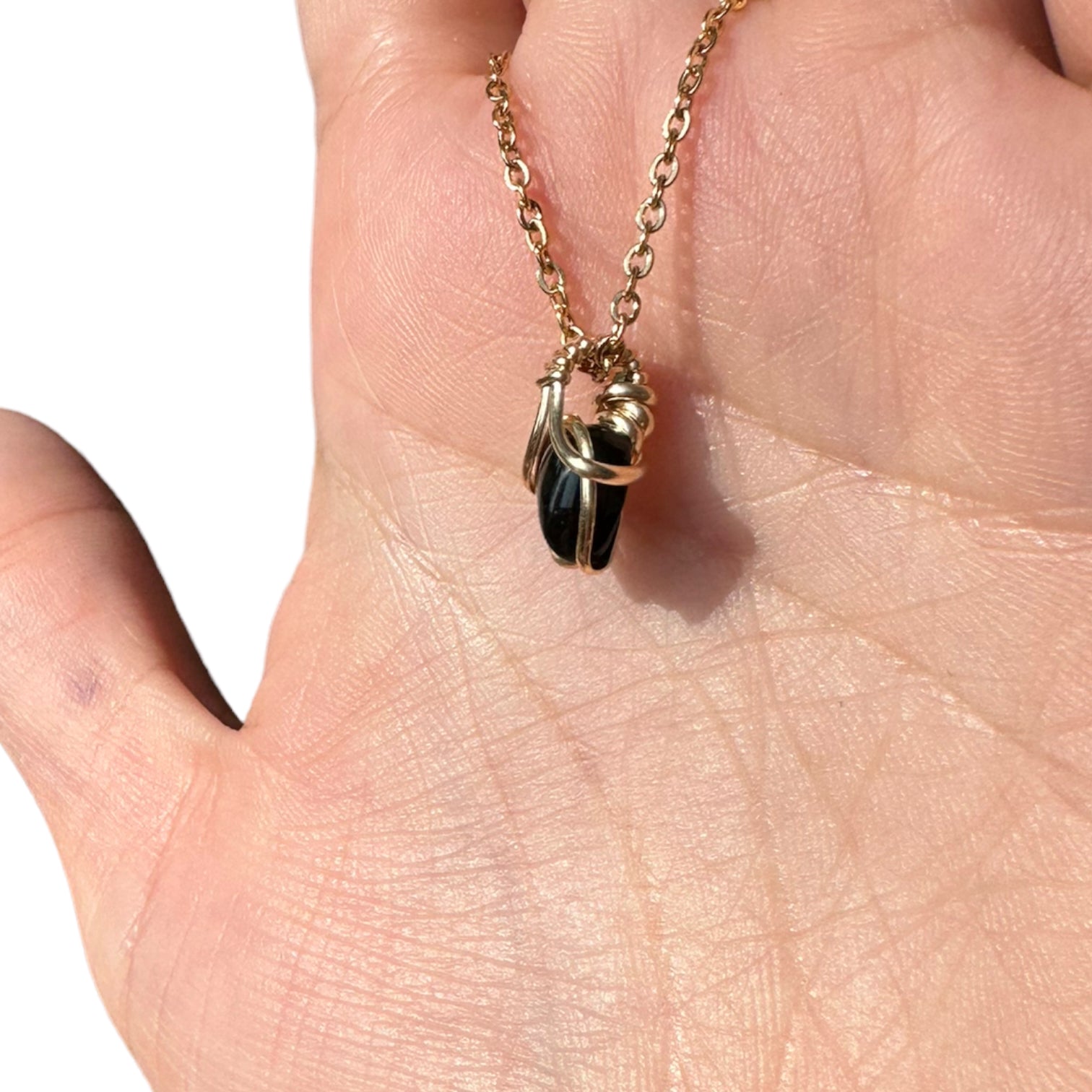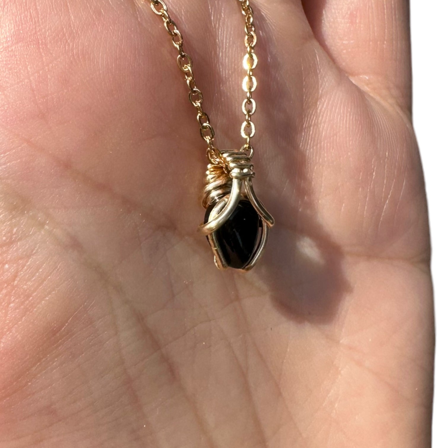 Sterling Silver | 14KT Gold Filled Mini Teardrop Onyx Wire Wrapped Wishbone Pendant