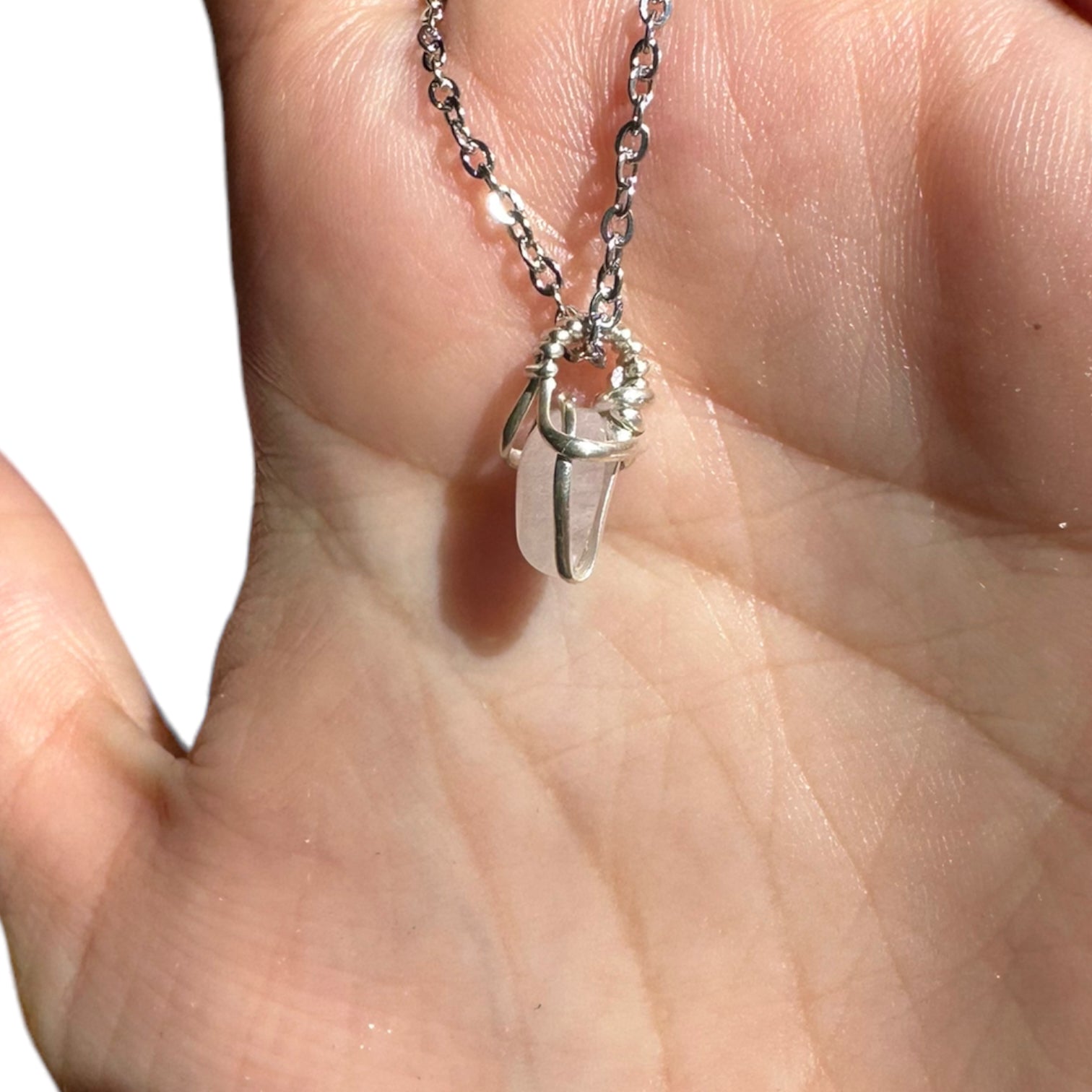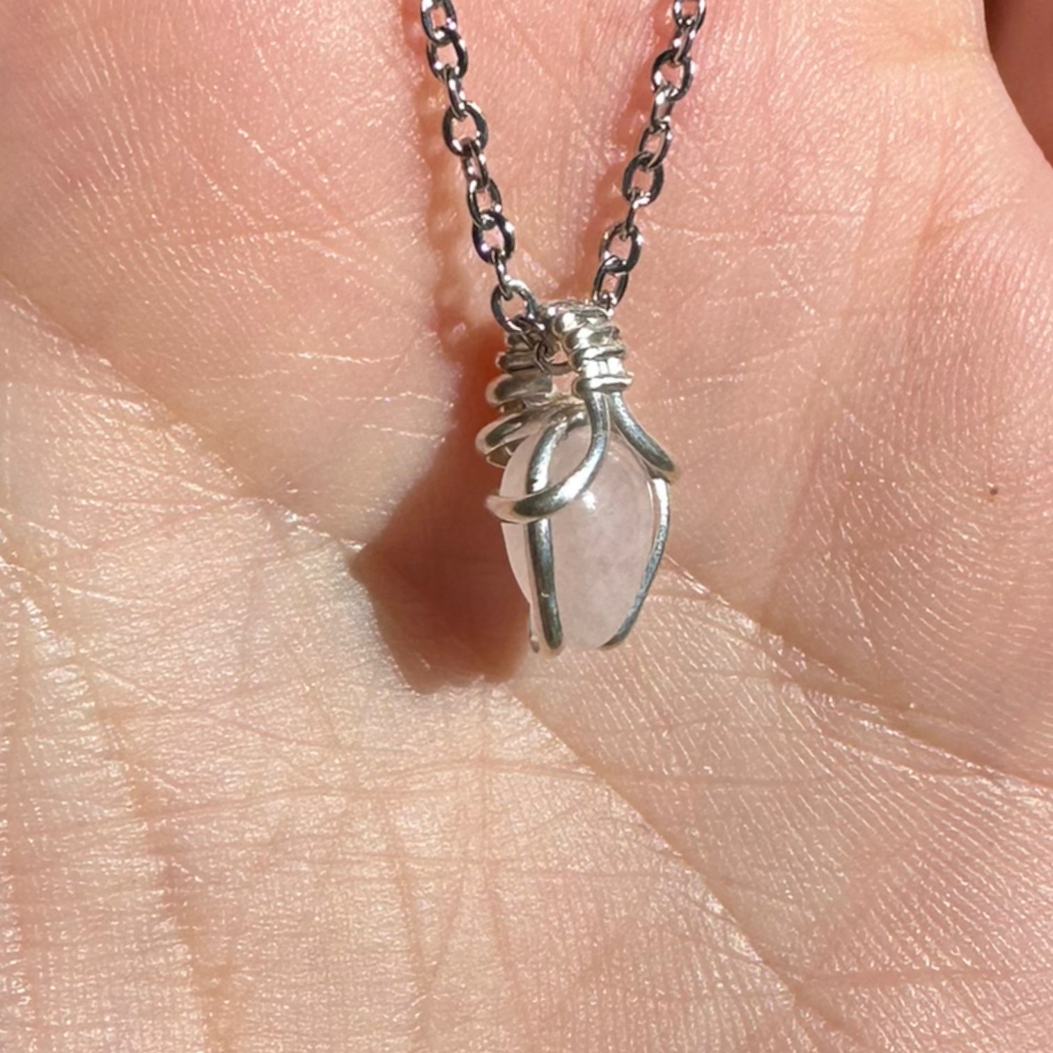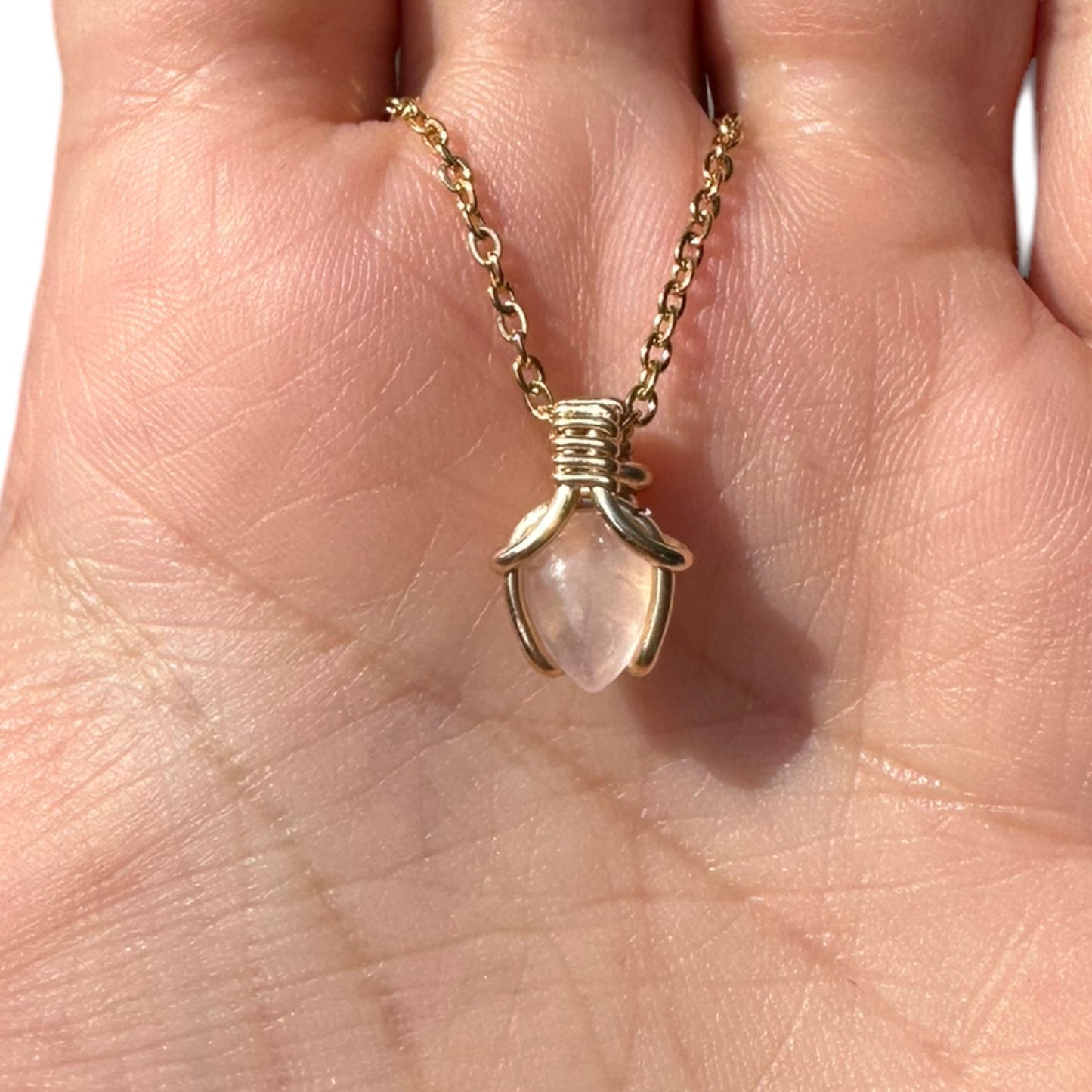 This Rose Quartz crystal is wrapped in Sterling Silver or 14KT Gold Filledwire to make it into a wearable piece of art!  This beautiful stone matched with the silver/gold accent makes a great statement necklace!  It has such a simplistic look to it, yet very elegant! You're bound to get many compliments with this one!  Such a great gift idea for Mother's Day, Birthdays, Anniversaries, Weddings, Christmas or just something you pick up for yourself!!  It is okay to treat yourself every now and again!  Take home this one of a kind necklace wrapped by yours truly!  It is unique just like the person who wears it!!