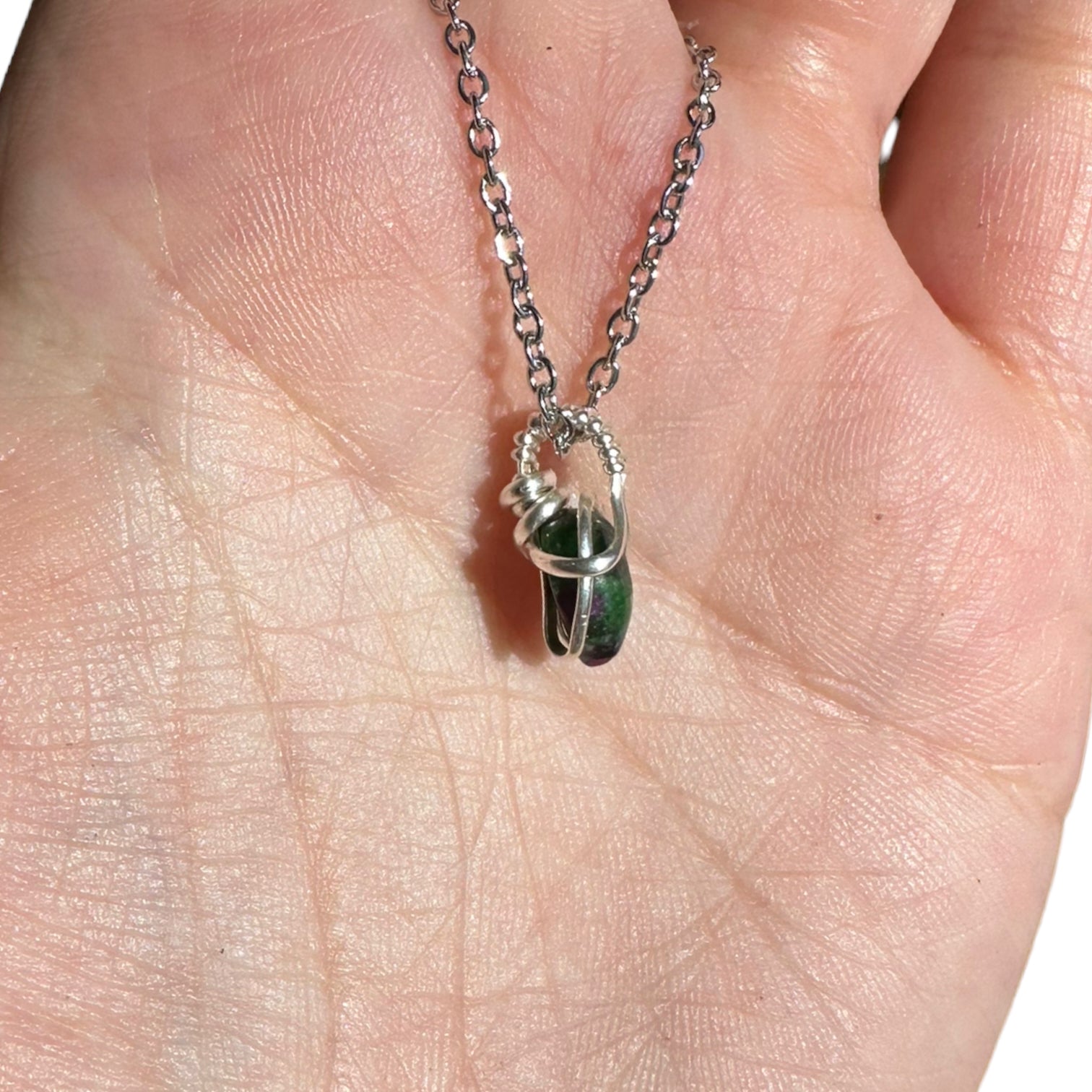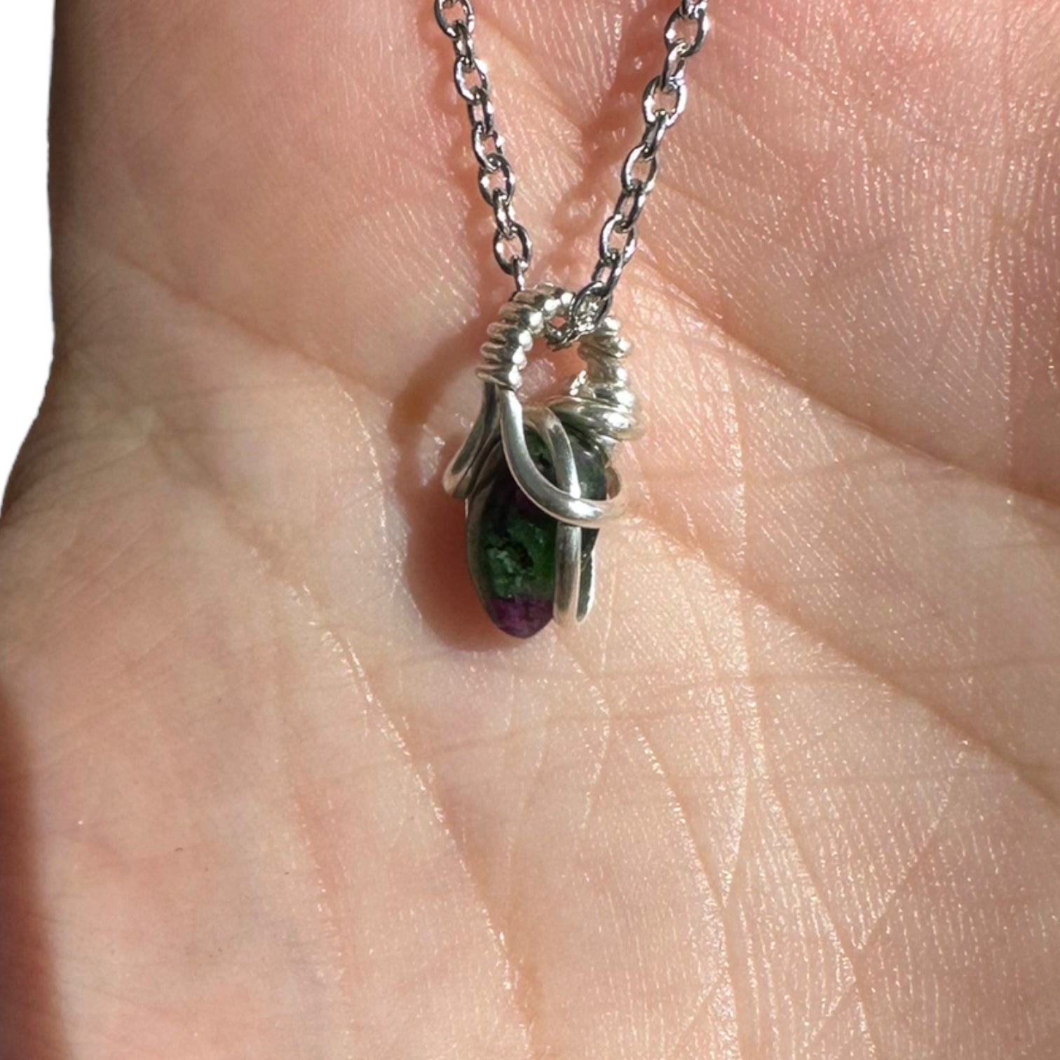 Sterling Silver | 14KT Gold Filled Mini Teardrop Ruby Zoisite Wishbone Wire Wrapped Pendant