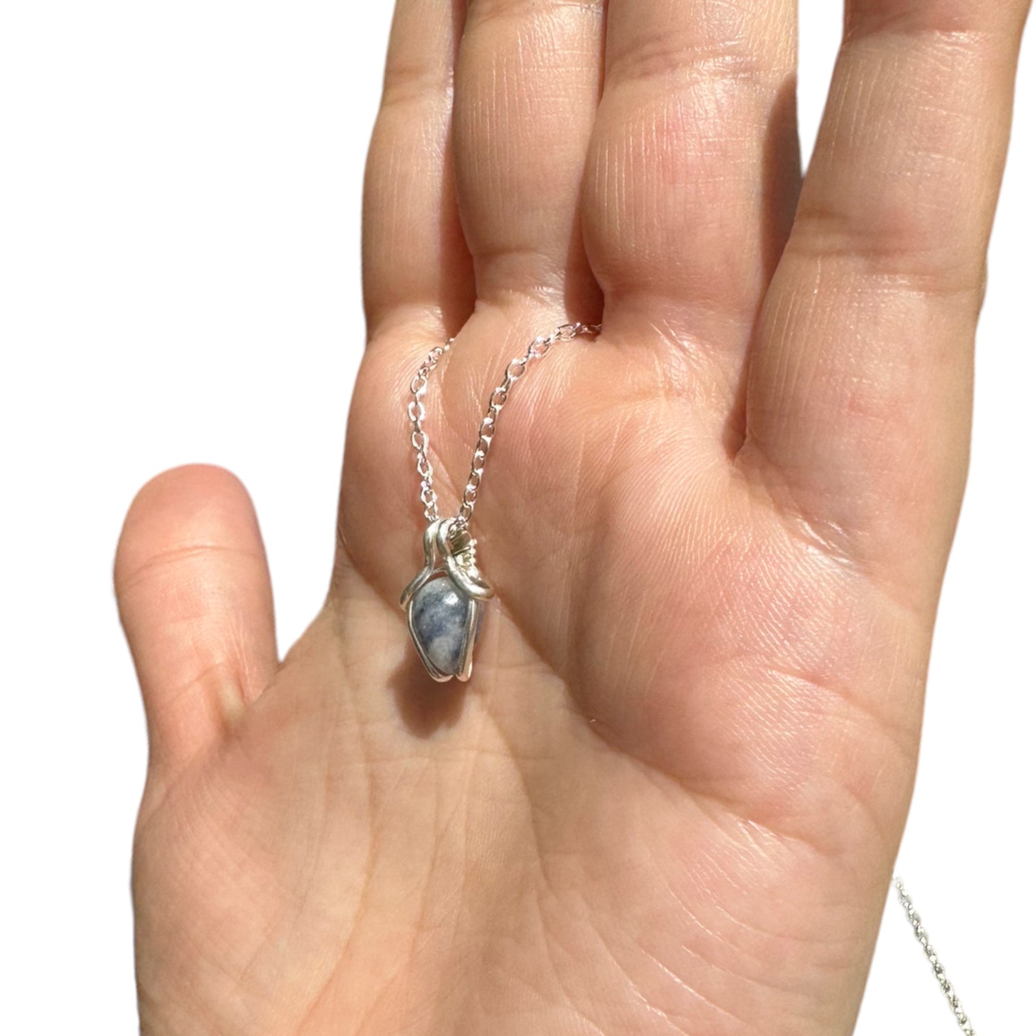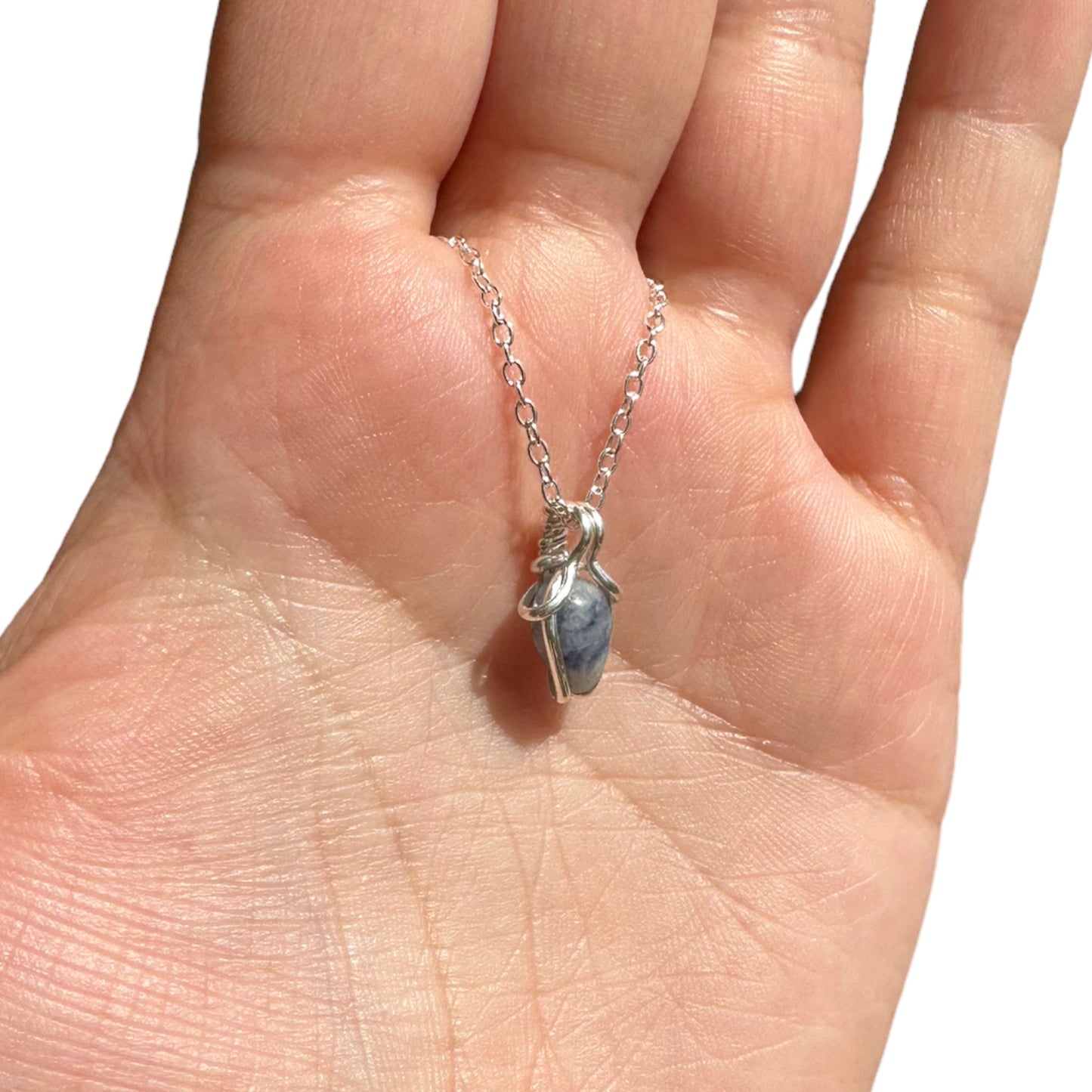 Sterling Silver | 14KT Gold Filled Mini Teardrop Sodalite Wire Wrapped Wishbone Pendant