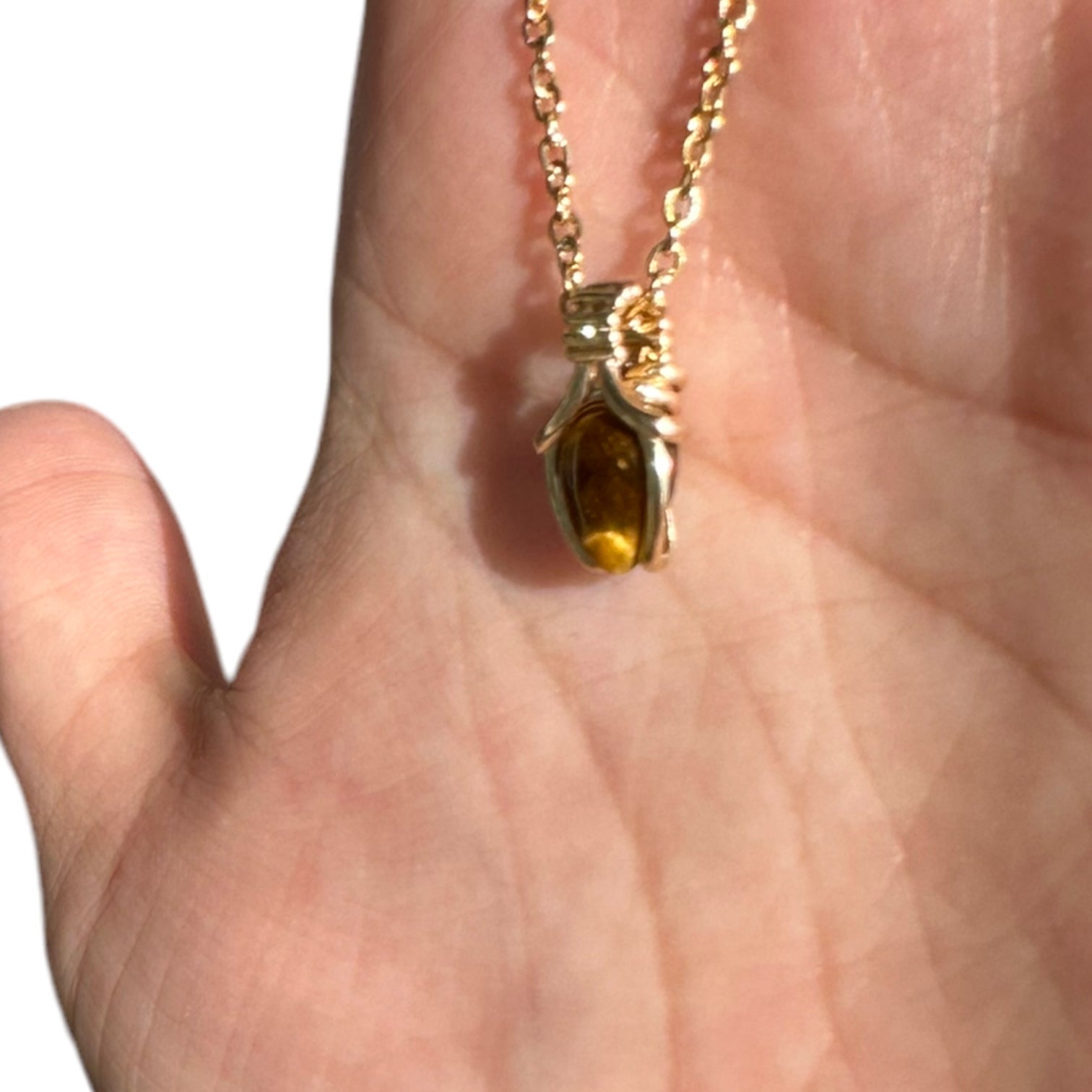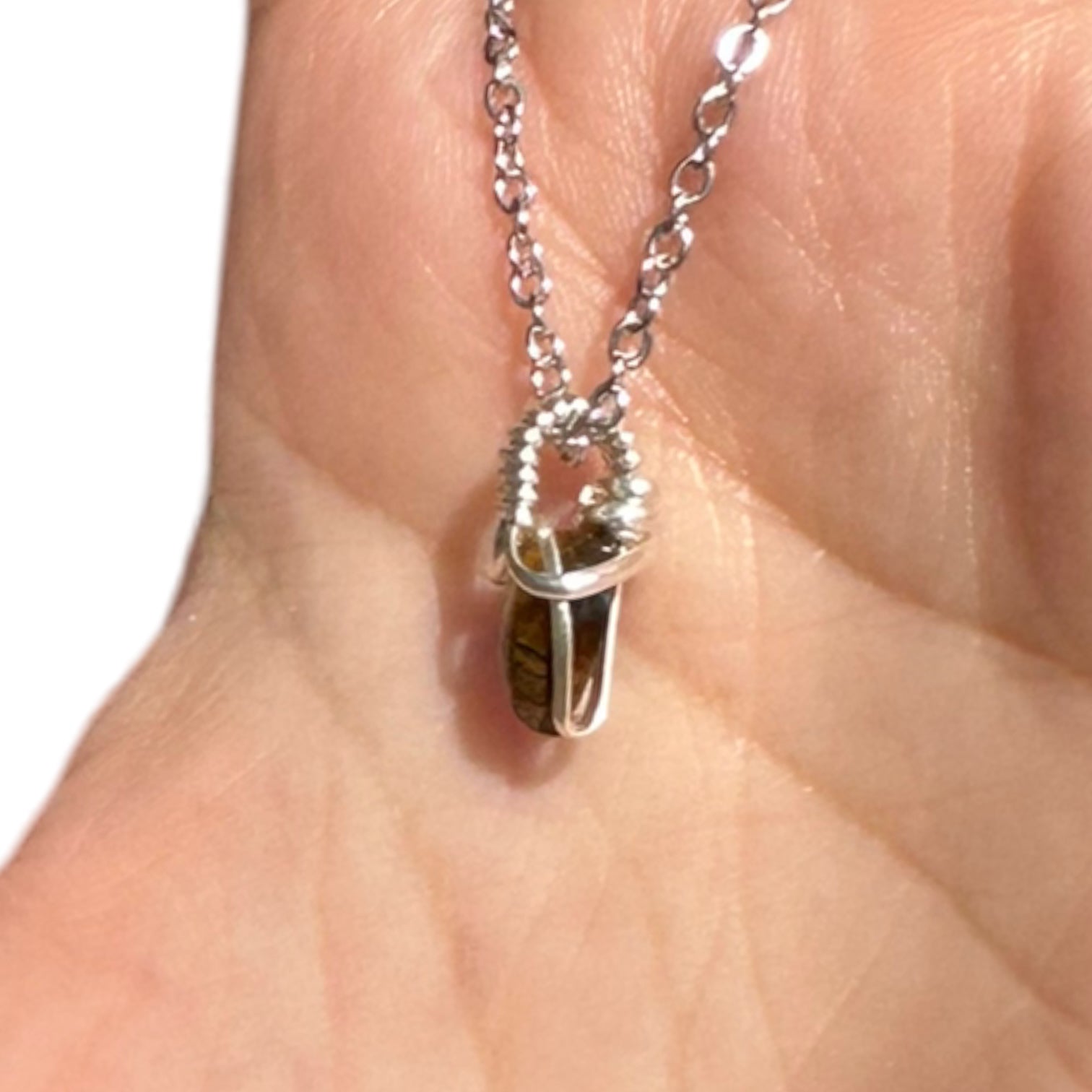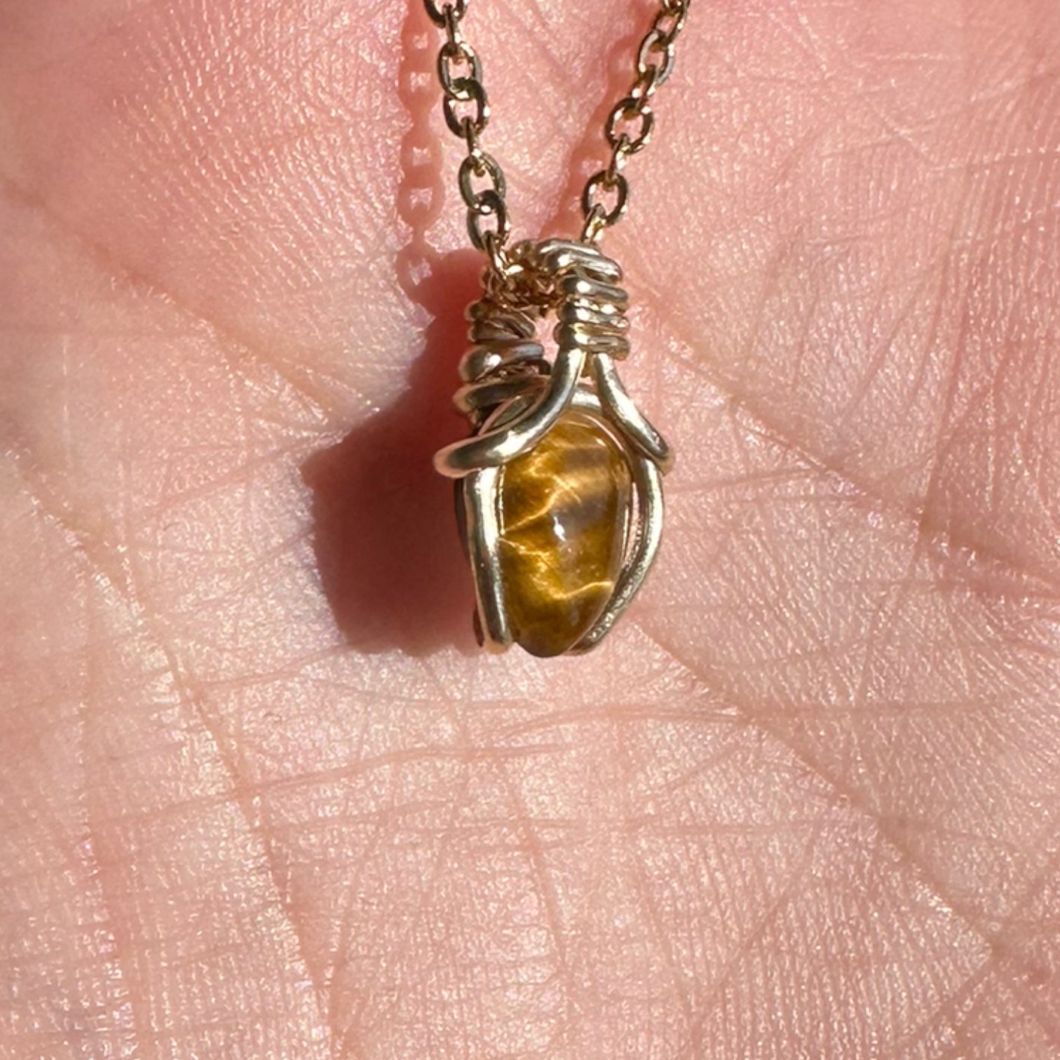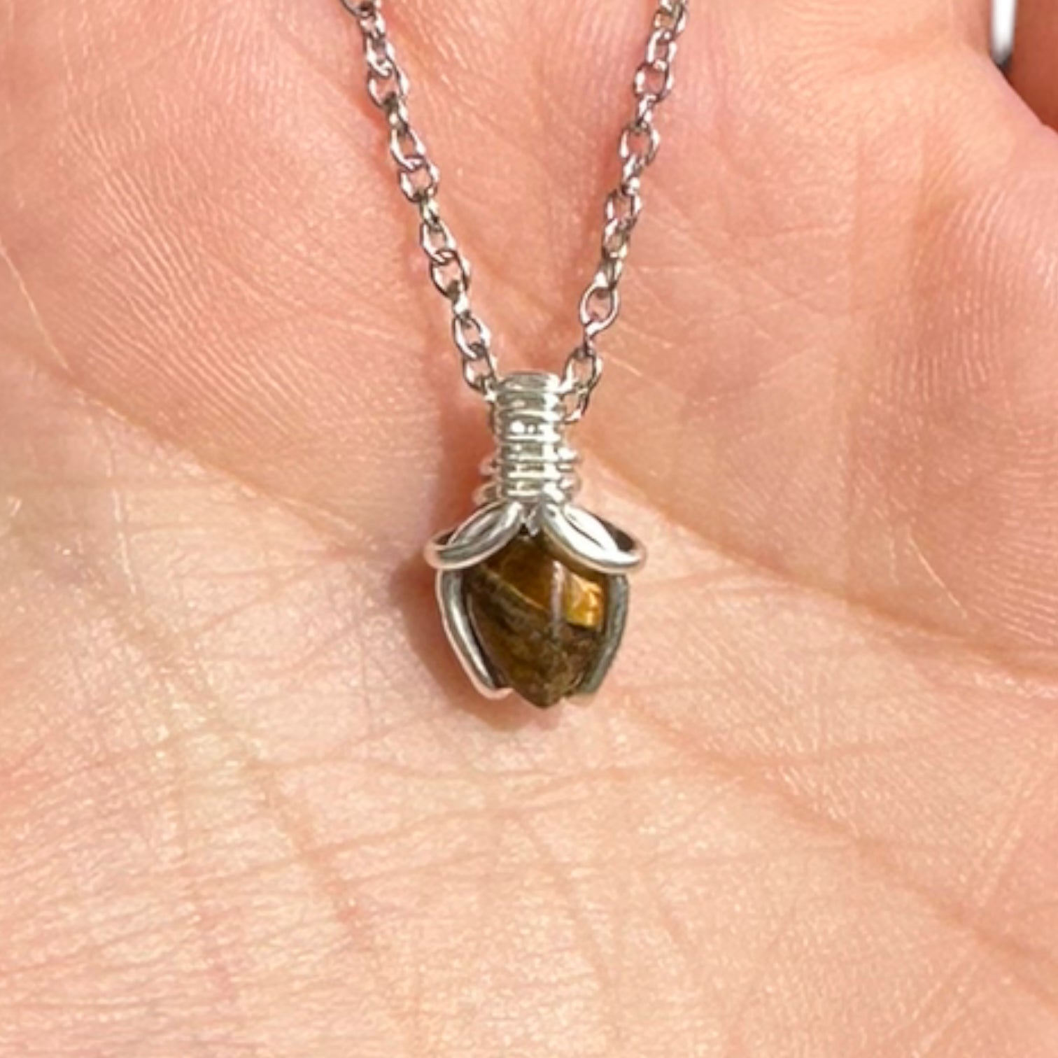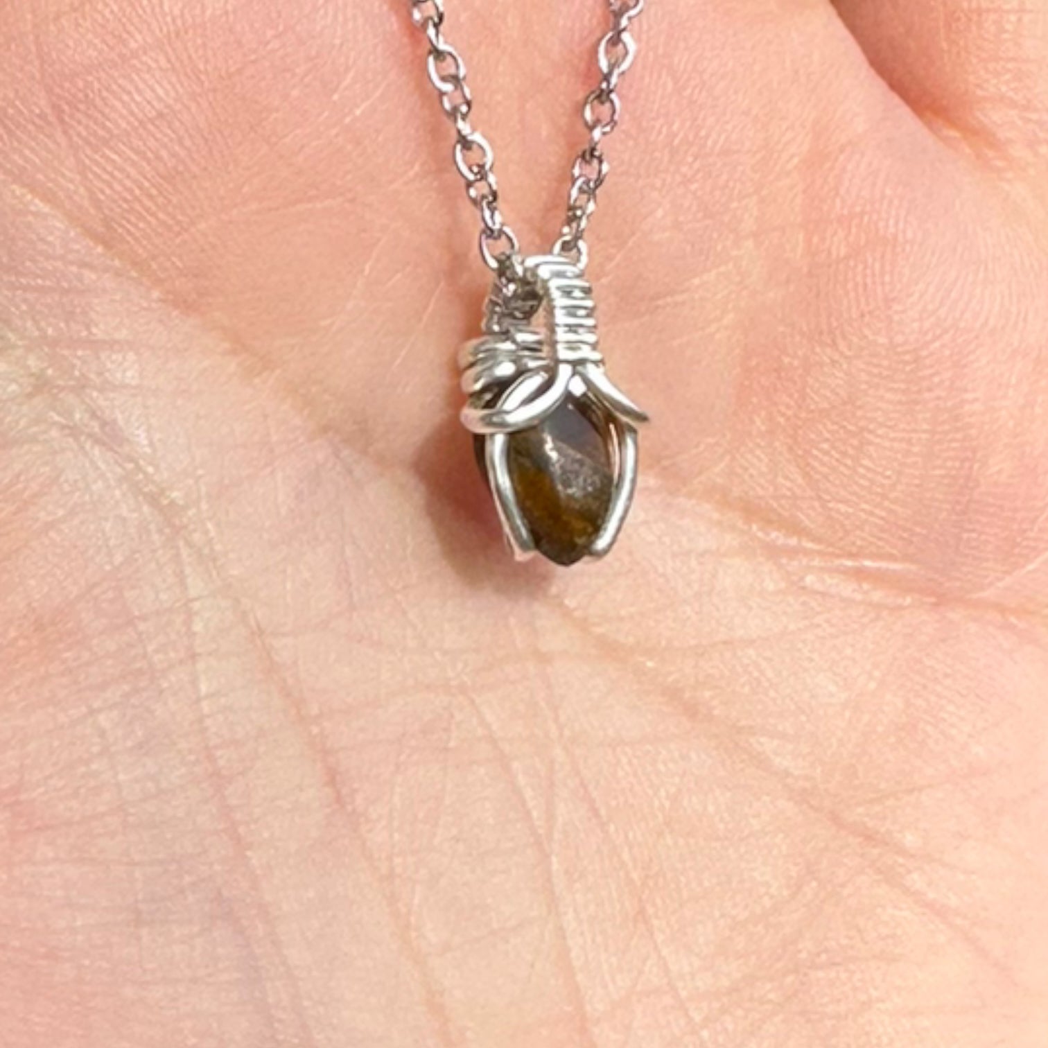 Sterling Silver | 14KT Gold Filled Mini Teardrop Tiger's Eye Wishbone Wire Wrapped Pendant