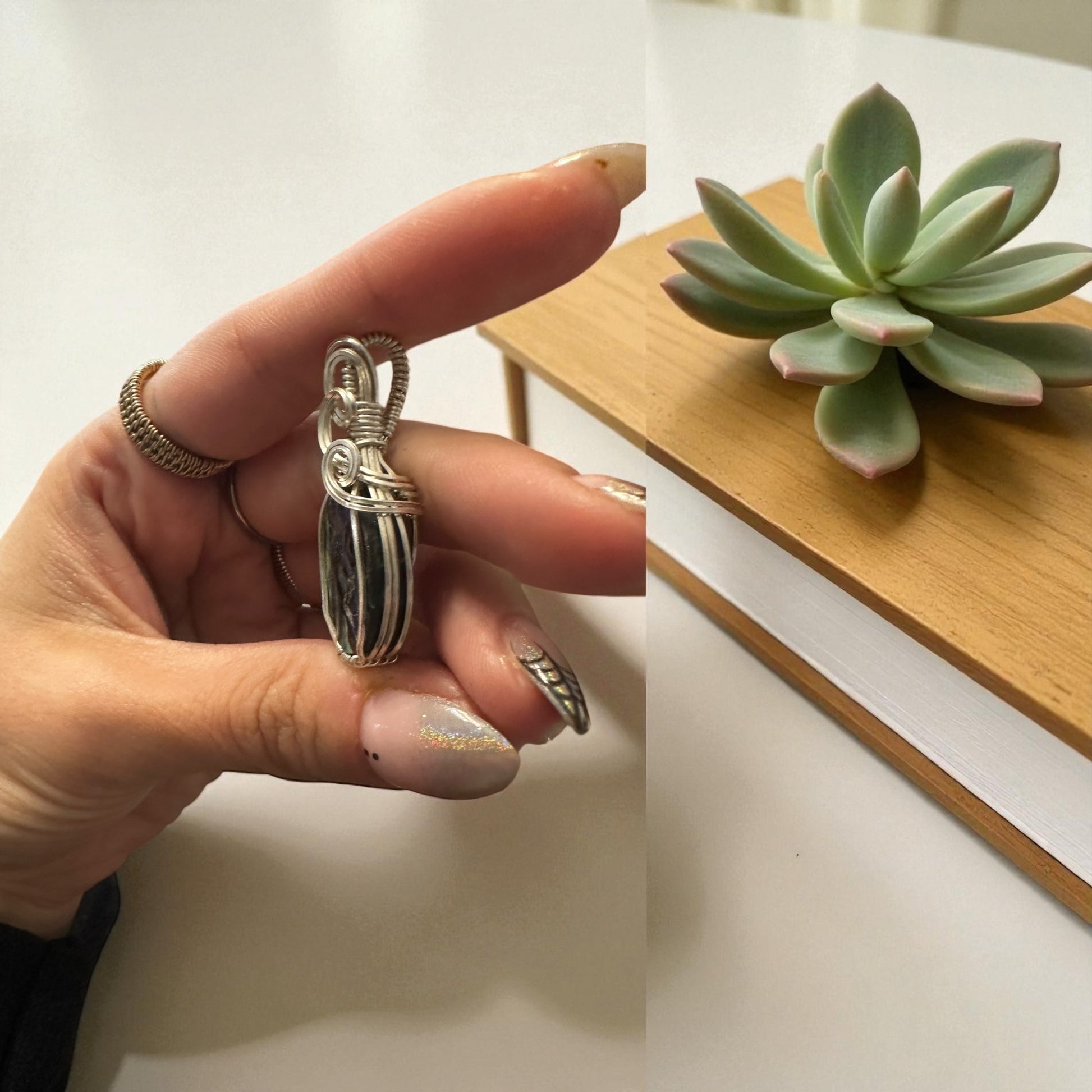 Sterling Silver Wire Wrapped Abalone Shell Crystal Bezel Pendant