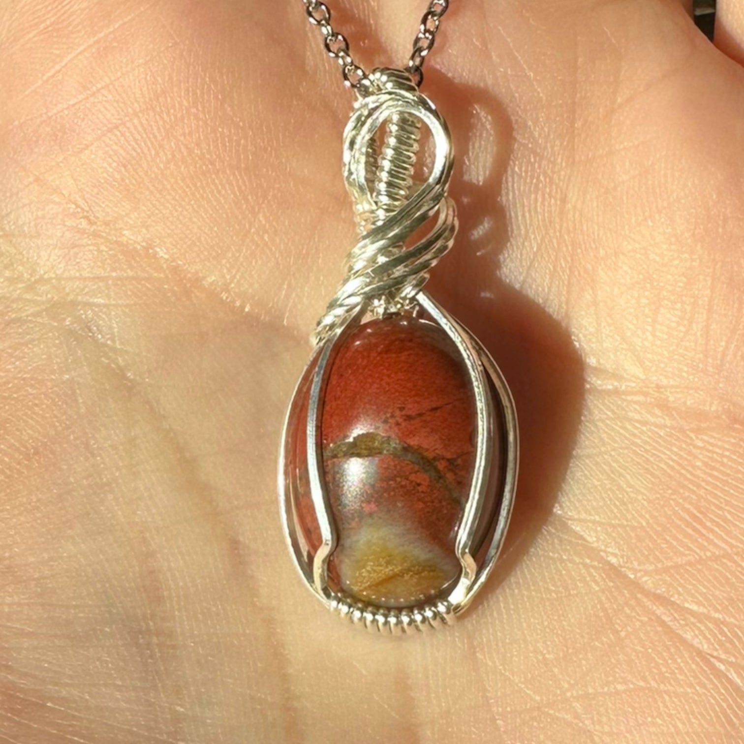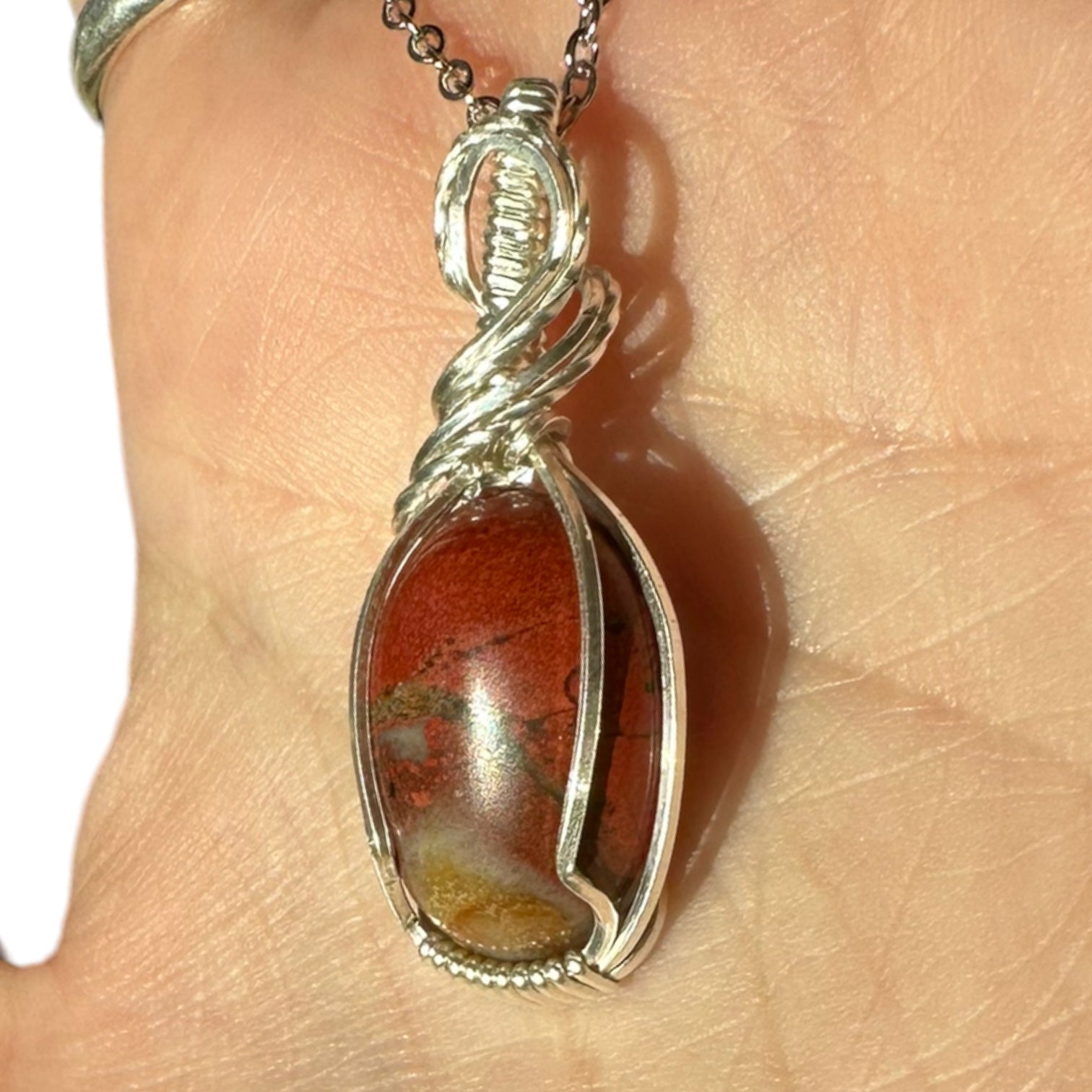 Sterling Silver Wire Wrapped Bloodstone Crystal Bezel Pendant