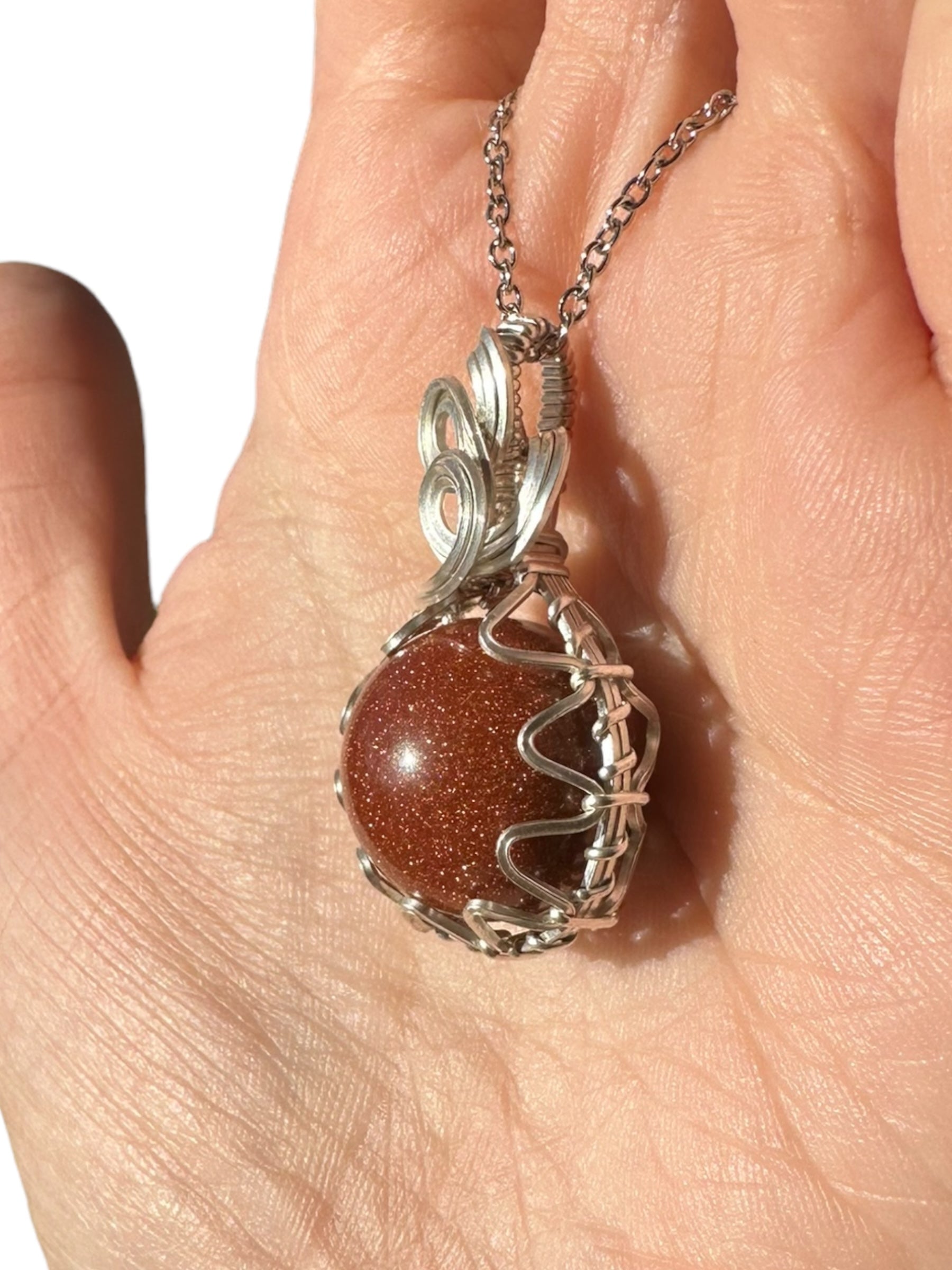 Sterling Silver | 14KT Gold Filled Wire Wrapped Goldstone Crystal Fidget Bezel Pendant