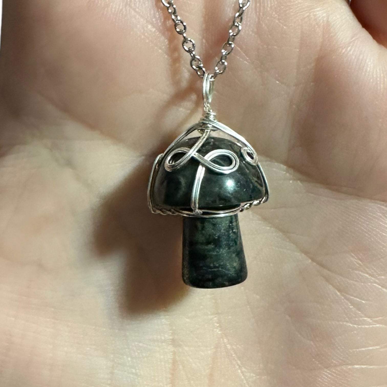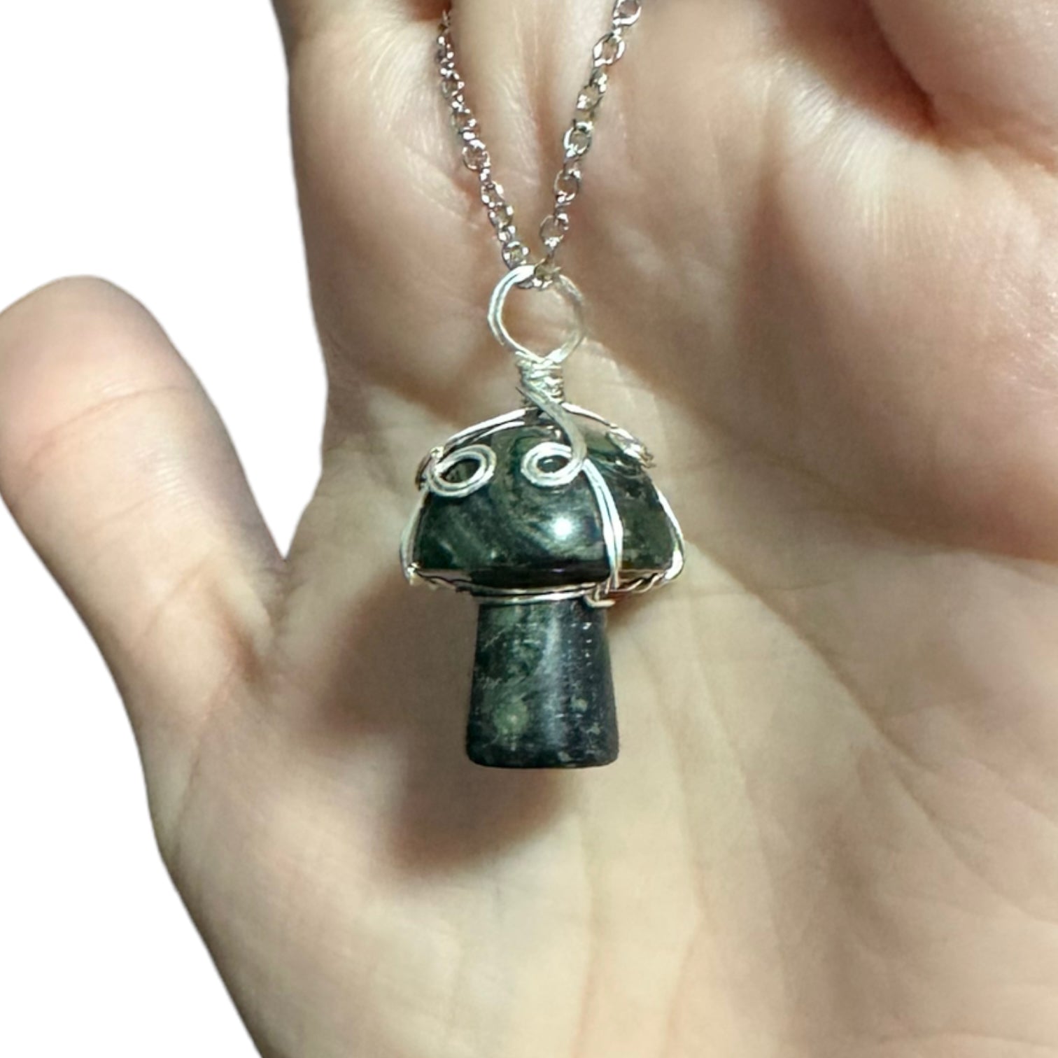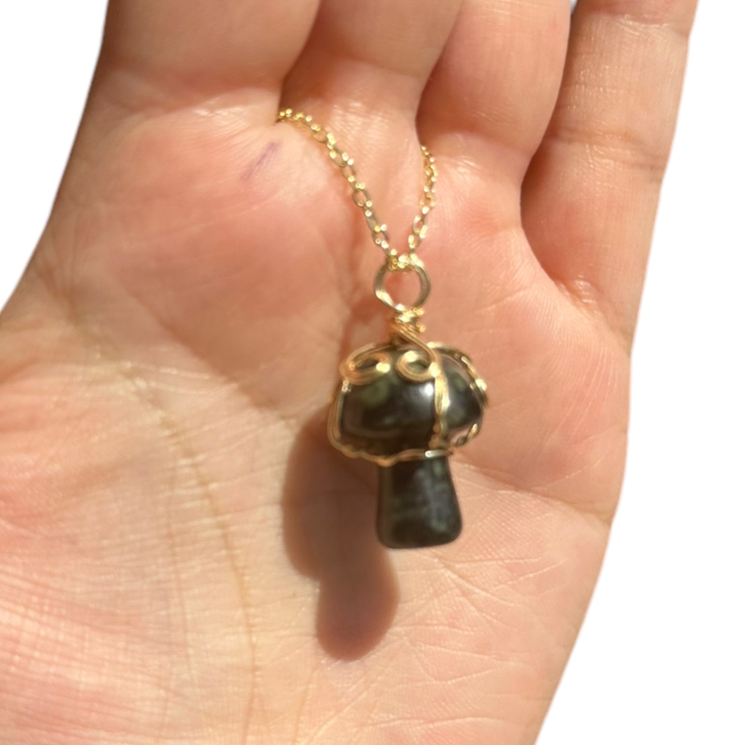 Sterling Silver | 14KT Gold Filled Wire Wrapped Kambaba Jasper Crystal Mushroom Pendant