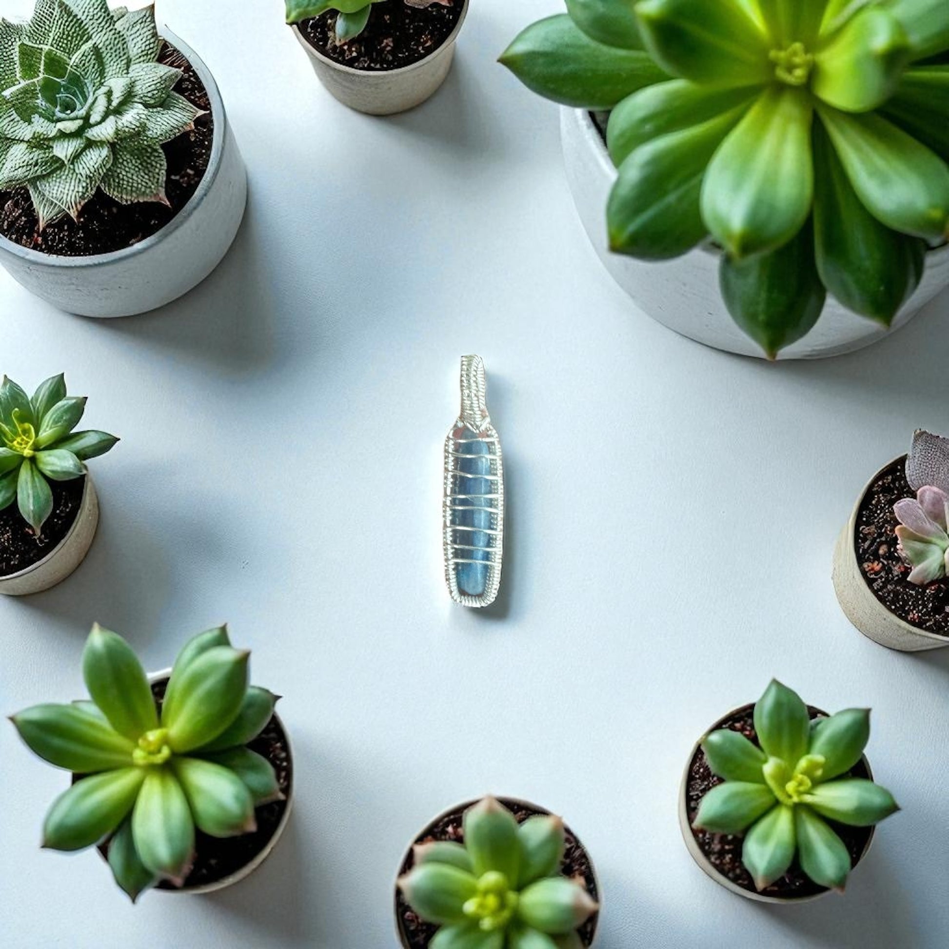 Sterling Silver Wire Wrapped Kyanite Crystal Pendant
