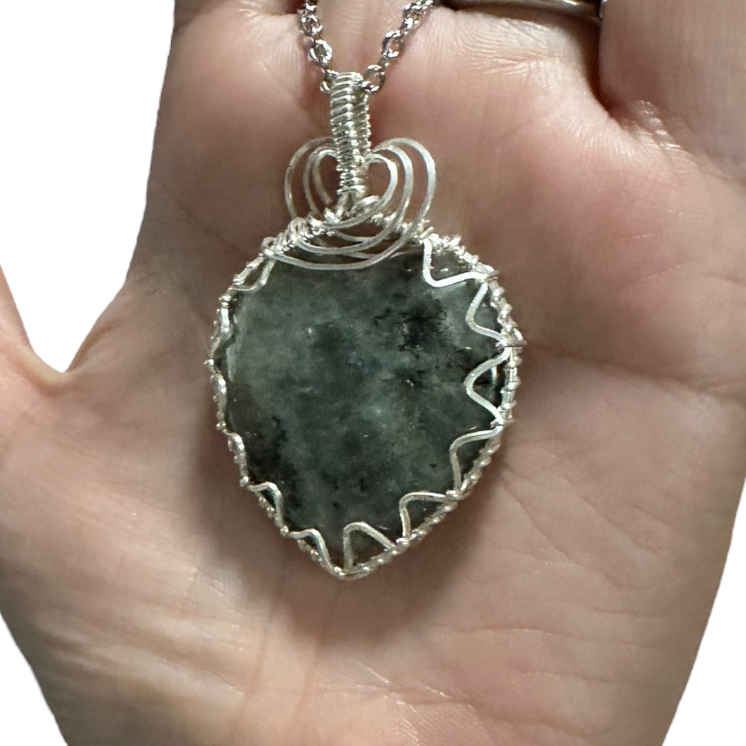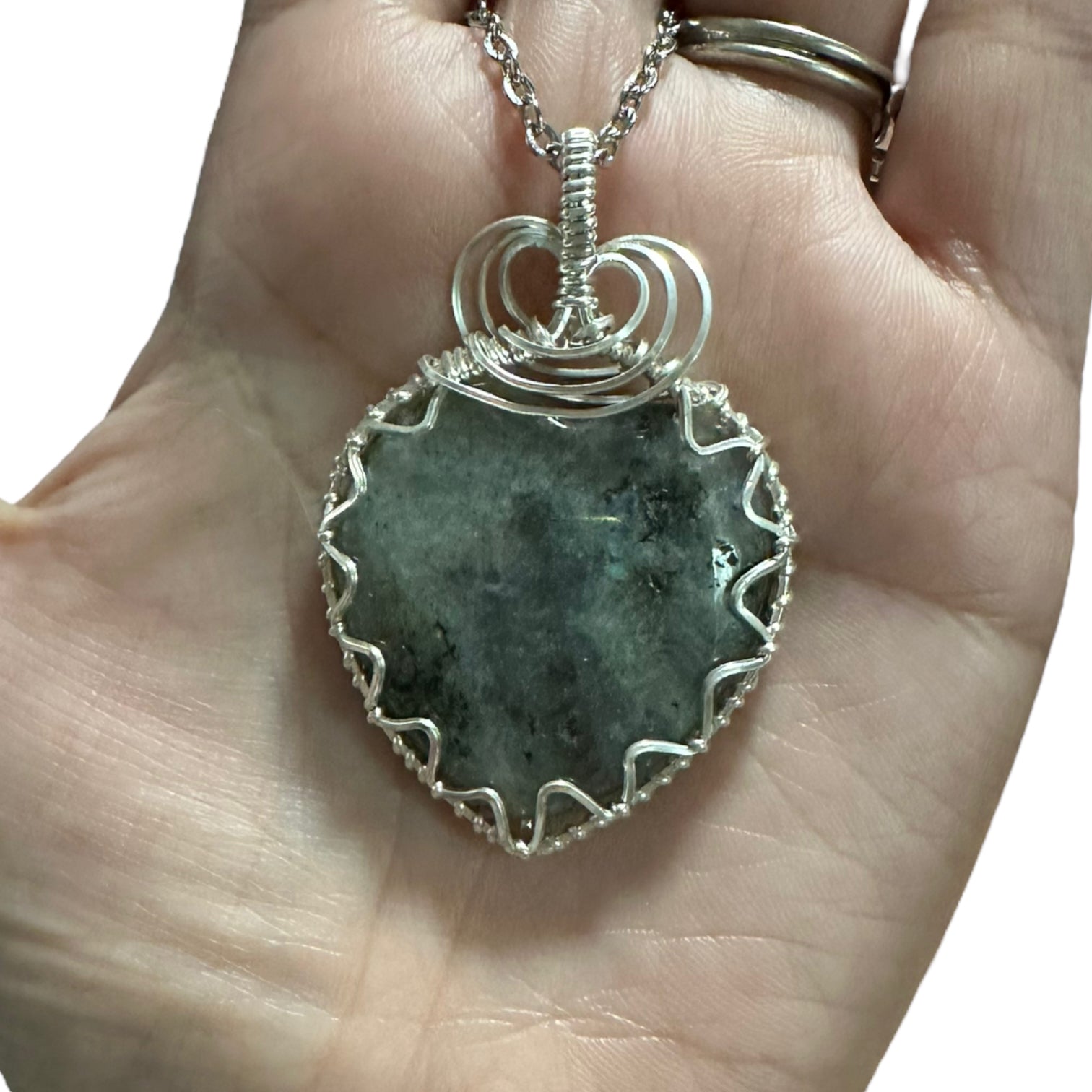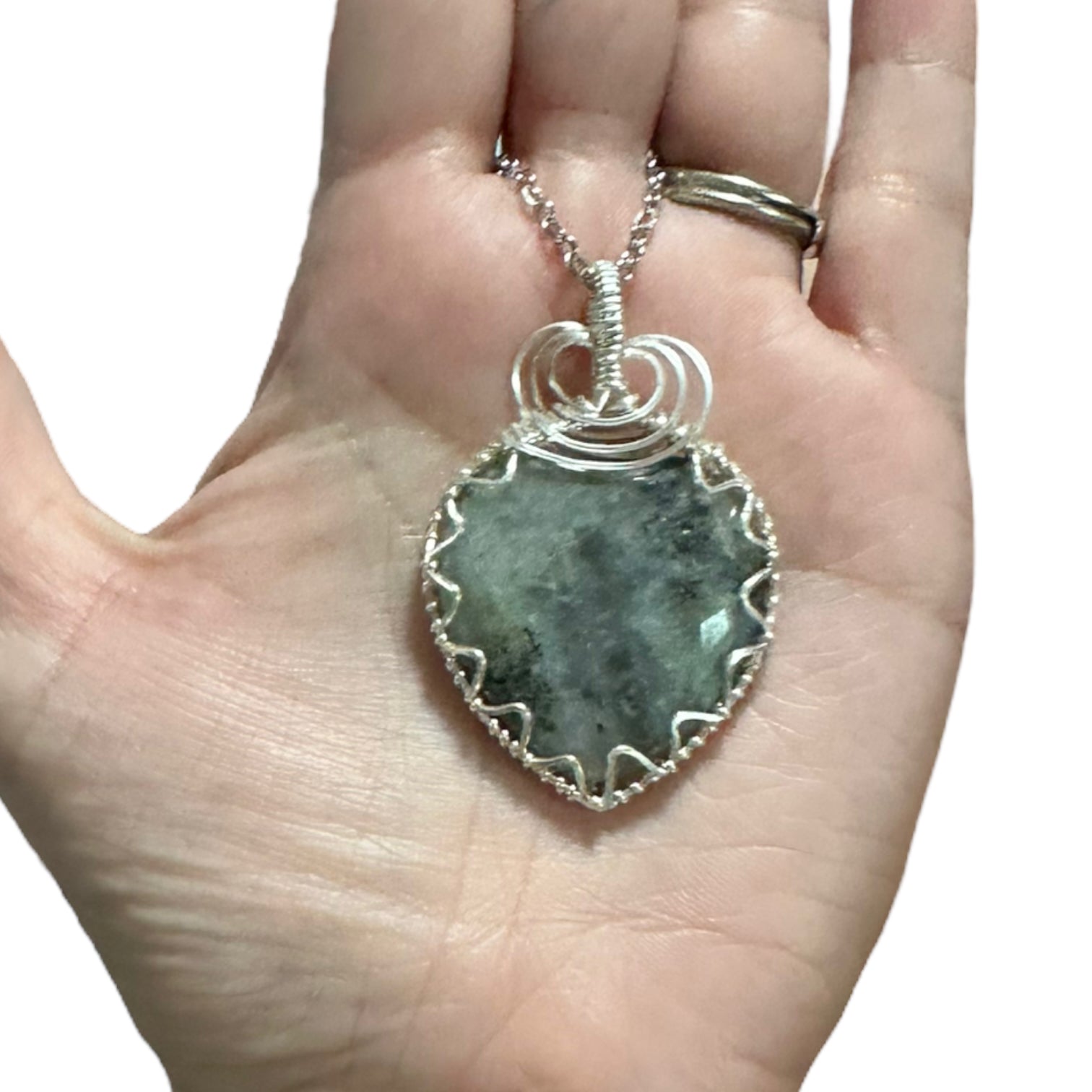 Sterling Silver Wire Wrapped Labradorite Heart Crystal Triangle Bezel Pendant