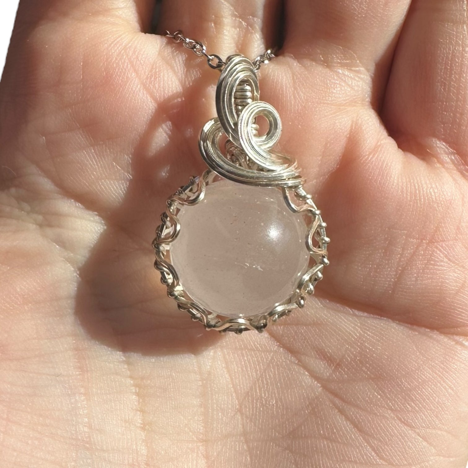 Sterling Silver | 14KT Gold Filled Wire Wrapped Rose Quartz Crystal Fidget Bezel Pendant