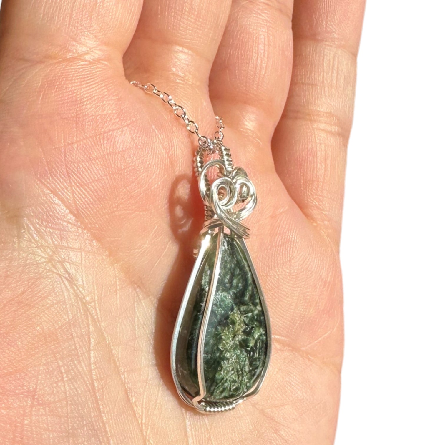 Sterling Silver Wire Wrapped Seraphinite Crystal Bezel Pendant