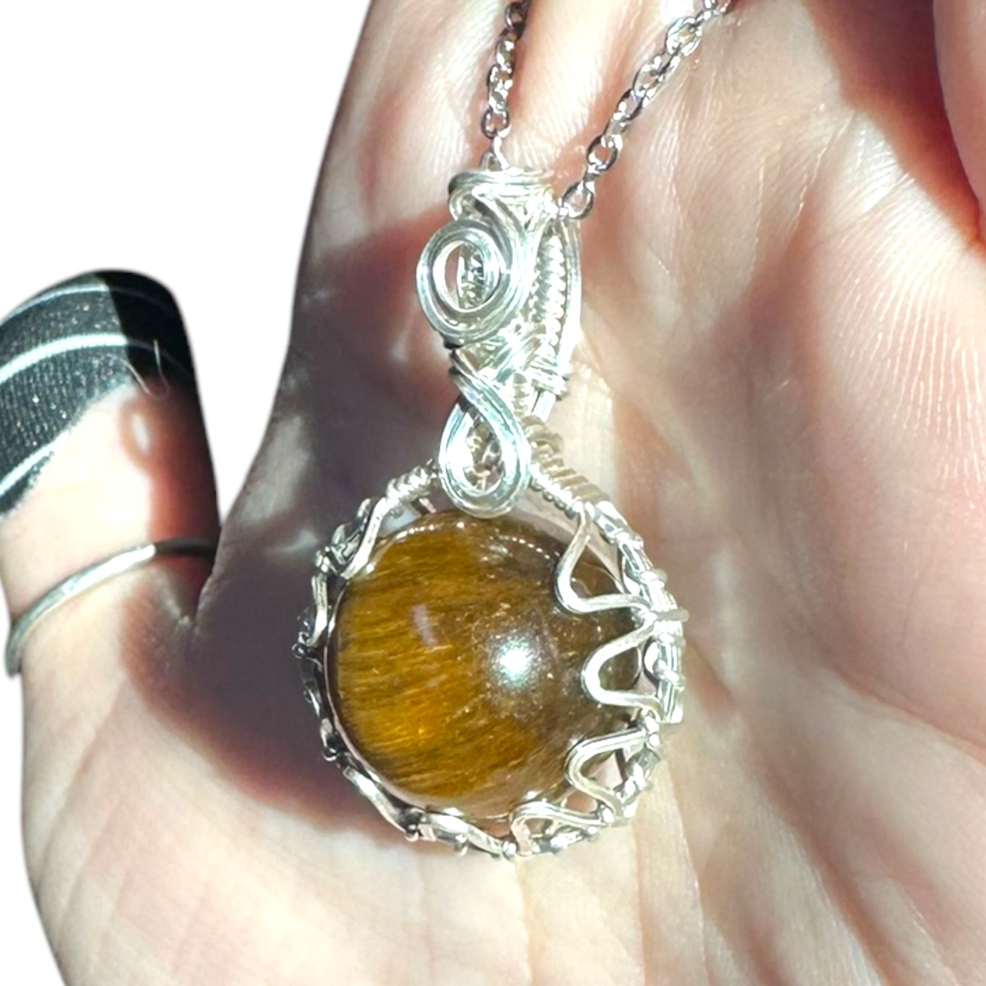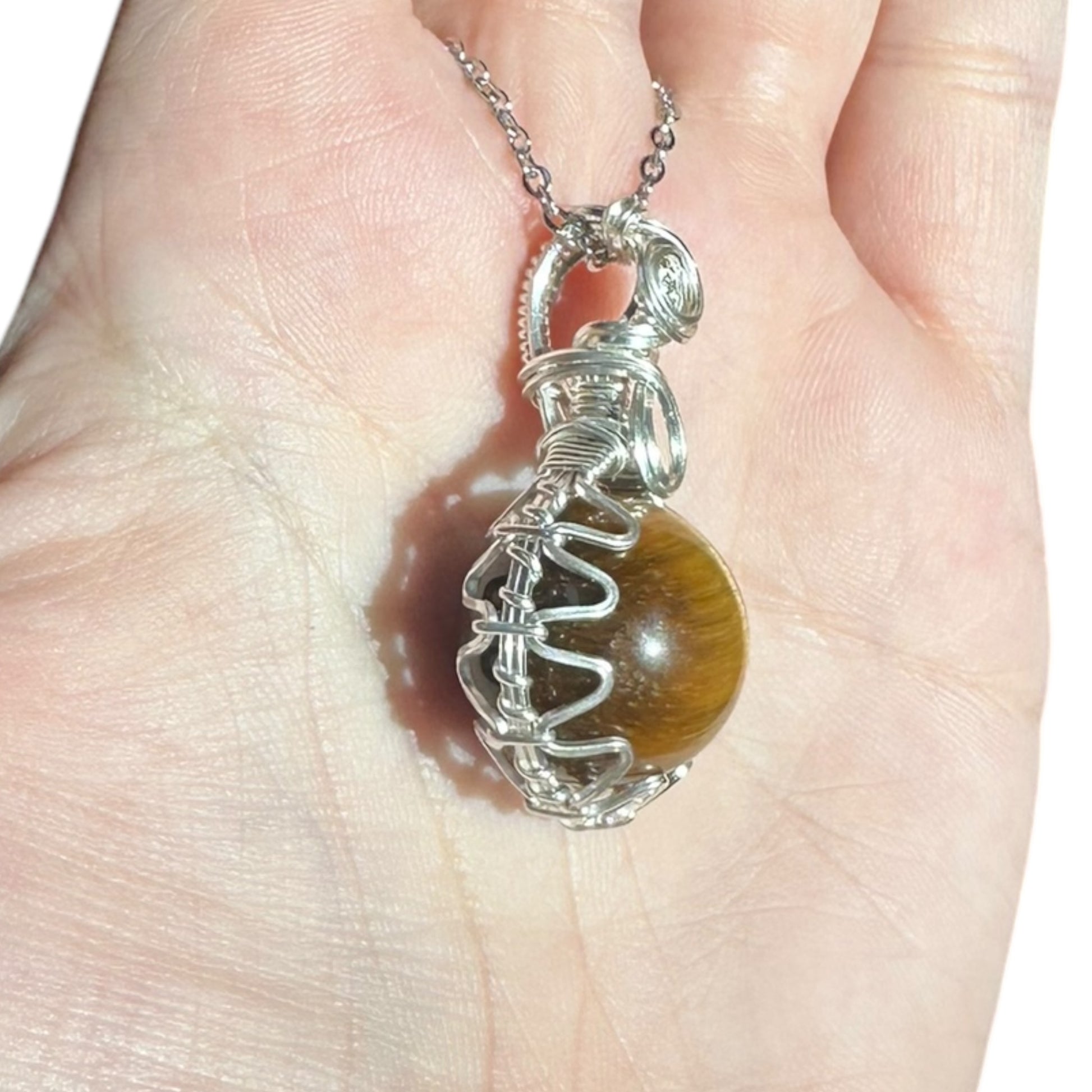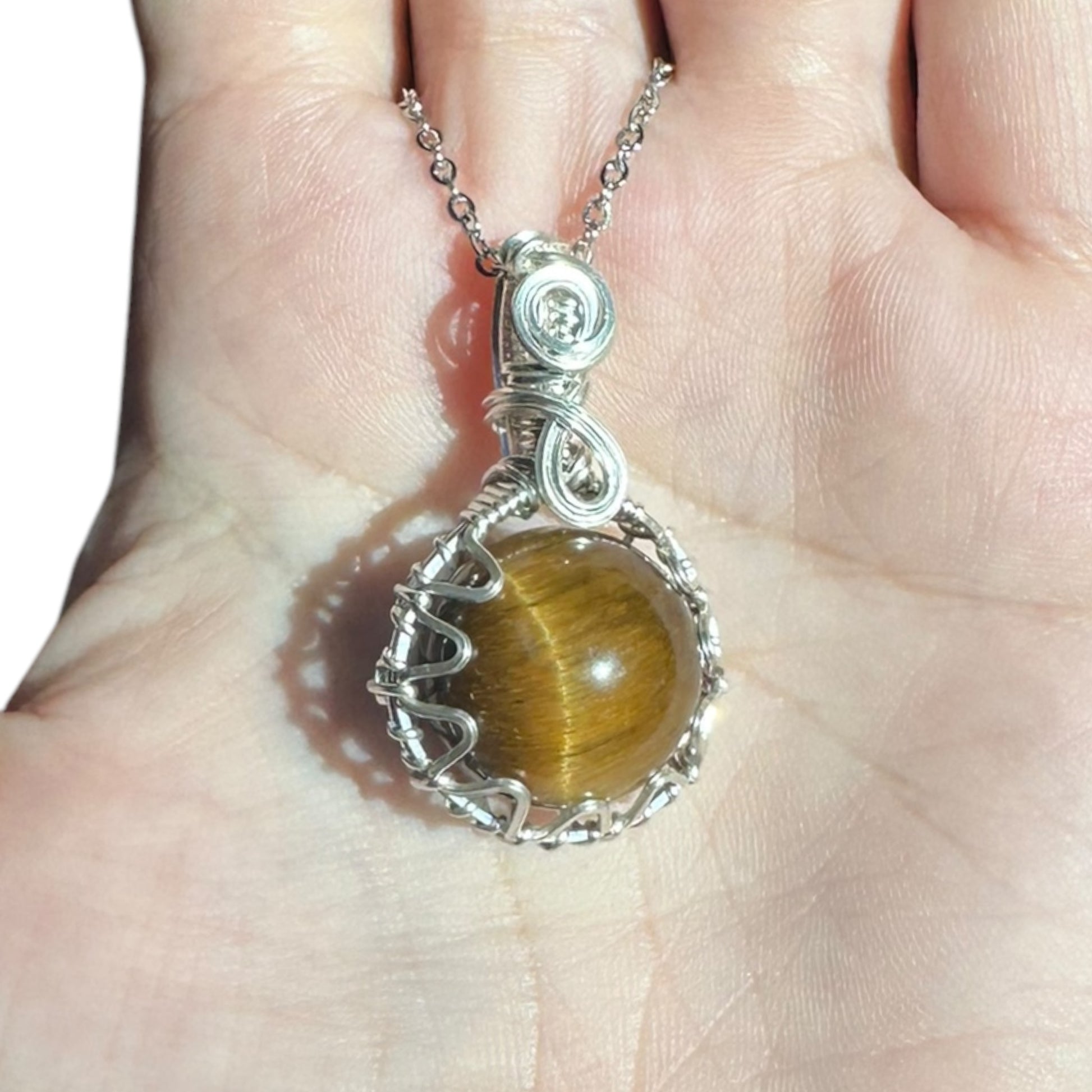 Sterling Silver |14KT Gold Filled Wire Wrapped Tiger's Eye Crystal Fidget Bezel Pendant