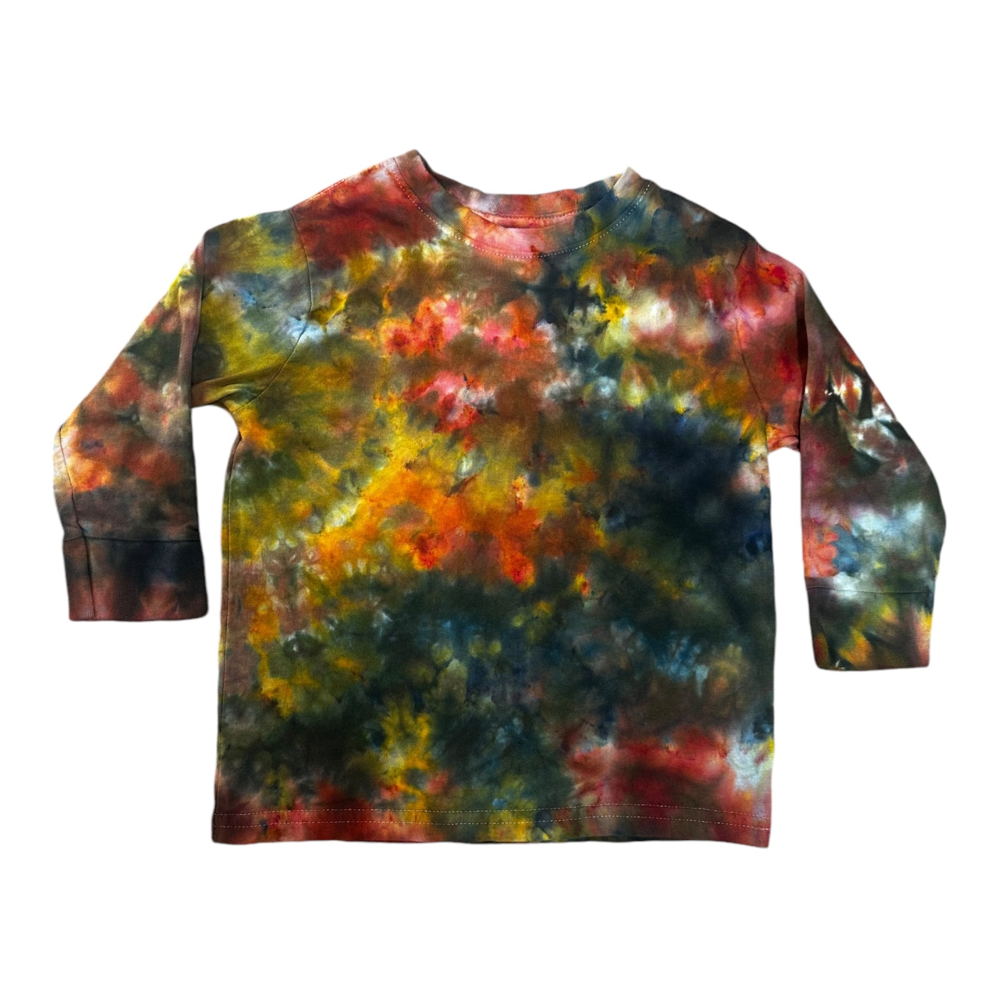 Toddler 3T Black Yellow and Red Scrunch Ice Dye Tie Dye Long Sleeve Shirt