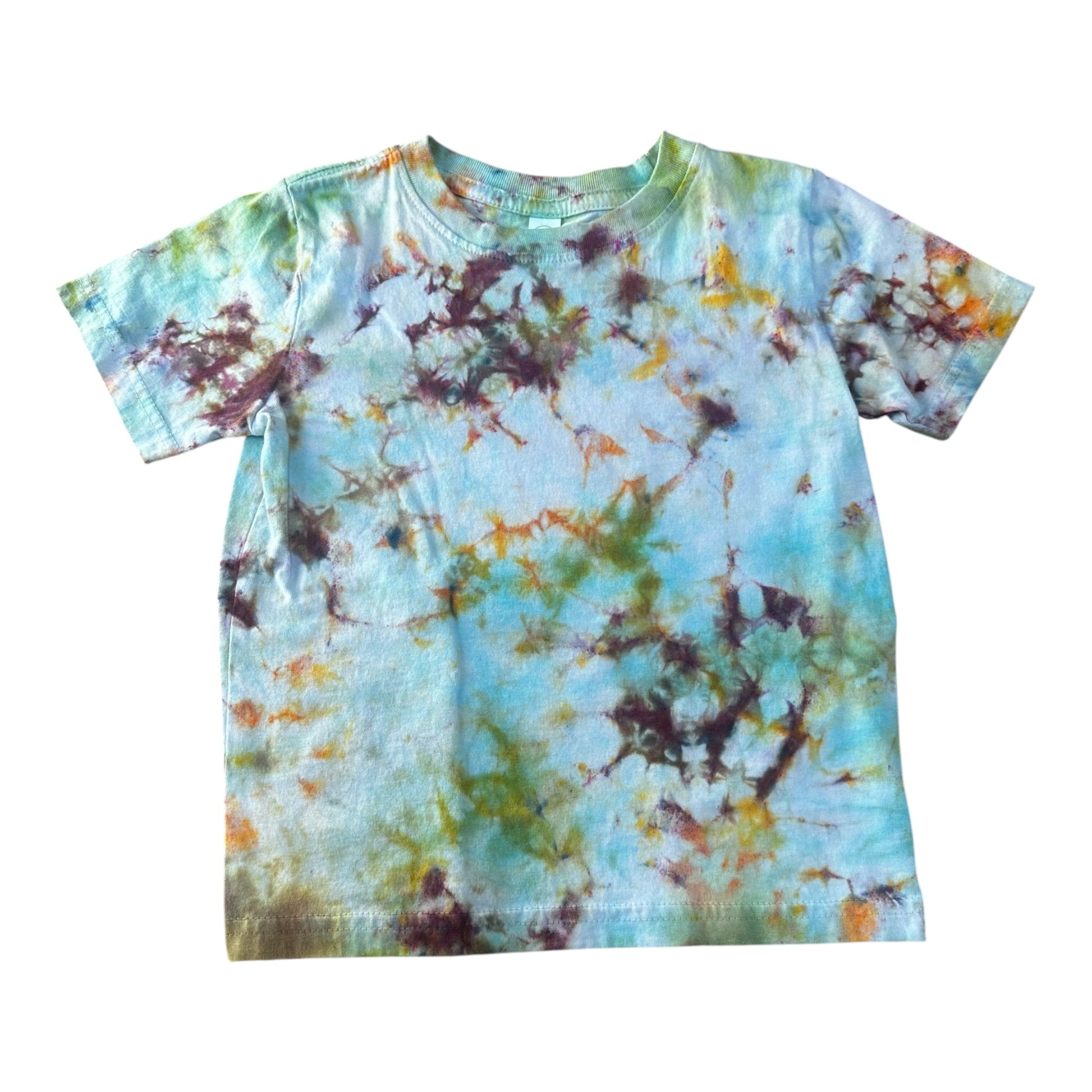 Toddler 3T Brown Yellow Blue and Green Scrunch Ice Dye Tie Dye