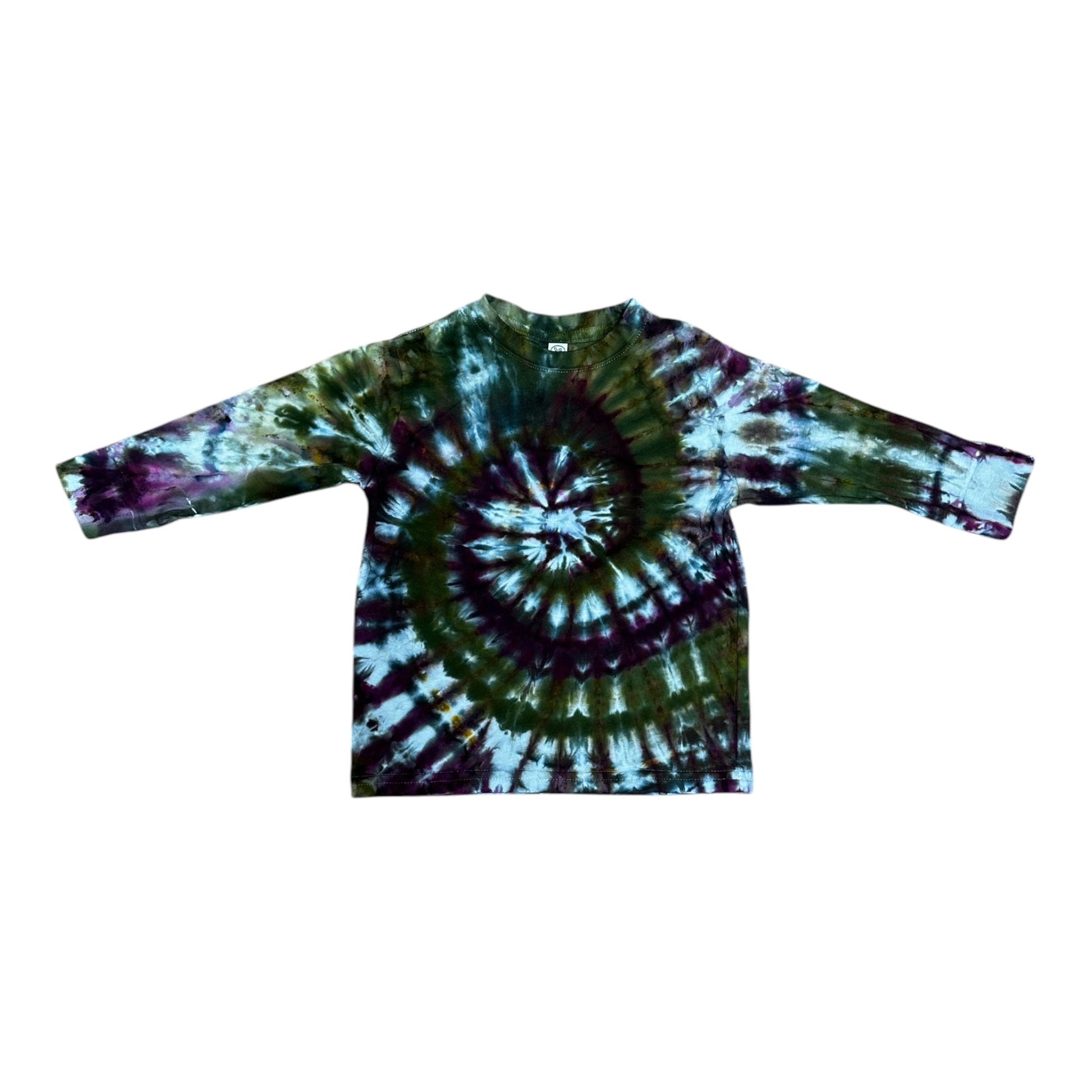 Toddler 3T Black Cherry and Green Spiral Ice Dye Tie Dye Long Sleeve Shirt