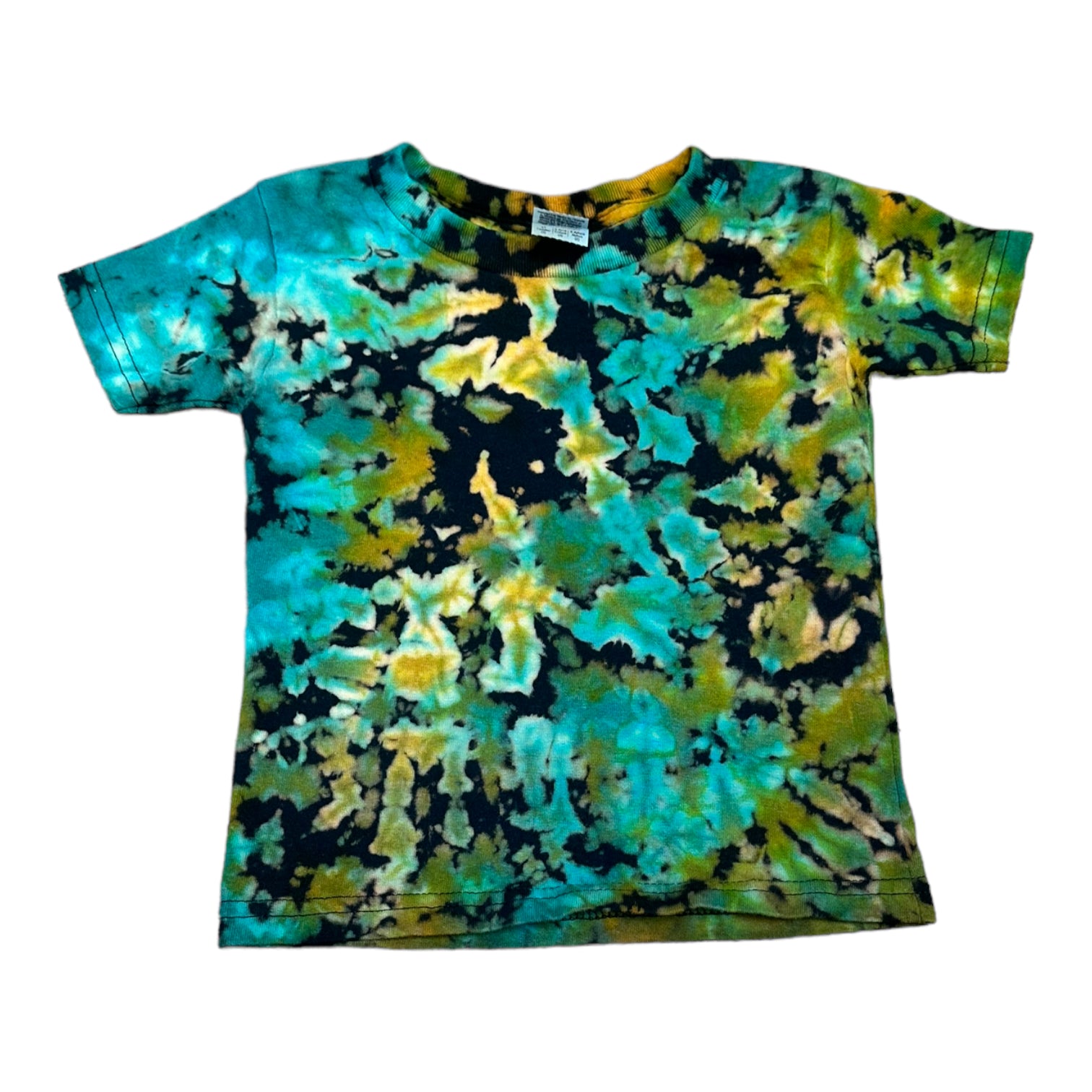 Toddler 3T Turquoise Blue Green and Yellow Scrunch Reverse Tie Dye Shirt