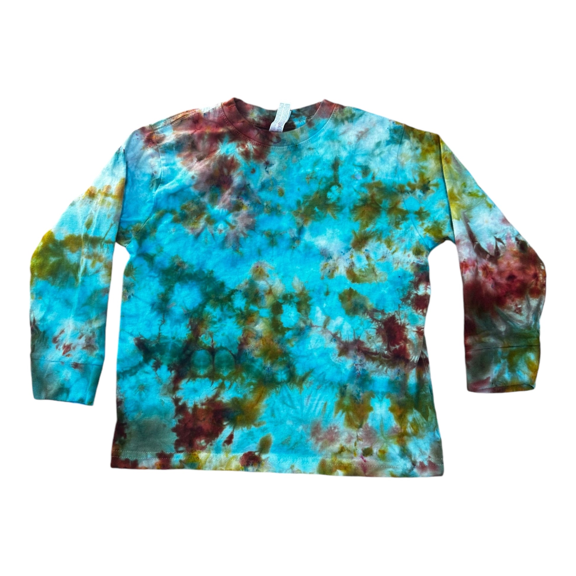 Toddler 5T Blue Brown Green and Yellow Scrunch Ice Dye Tie Dye Long Sleeve Shirt