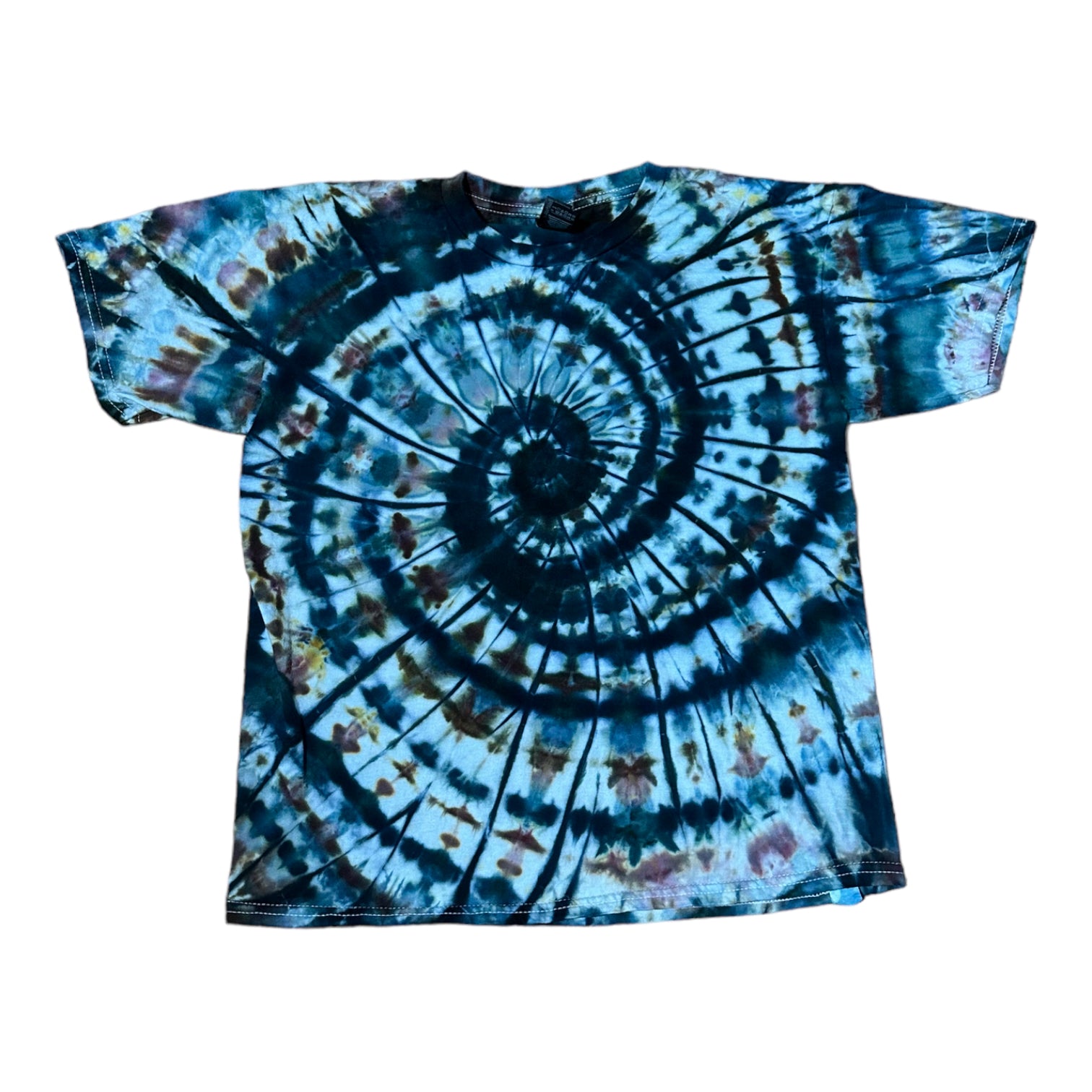 Youth Large Blue Brown and Black Spiral Ice Dye Tie Dye