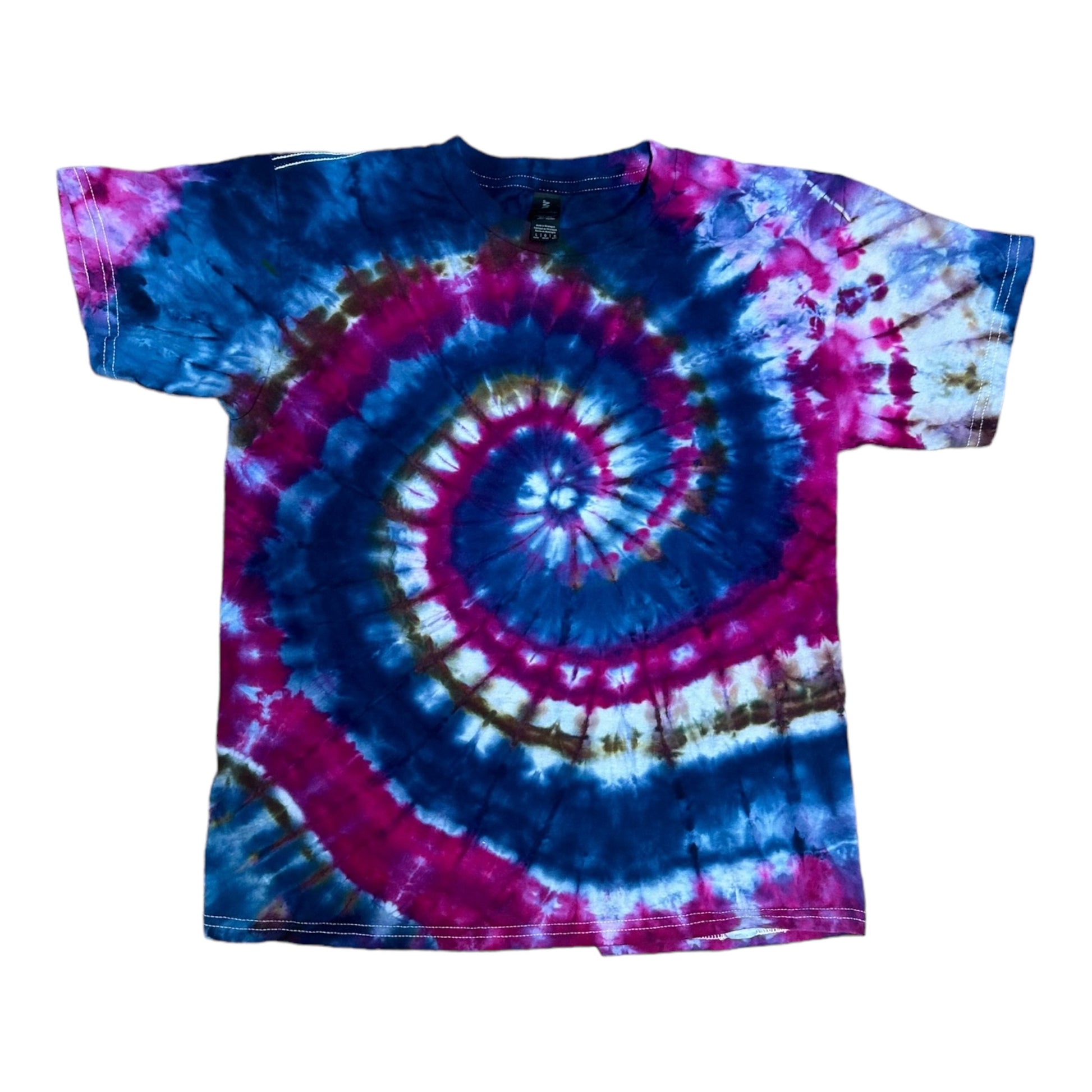 Youth Large Blue Brown and Purple Spiral Ice Dye Tie Dye Shirt