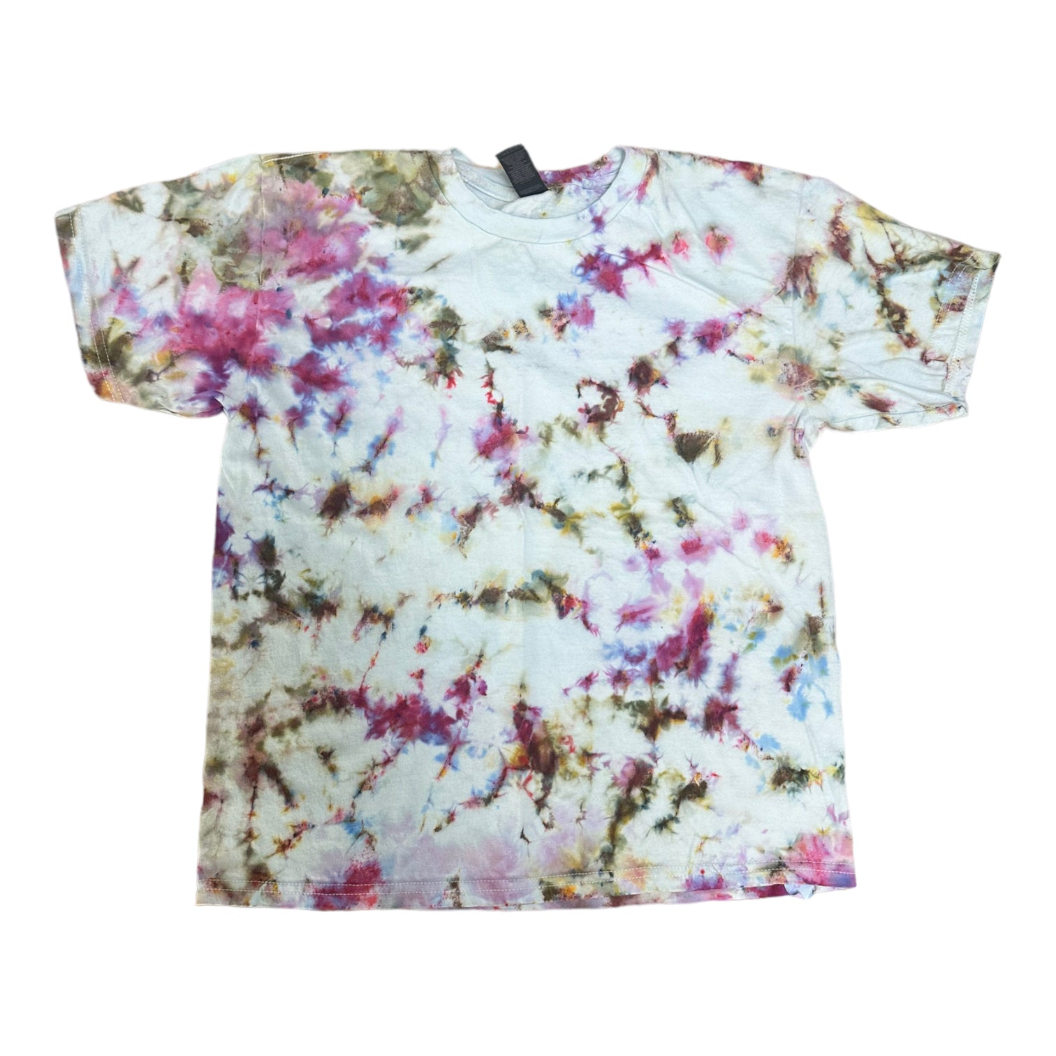 Youth Large Blue Green and Purple Scrunch Ice Dye Tie Dye Shirt