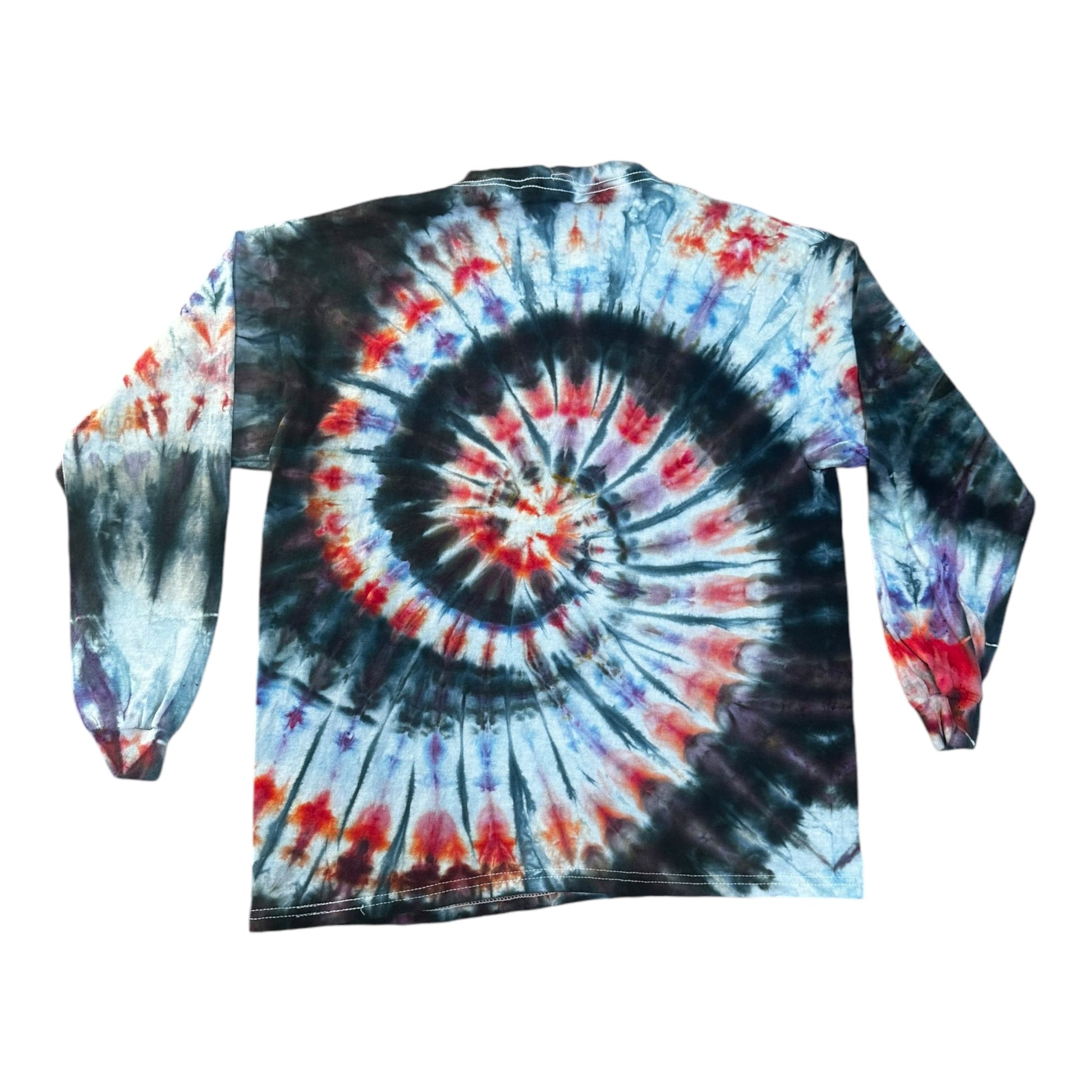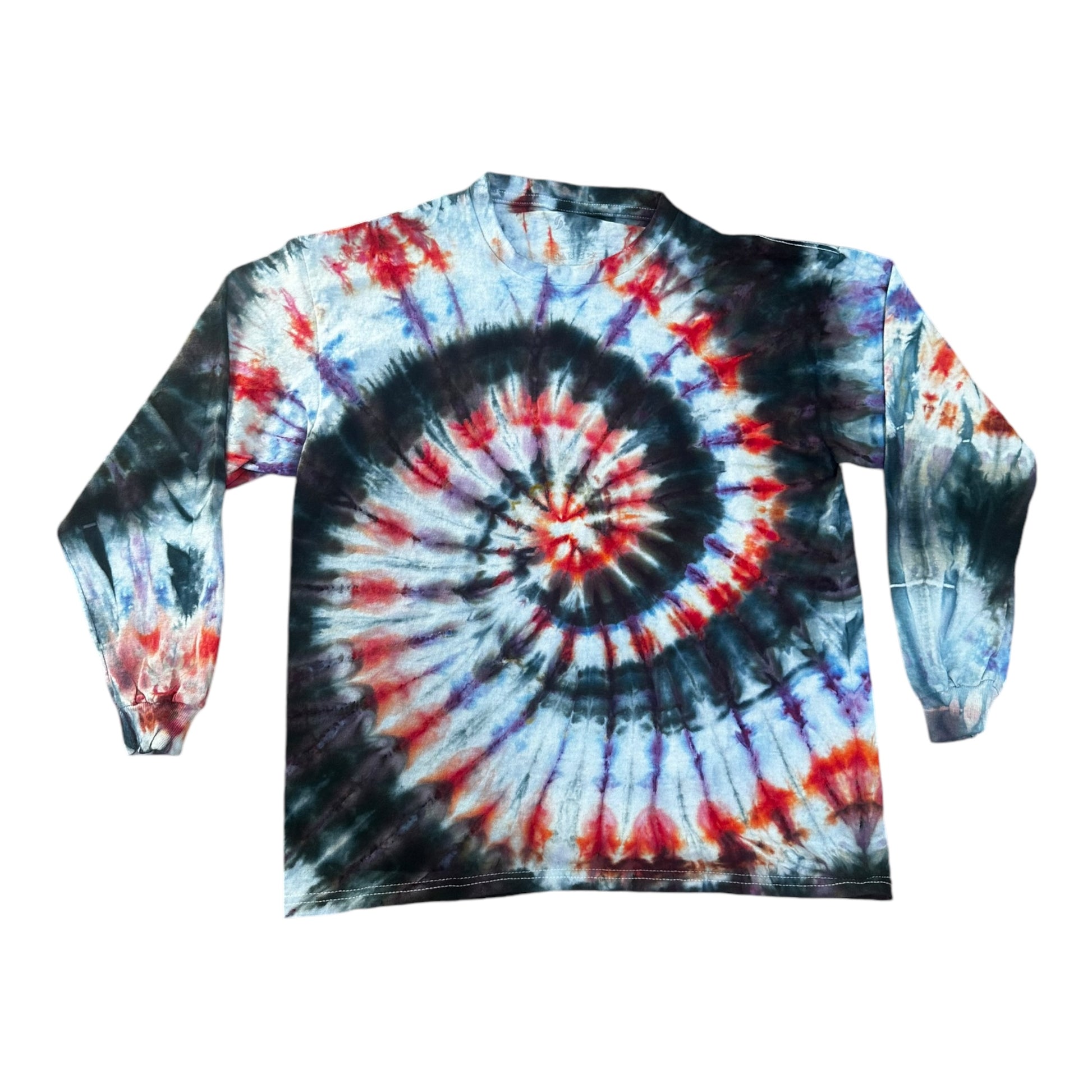 Youth Large Red Blue and Black Scrunch Ice Dye Tie Dye Long Sleeve Shirt