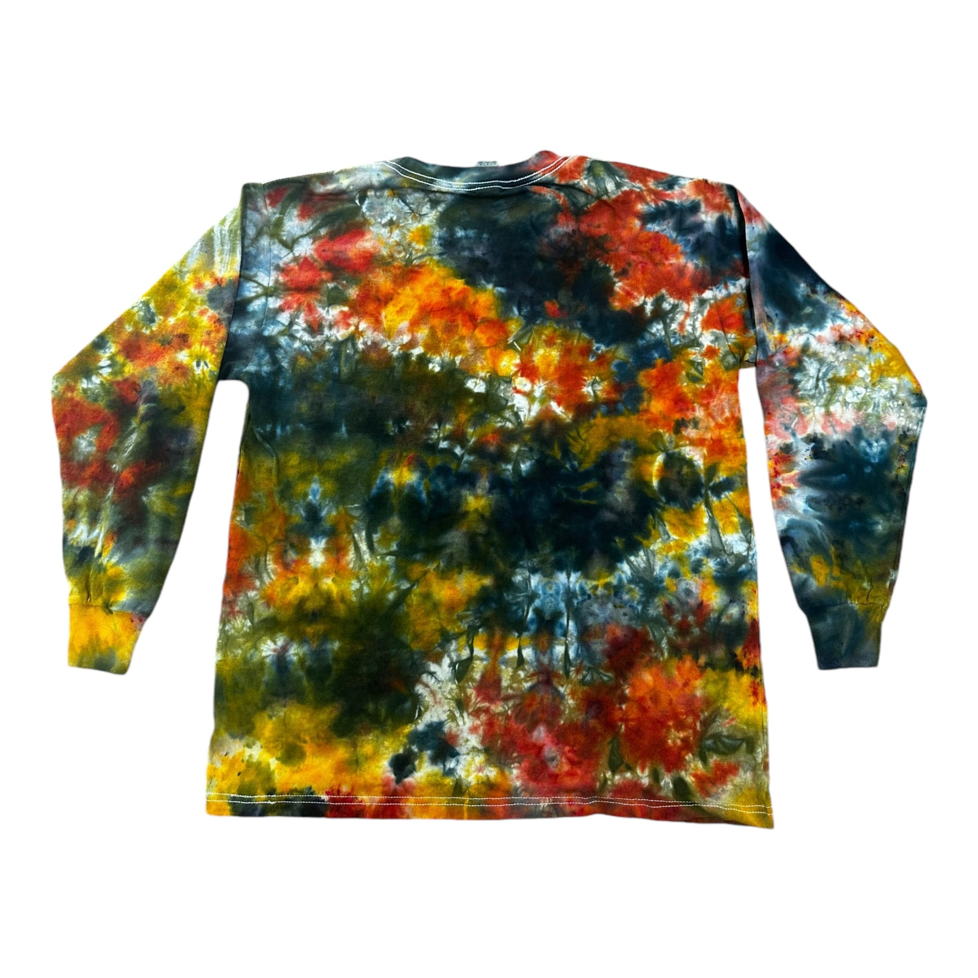 Youth Large Red Golden Yellow and Black Scrunch Ice Dye Tie Dye Long Sleeve Shirt