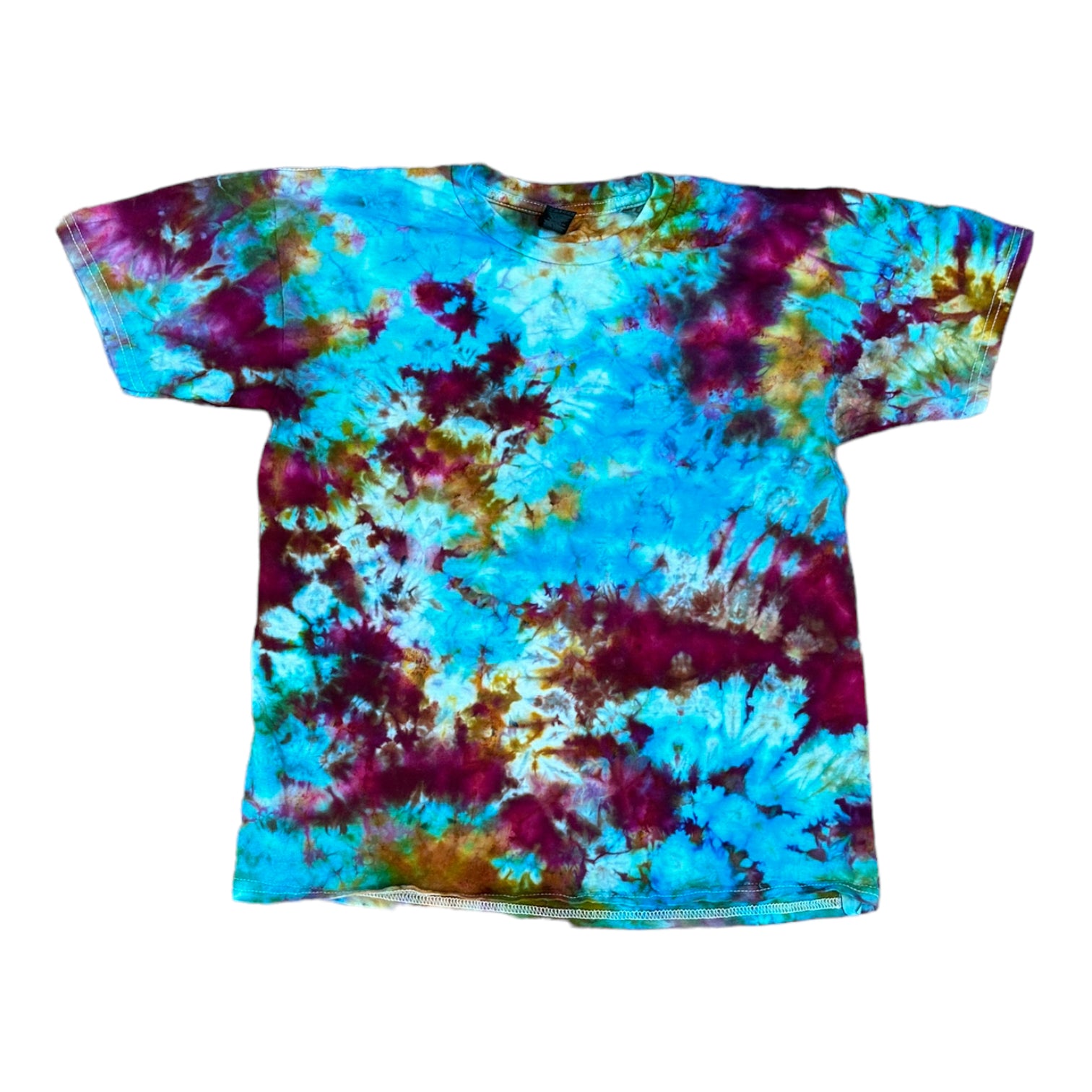 Youth Large Turquoise Fuchsia Golden Yellow and Green Scrunch Ice Dye Tie Dye