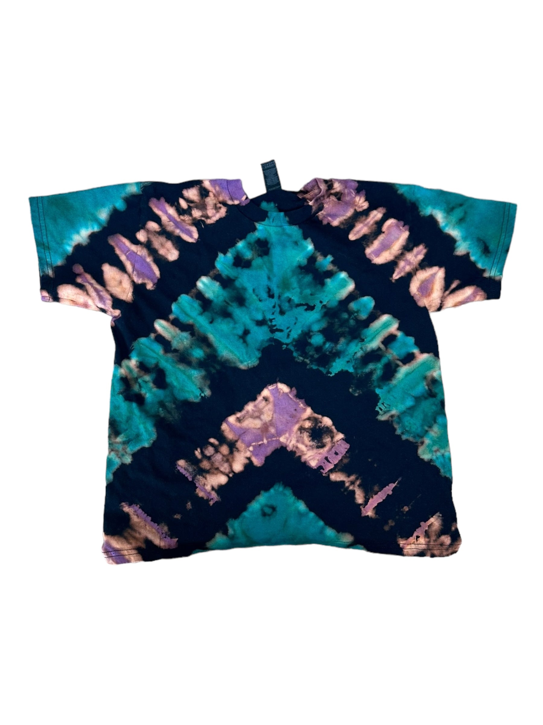 Youth Medium Pink Purple and Blue Arrow V Reverse Tie Dye Shirt