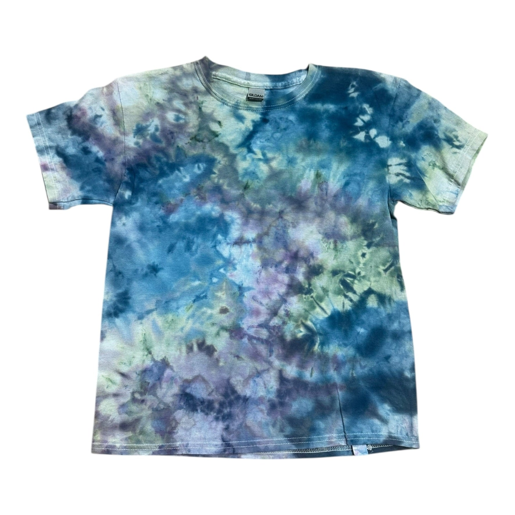Youth Large Purple Green and Blue Scrunch Ice Dye Tie Dye Shirt