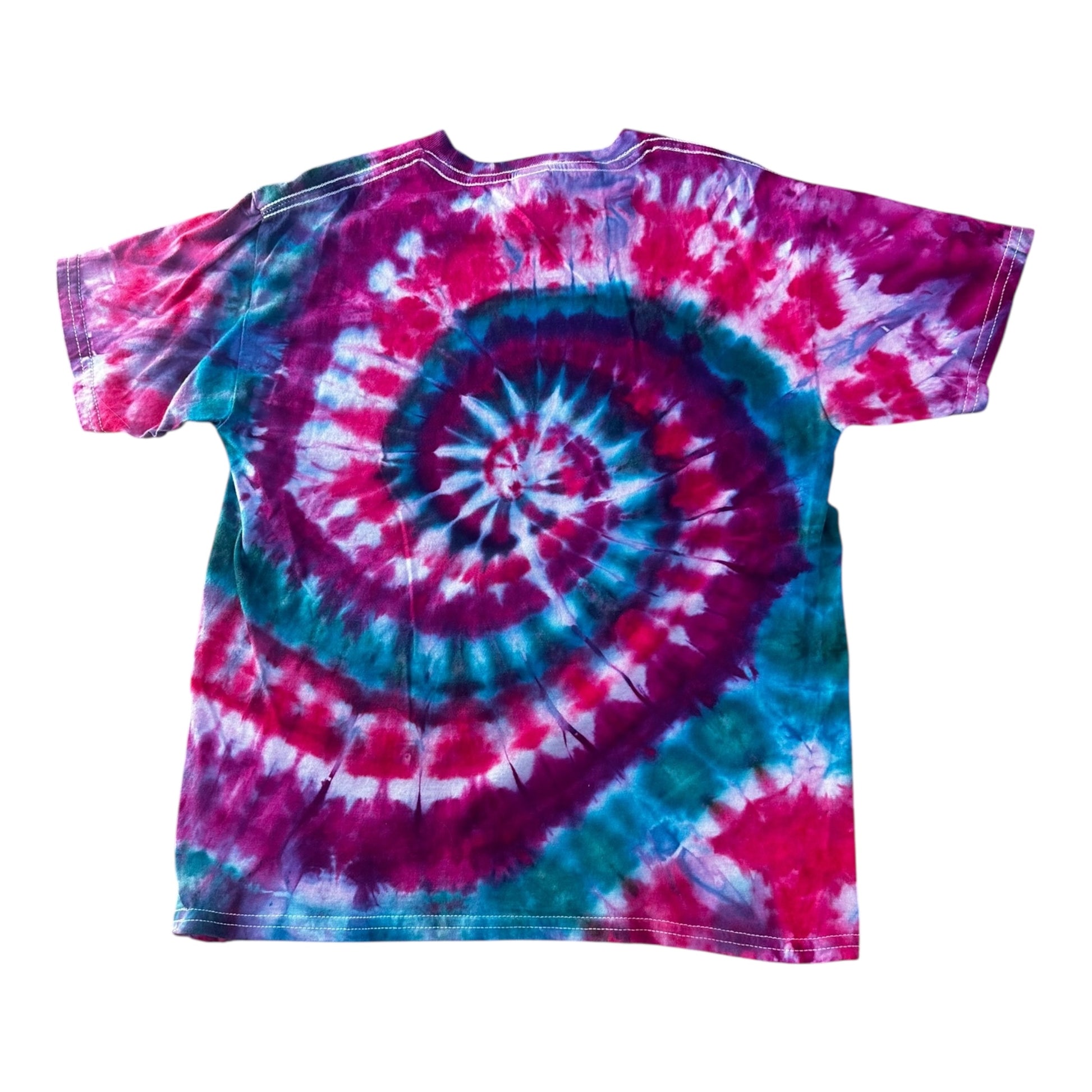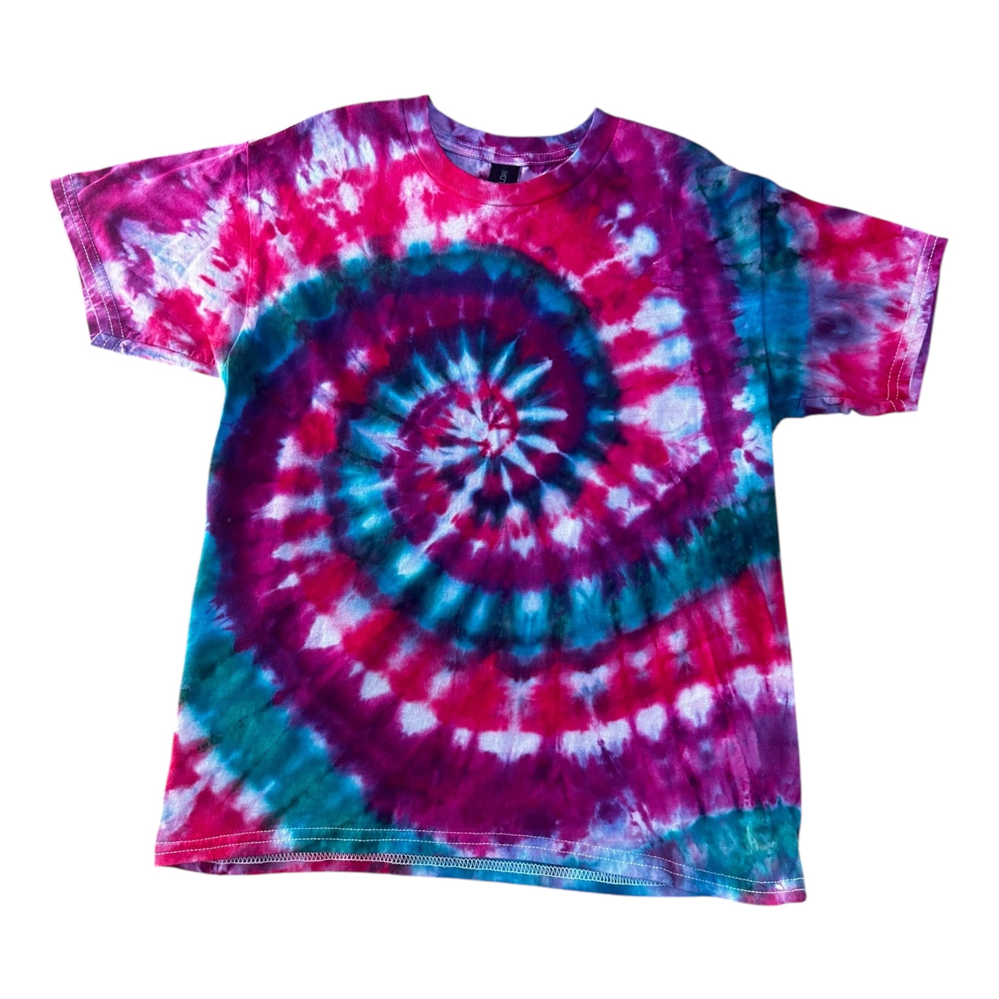 Youth Medium Purple Teal and Pink Spiral Ice Dye Tie Dye Shirt