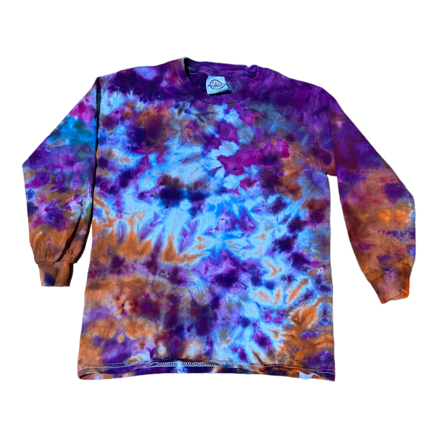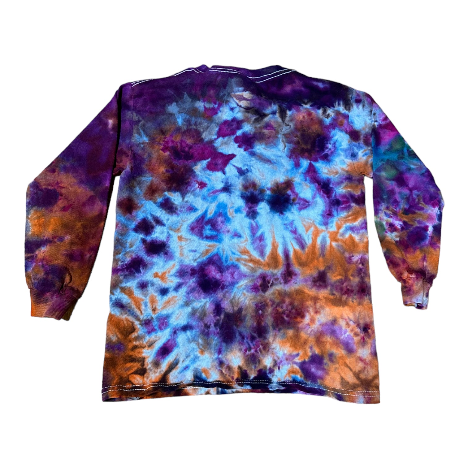 Youth Small Purple Blue and Orange Scrunch Ice Dye Tie Dye Long Sleeve Shirt