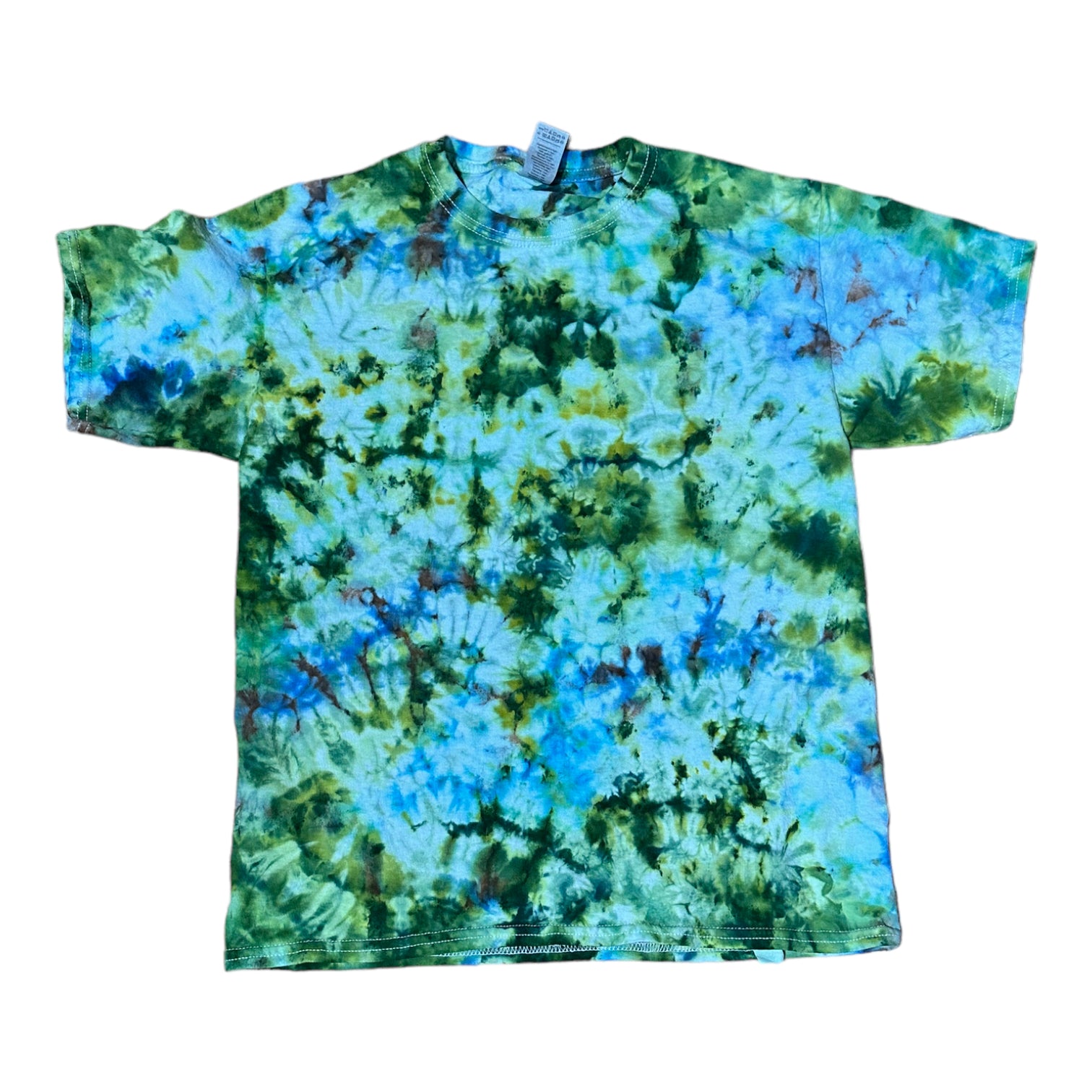 Youth XL Baby Blue and Green Scrunch Ice Dye Tie Dye