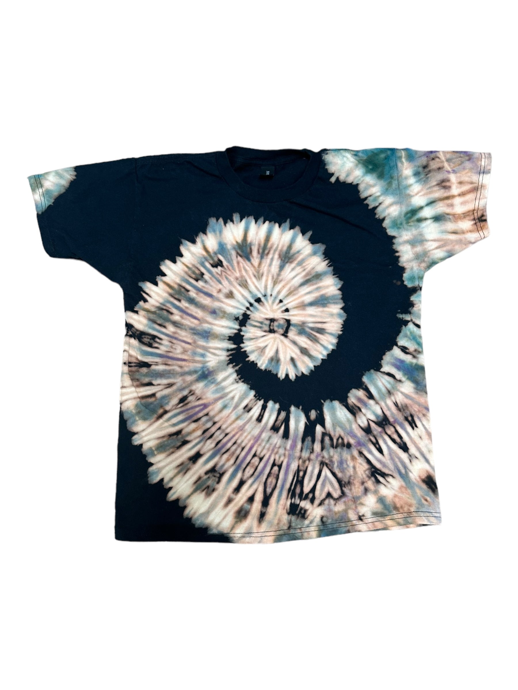 I hand dye all my tie dye clothing.  I wash the shirts in a solution to help prep the shirt and remove all of the fire protectant and residue. I then soak in a solution to prep the shirt for dyeing and helps the dye adhere to the fabric.  I then twist the shirt into a design and dye.  The dye sits on the shirt for 24 hours give the best vibrant colors. I then wash In a special solution and dry to set the colors.