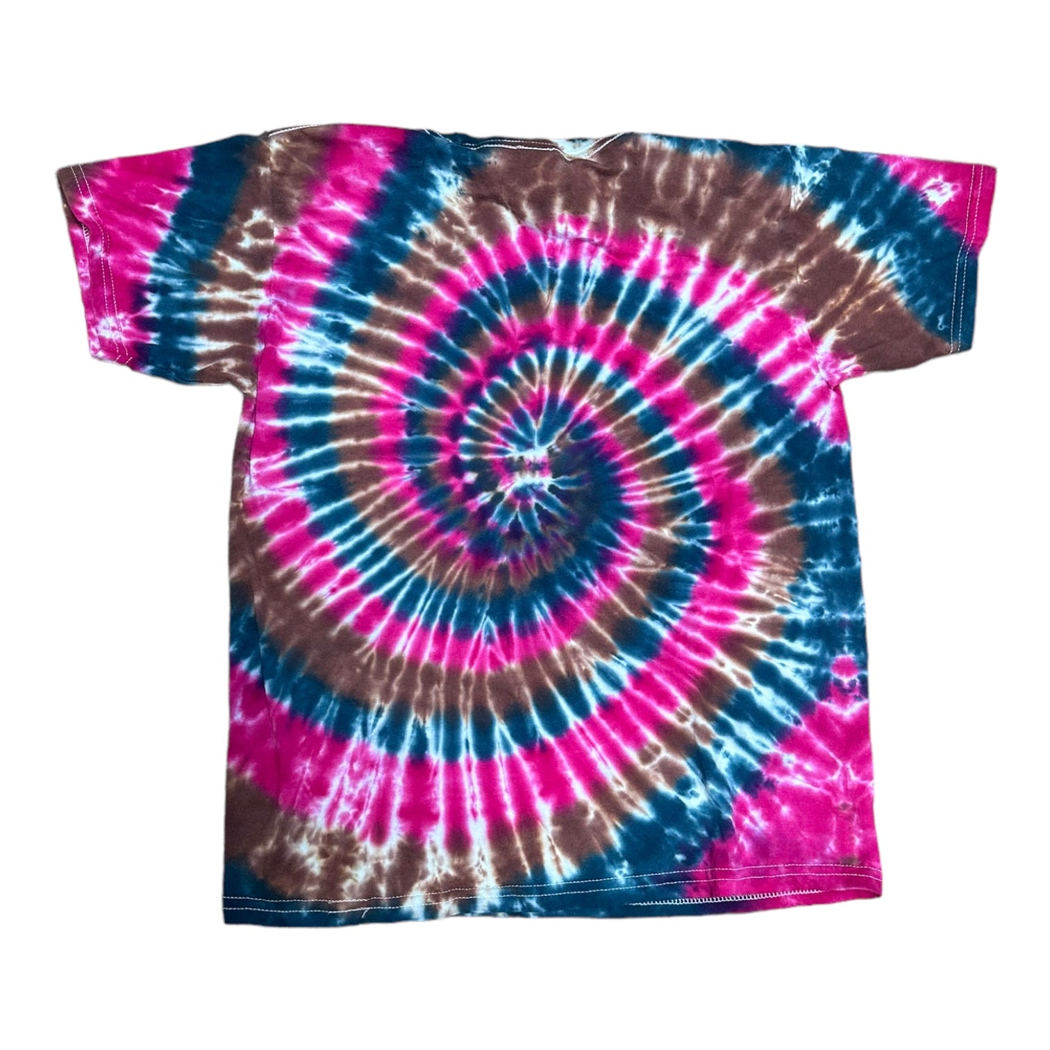 Youth XL Blue Brown and Pink Spiral Tie Dye Shirt