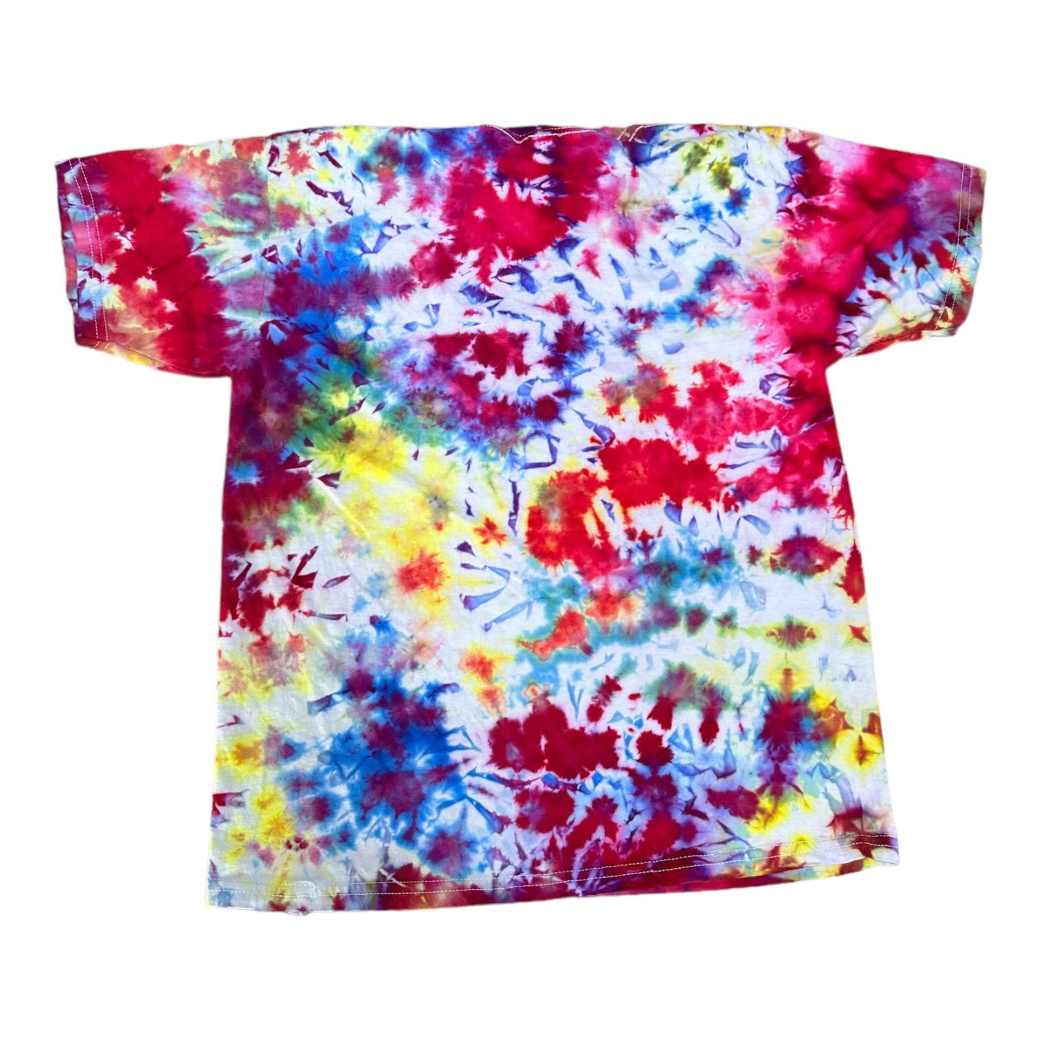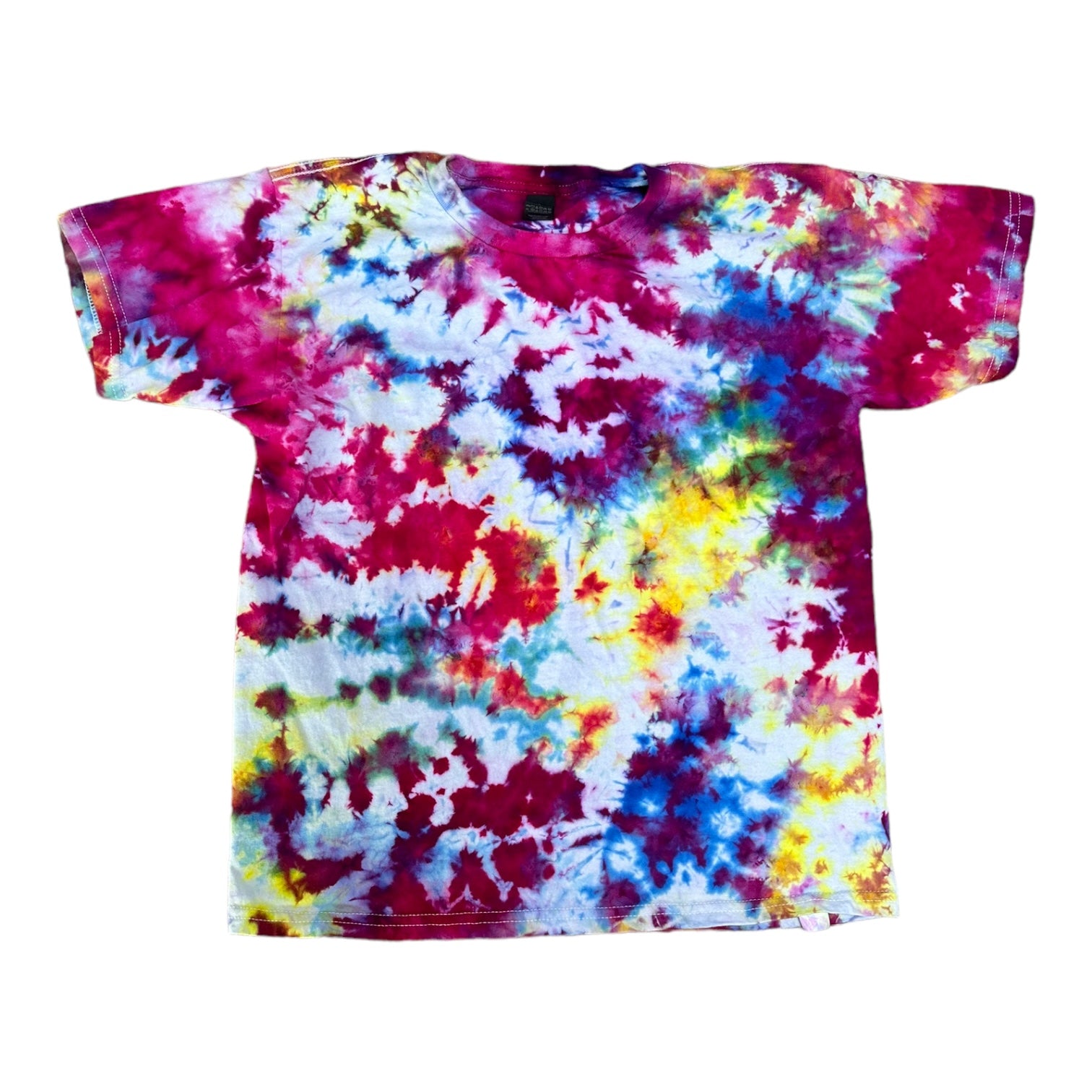 Youth XL Blue Green Hot Pink Purple and Yellow Scrunch Ice Dye Tie Dye Shirt