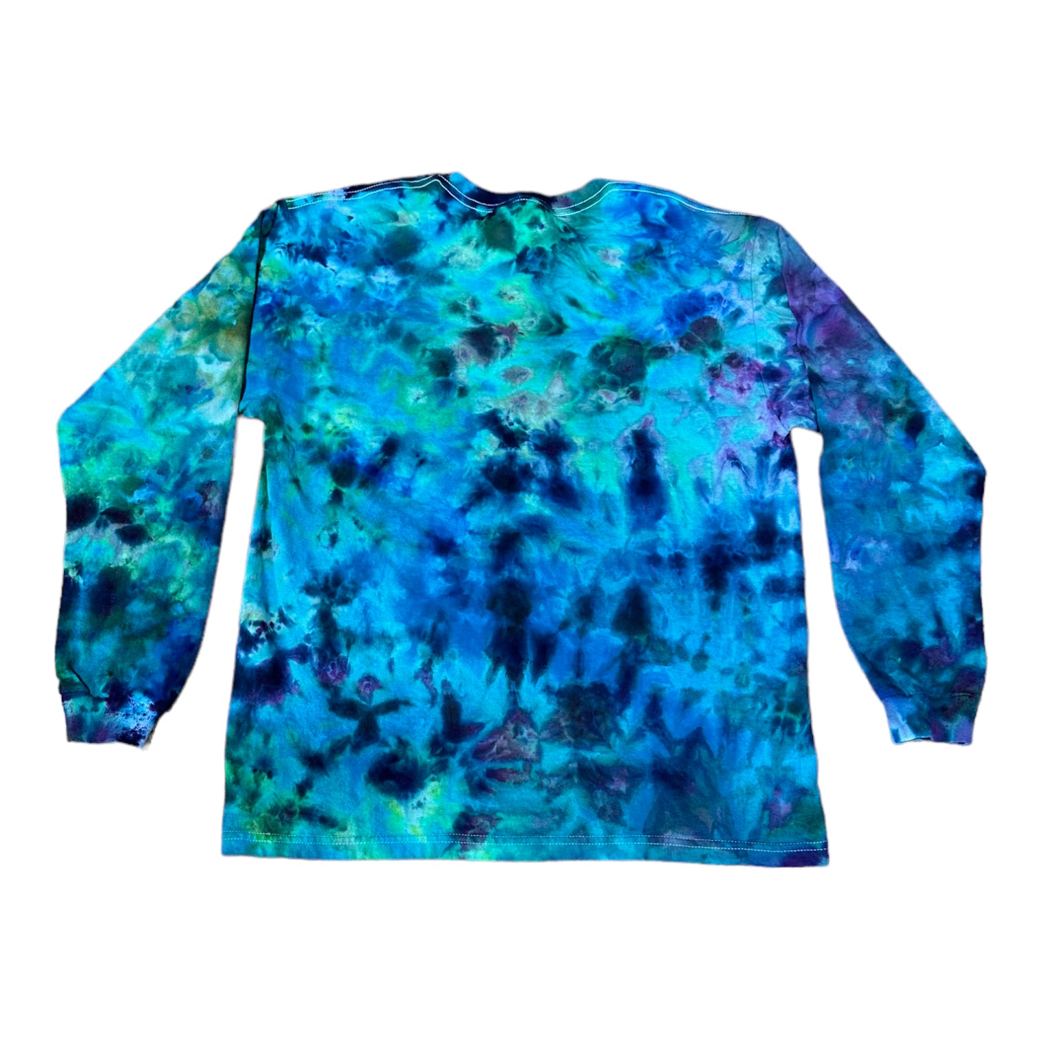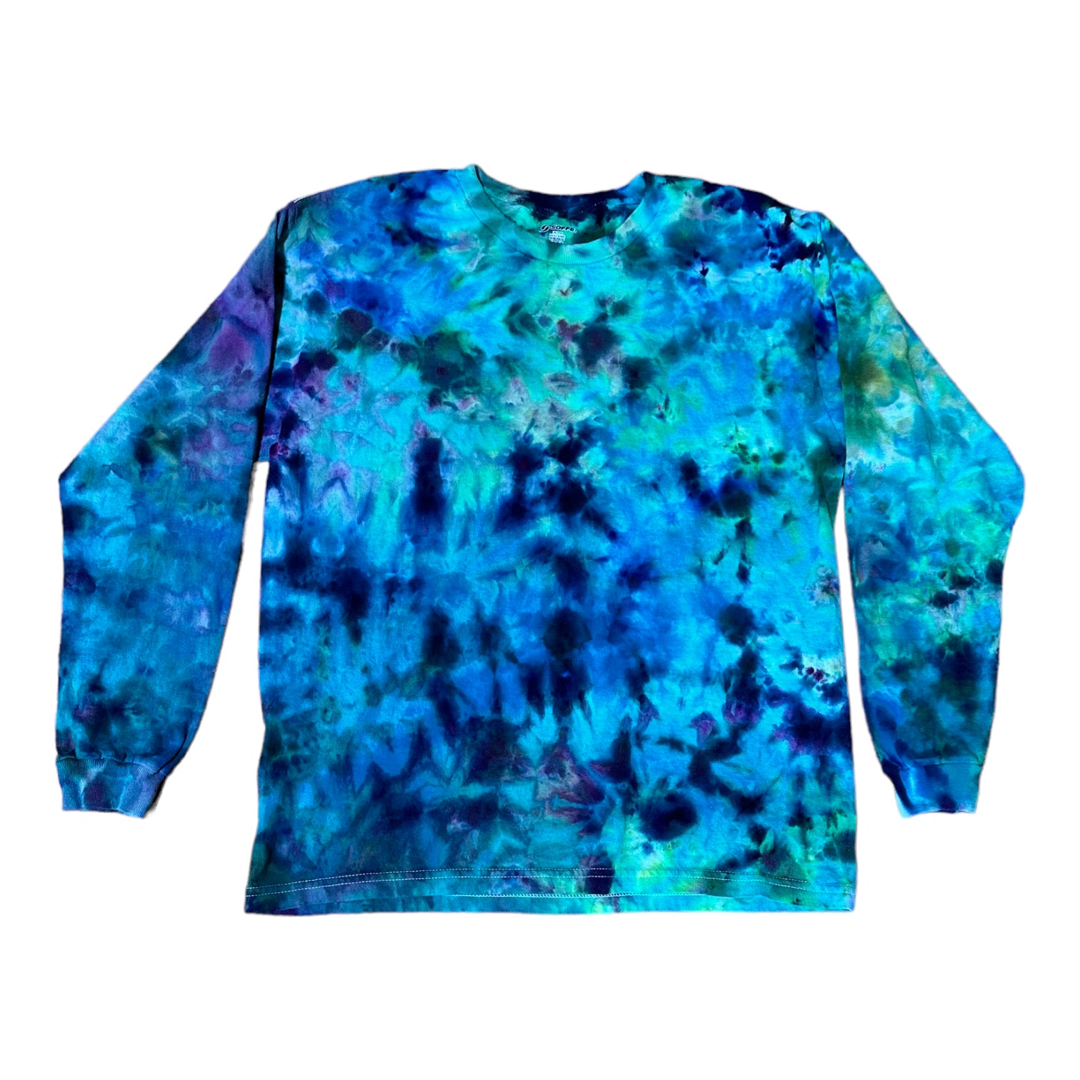 Youth XL Bright Green Blue and Purple Scrunch Ice Dye Tie Dye Long Sleeve Shirt