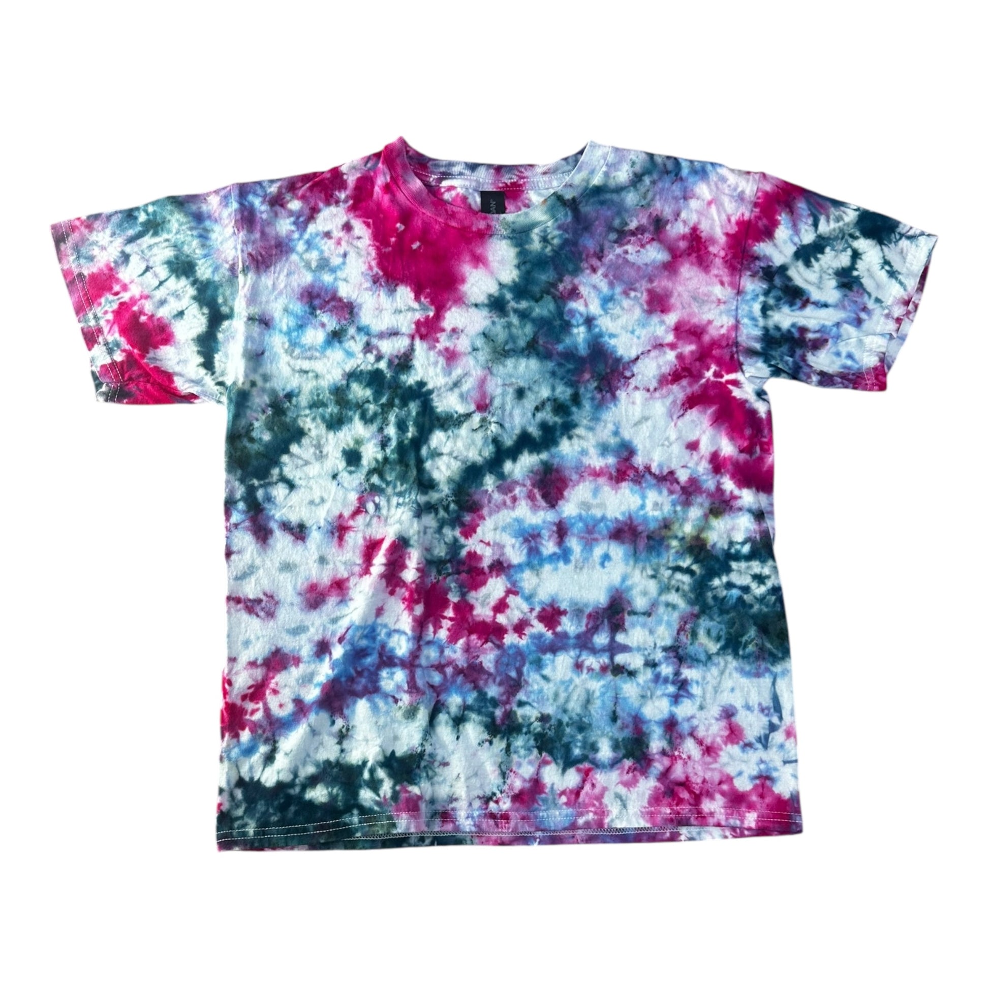 Youth XL Pink Teal and Purple Scrunch Ice Dye Tie Dye Shirt